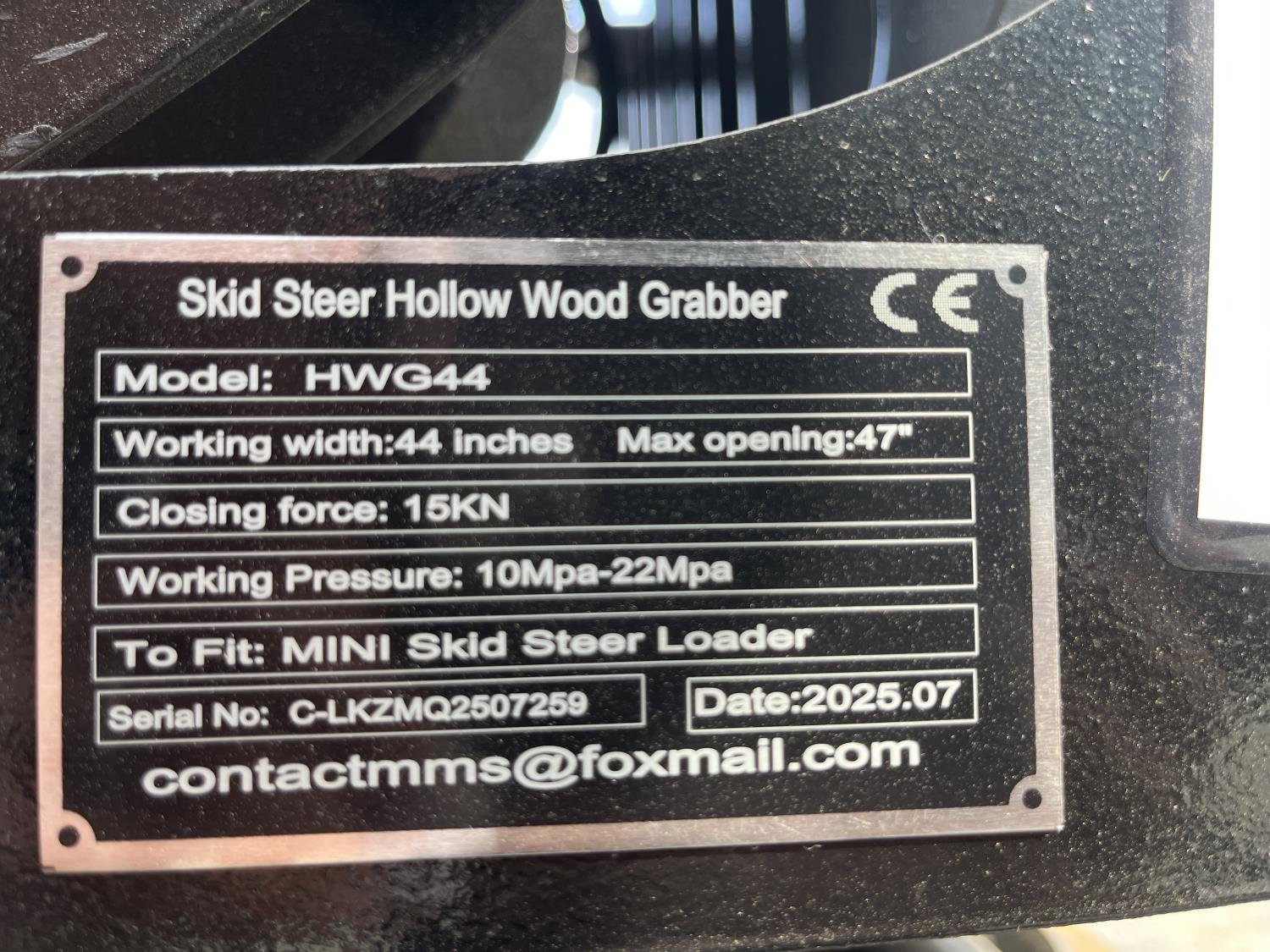 370 GIYI HWG44C 44 Inch Hydraulic Hollow Wood Grapple - Mini Skid Steer Attachment (Unused)