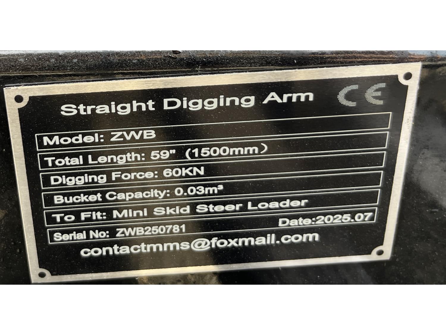 375 GIYI ZWB Hydraulic Straight Digging Arm - Mini Skid Steer Attachment (Unused)
