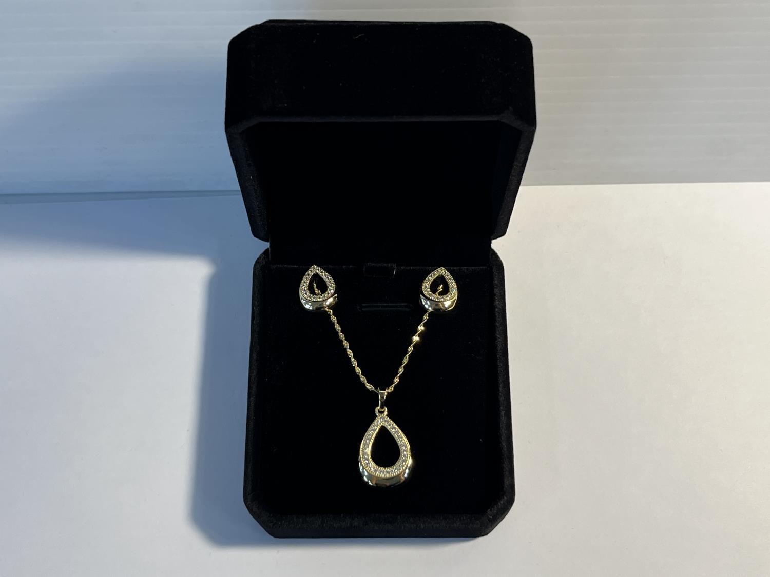 712 14K Gold Plated 28.0mm Simulated Diamond Pear 2 Piece Set (Unused)