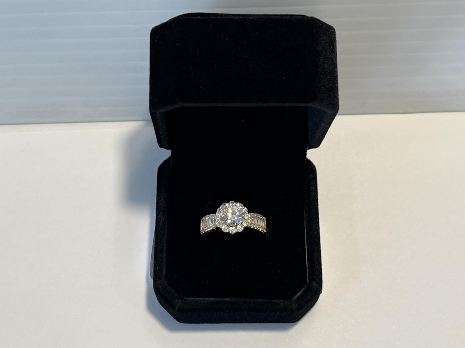 705 18K Gold Plated 1.0 Carat Simulated Diamond Halo Ring (Unused)