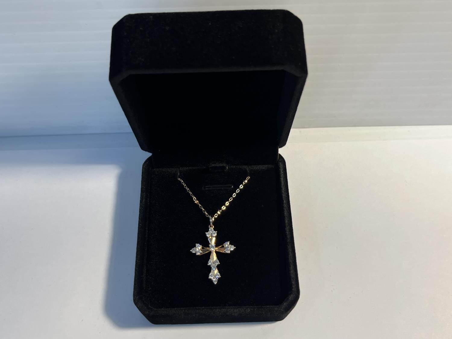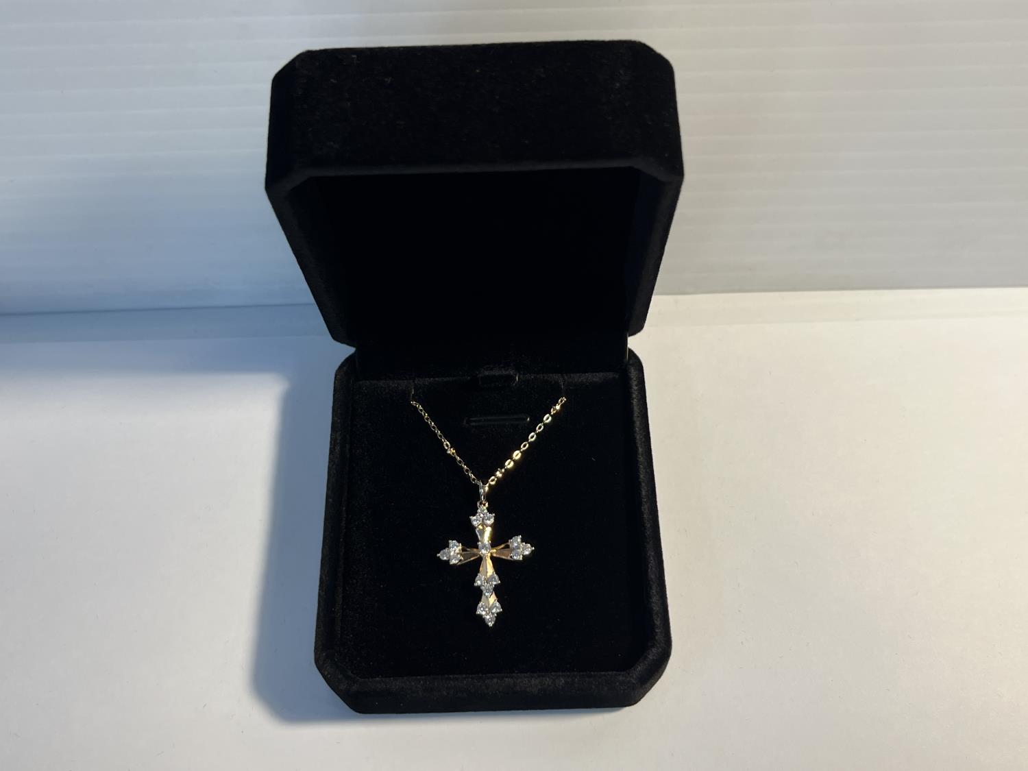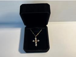 716 18K Gold Plated 32.0mm Simulated Diamond Cross Necklace (Unused)