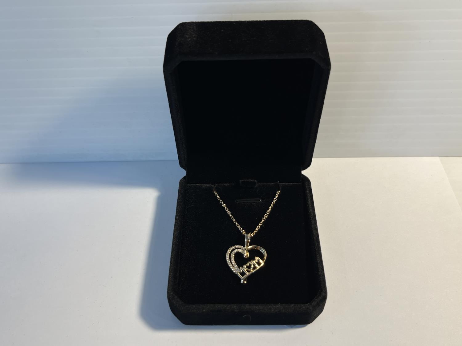 714 18K Gold Plated Simulated Diamond Mom Heart Necklace (Unused)