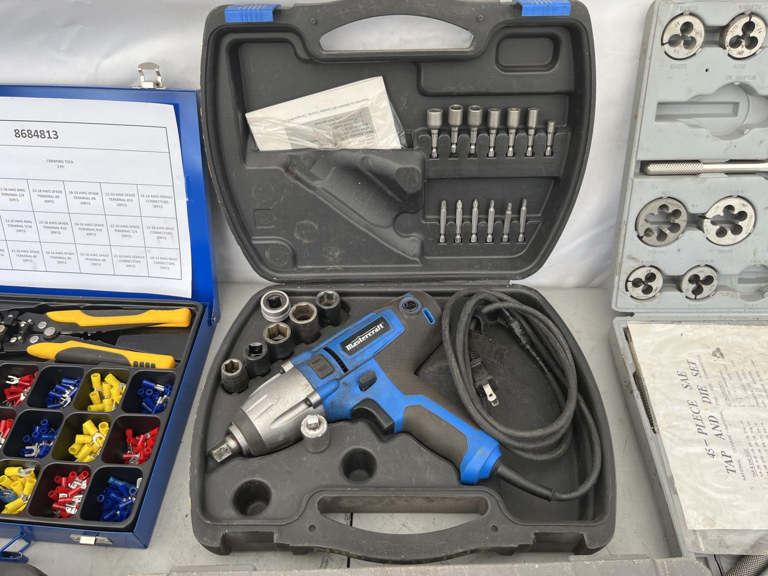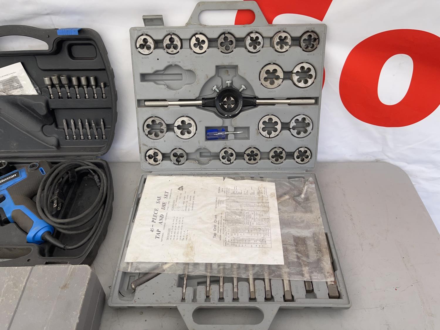 Terminal kit, 1/2 inch electric impact wrench, Mastercraft impact gun, (45) piece tap & die set, electric staple gun, Maximum socket set