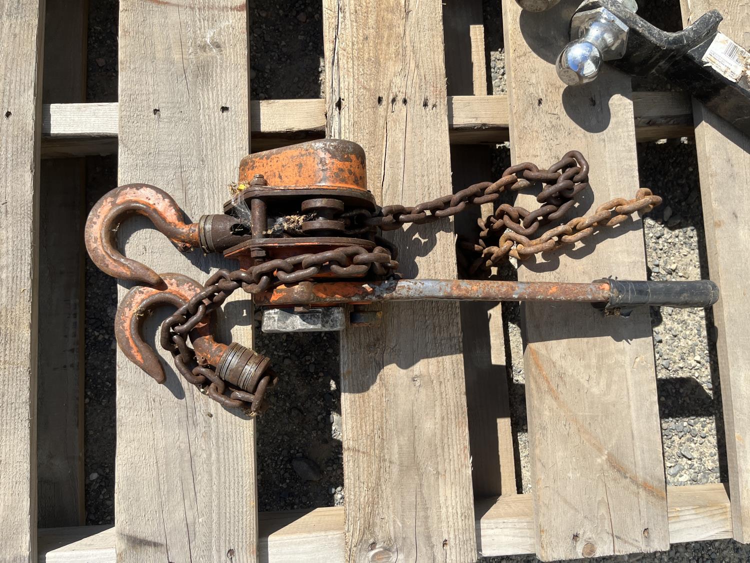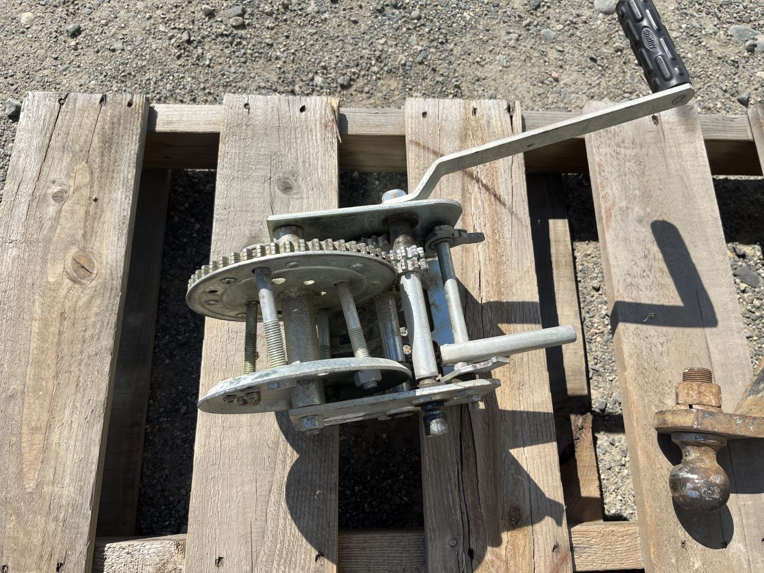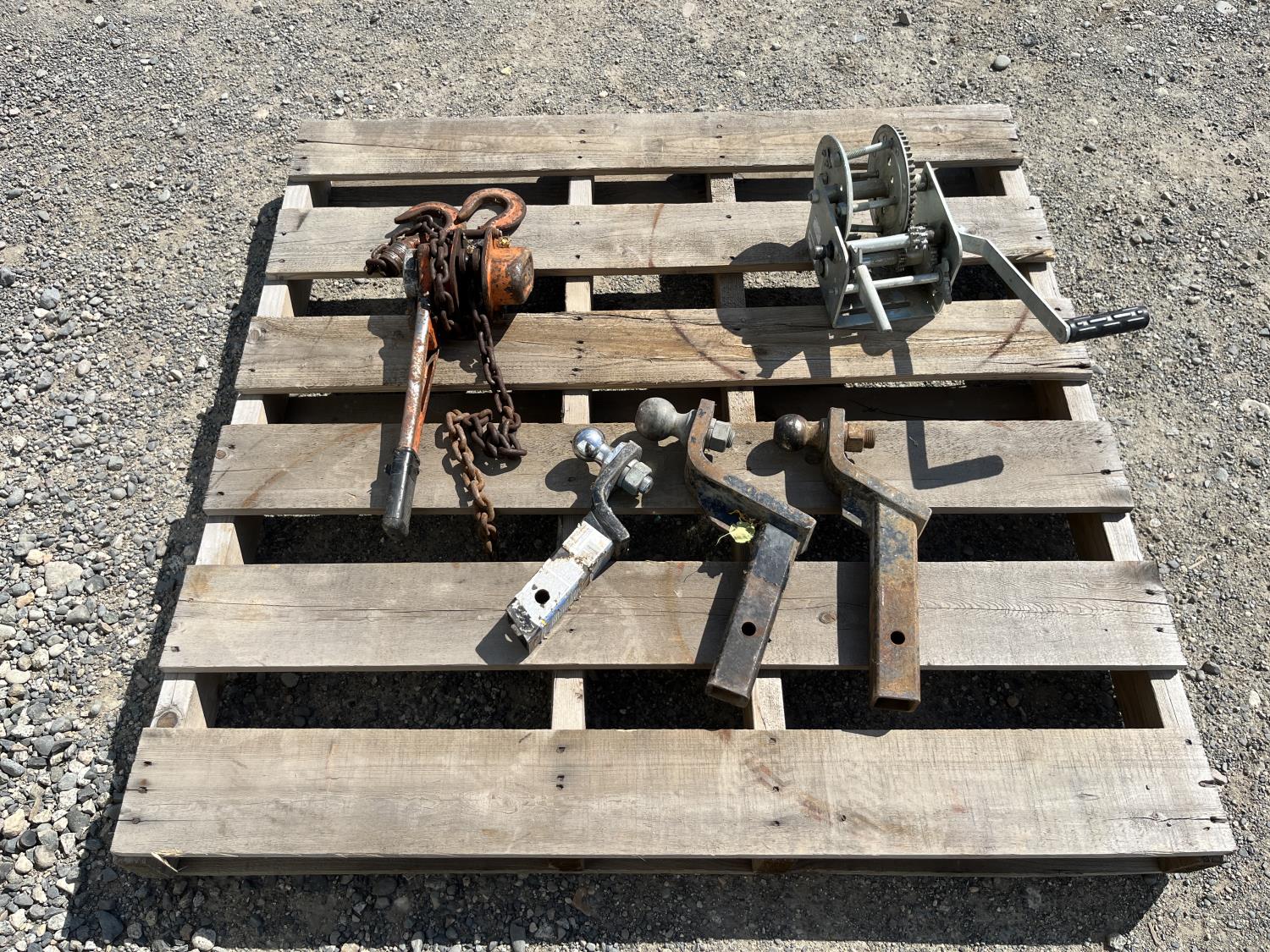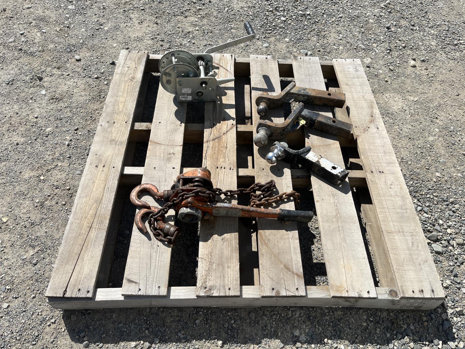 (3) Hitches, (1) come along, trailer winch
