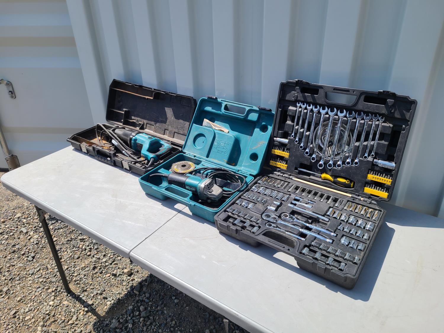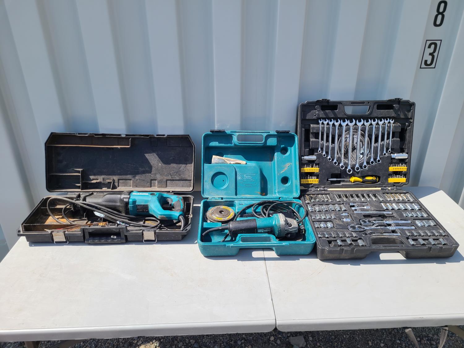 763 Makita Reciprocating Saw, Makita Hand Grinder, Westward Socket and Wrench Set
