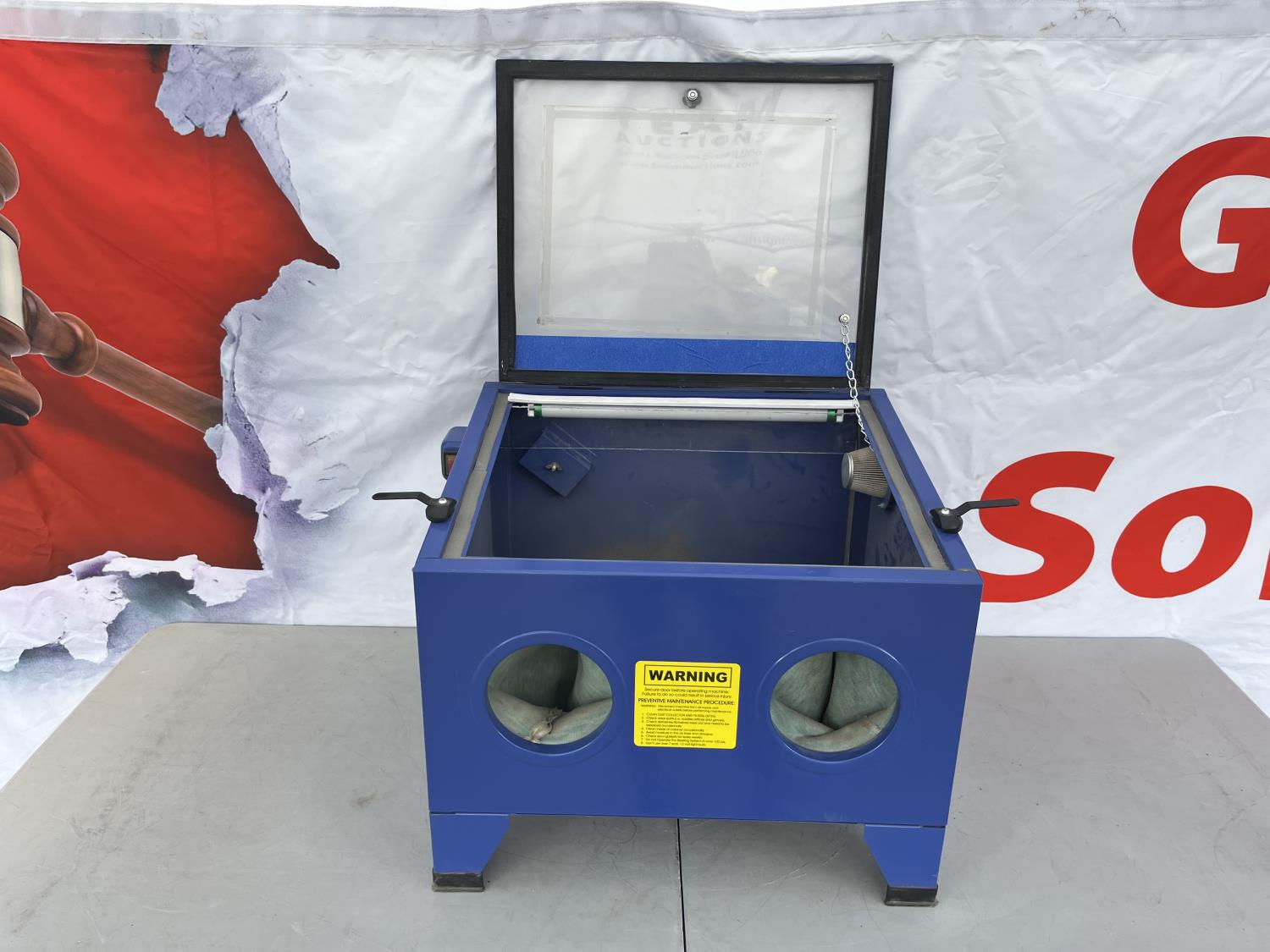 Bench top portable 90 litre sandblaster unit with light