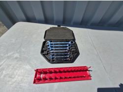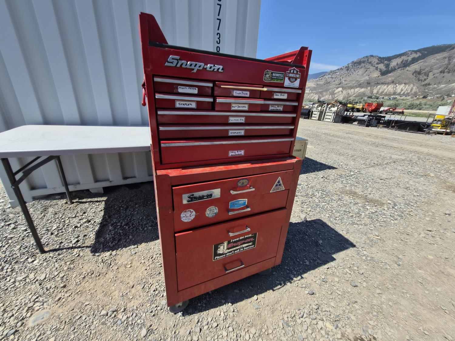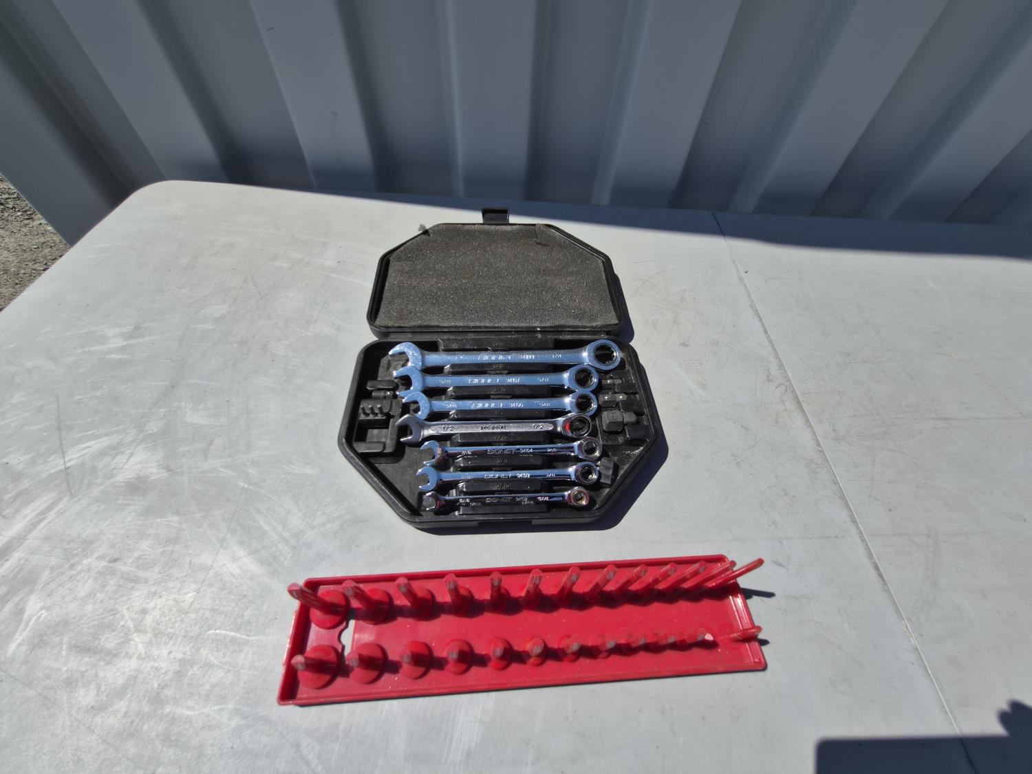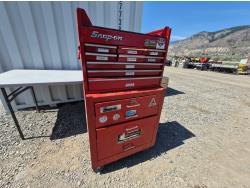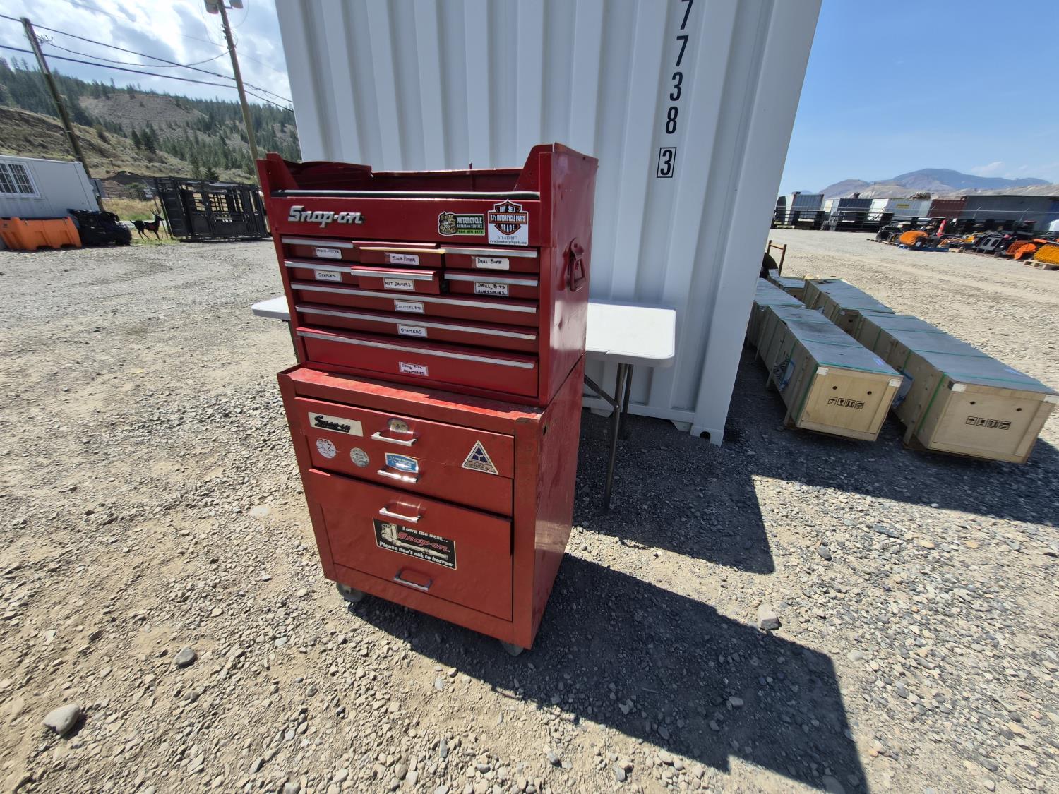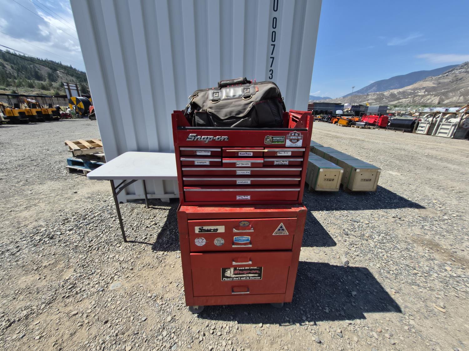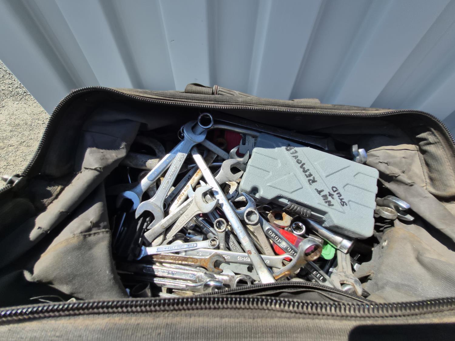Snap on tool boxes, bag of assorted hand tools, wrenches, gear wrench kit