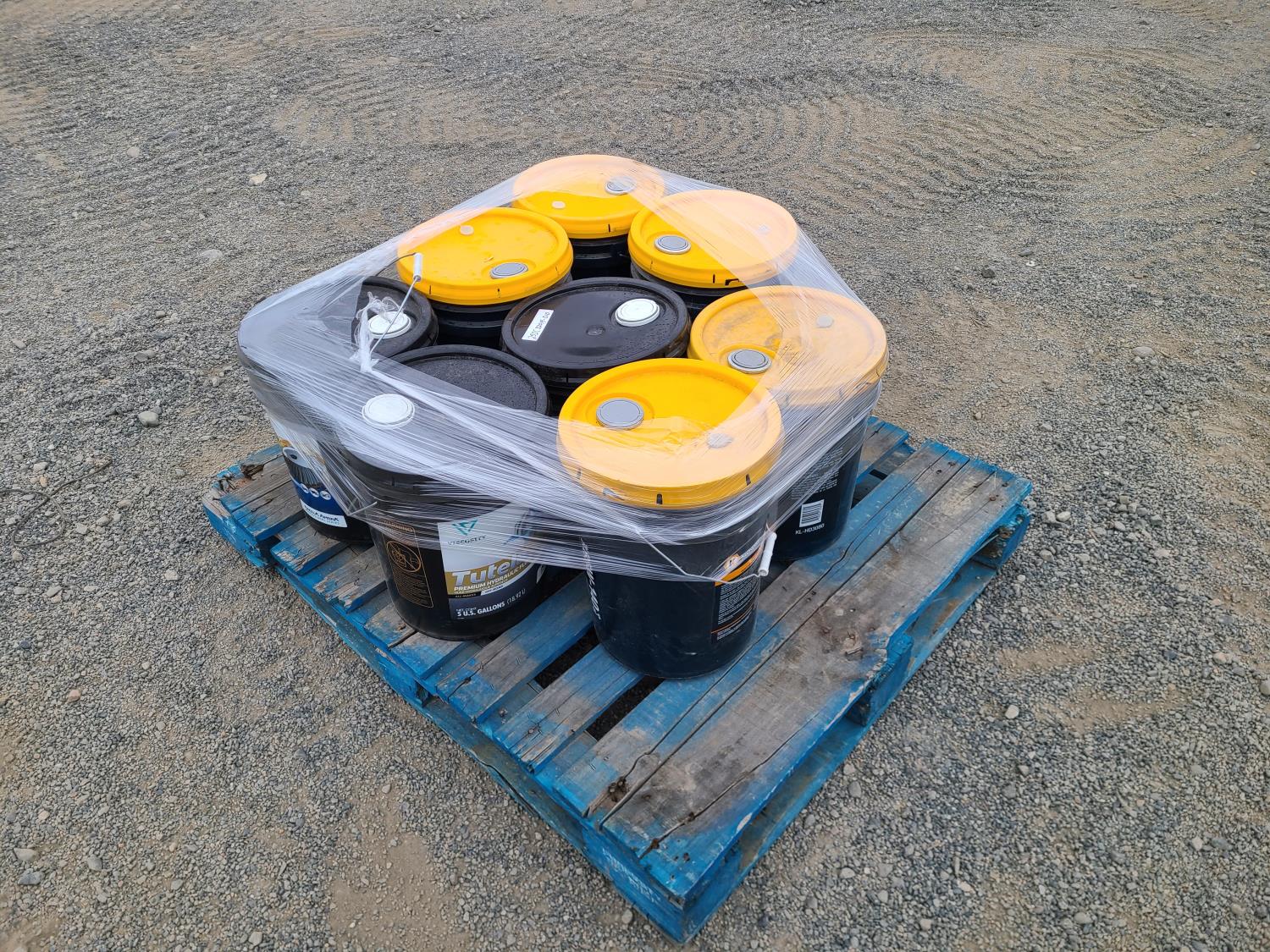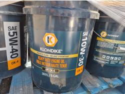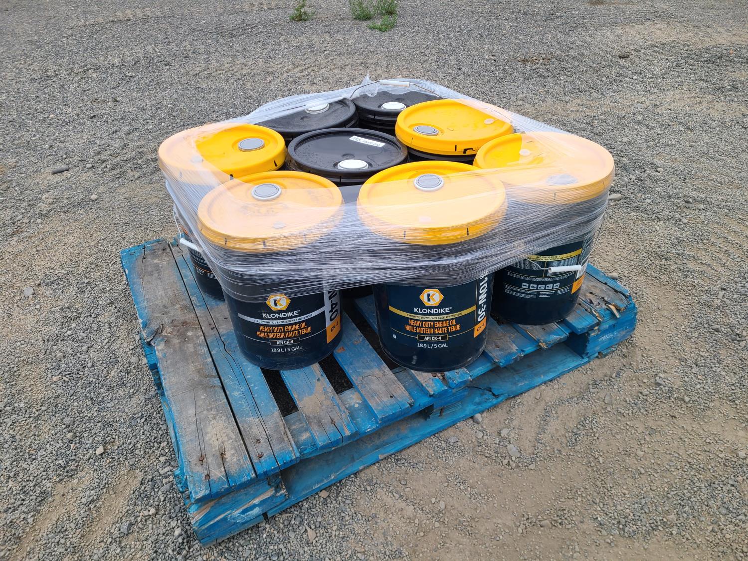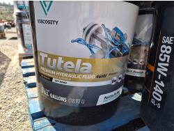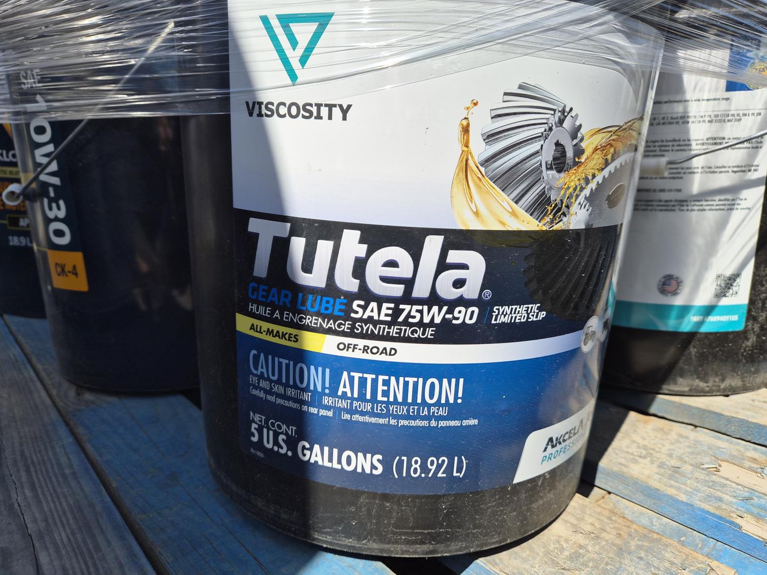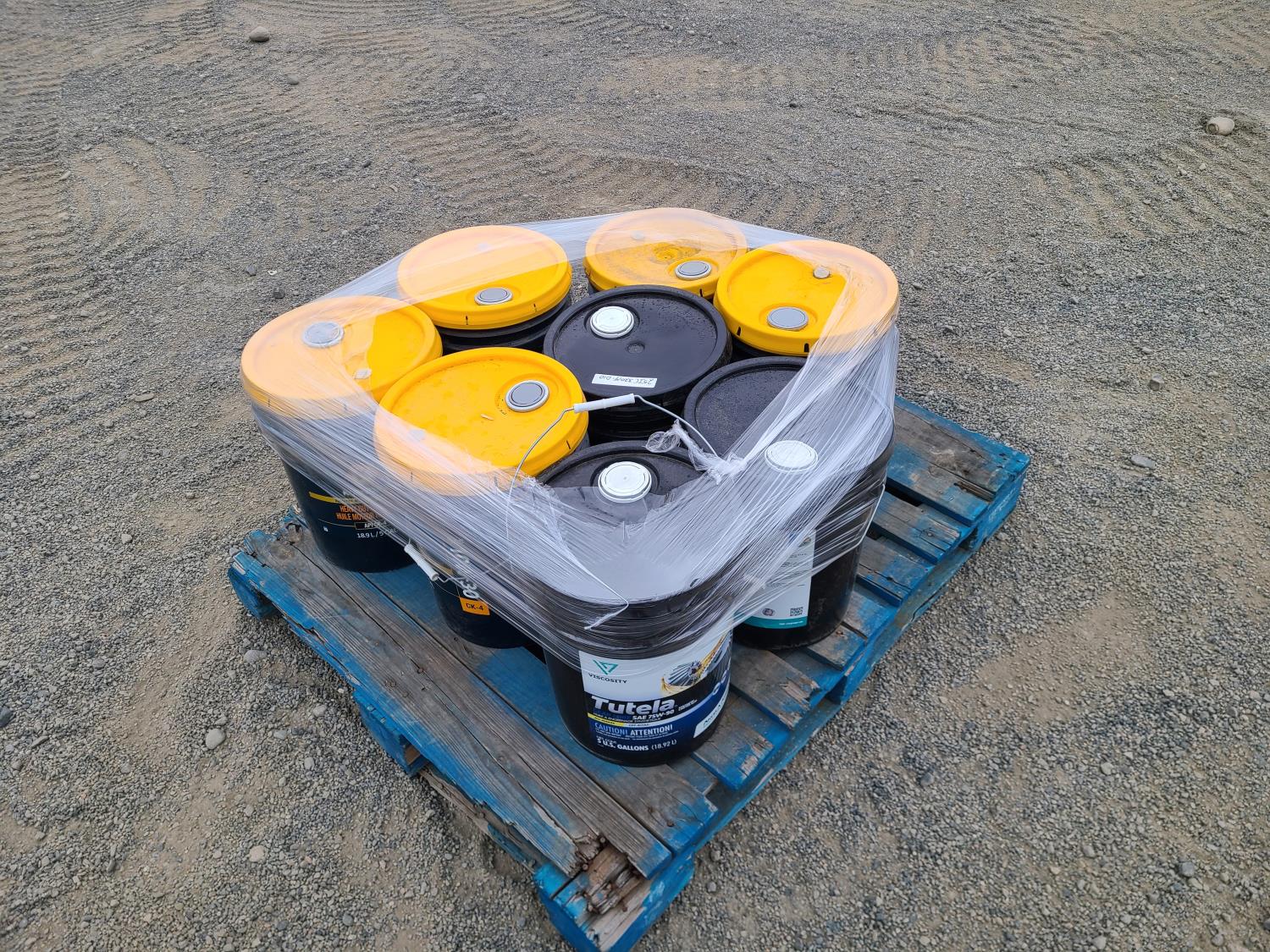 (1) 18.92lt pail of Tutela 75W-90 gear lube, (3) 18.92lt pails of Klondike 10W-30 synthetic h/d engine oil, (2) 18.92lt pails of Tutela 46HV premium hydraulic fluid, (1) 18.92lt pail of Klondike 85W-140 gear lube, (1) 18.92lt pail of Klondike 5W-40 synthetic engine oil