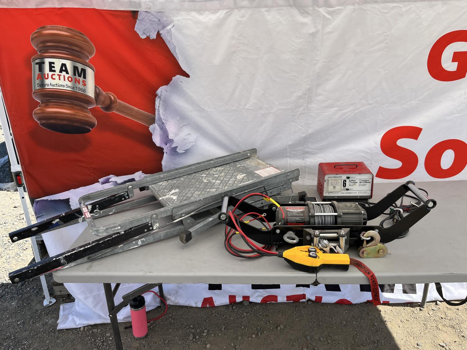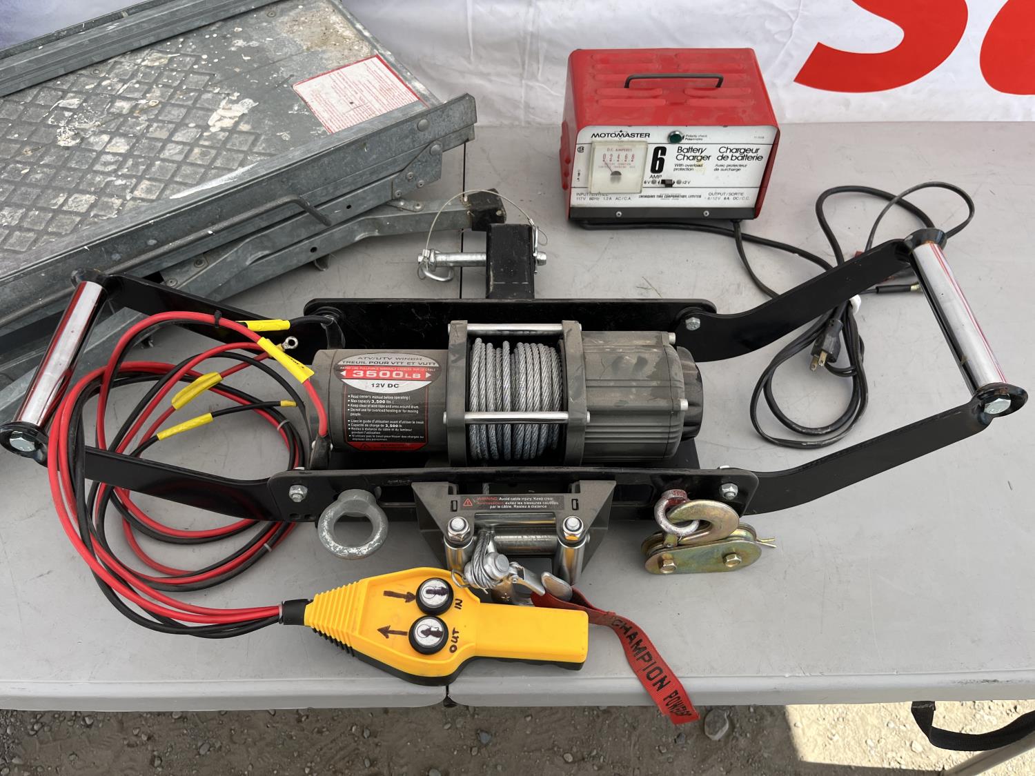 3500 lb ATV/UTV winch, battery charger, step ladder