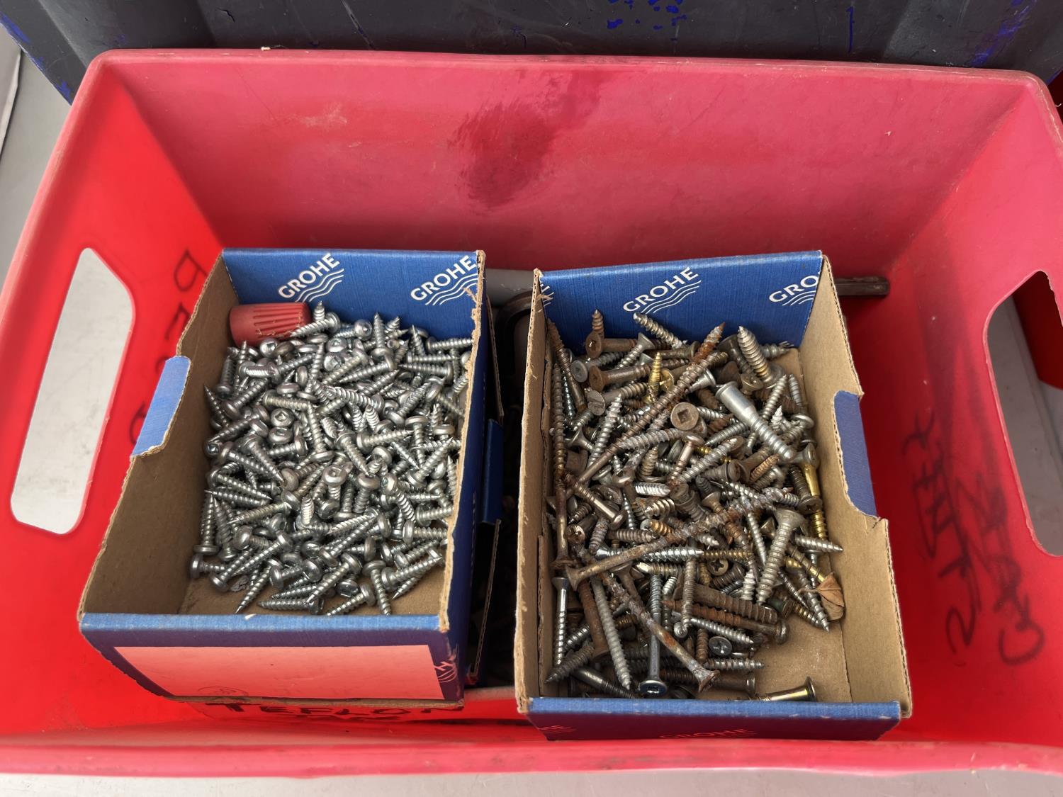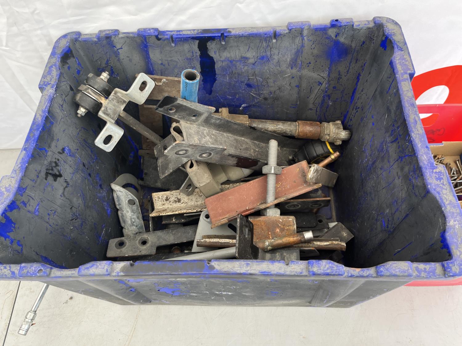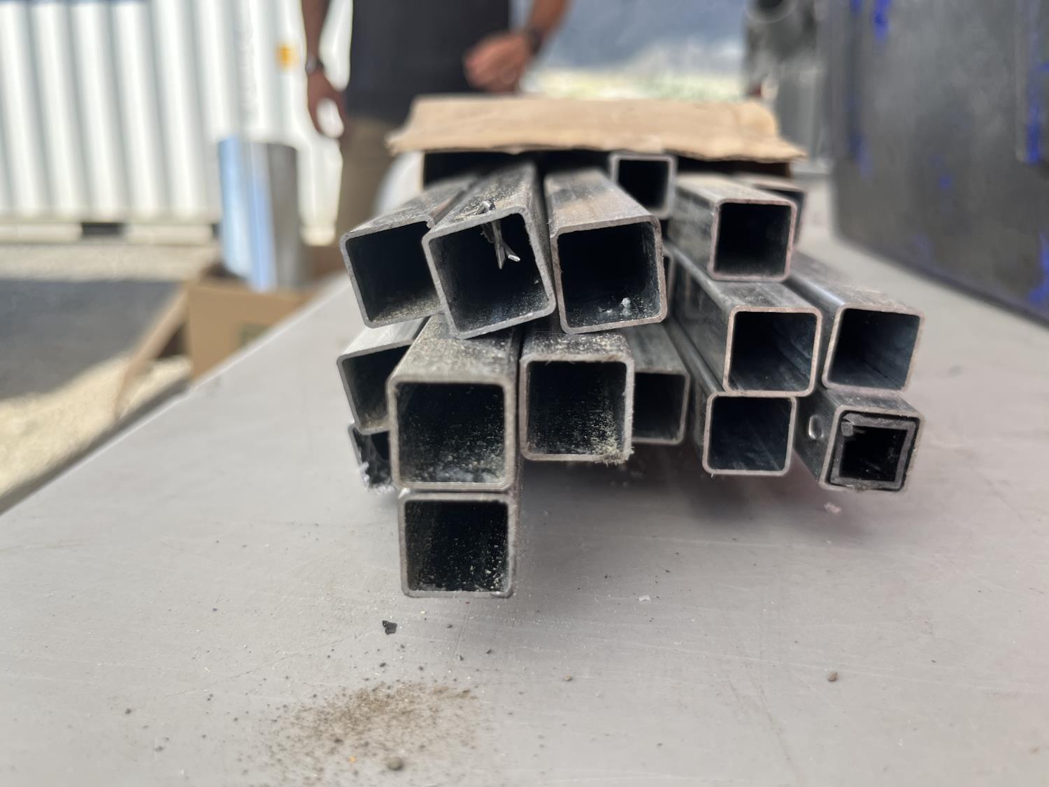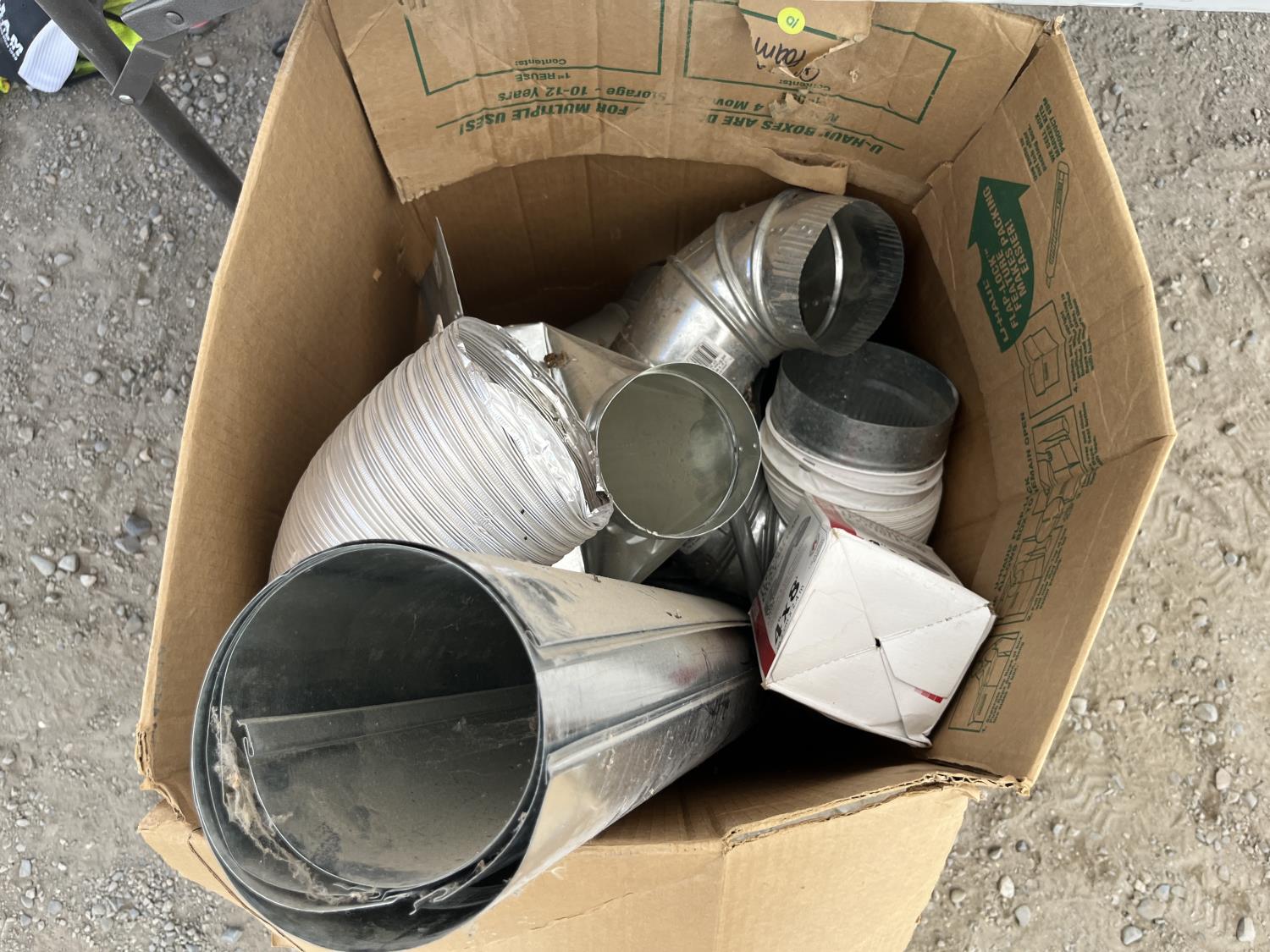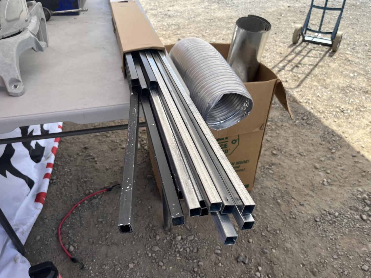 Steel square tubing, HVAC ducting, assorted screws, grease gun
