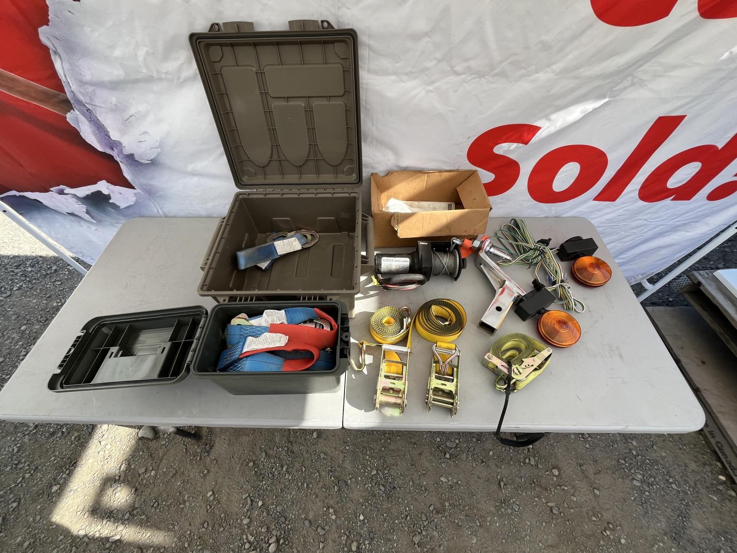 Electric winch, (5) straps, trailer lights, 6 inch ball mount hitch