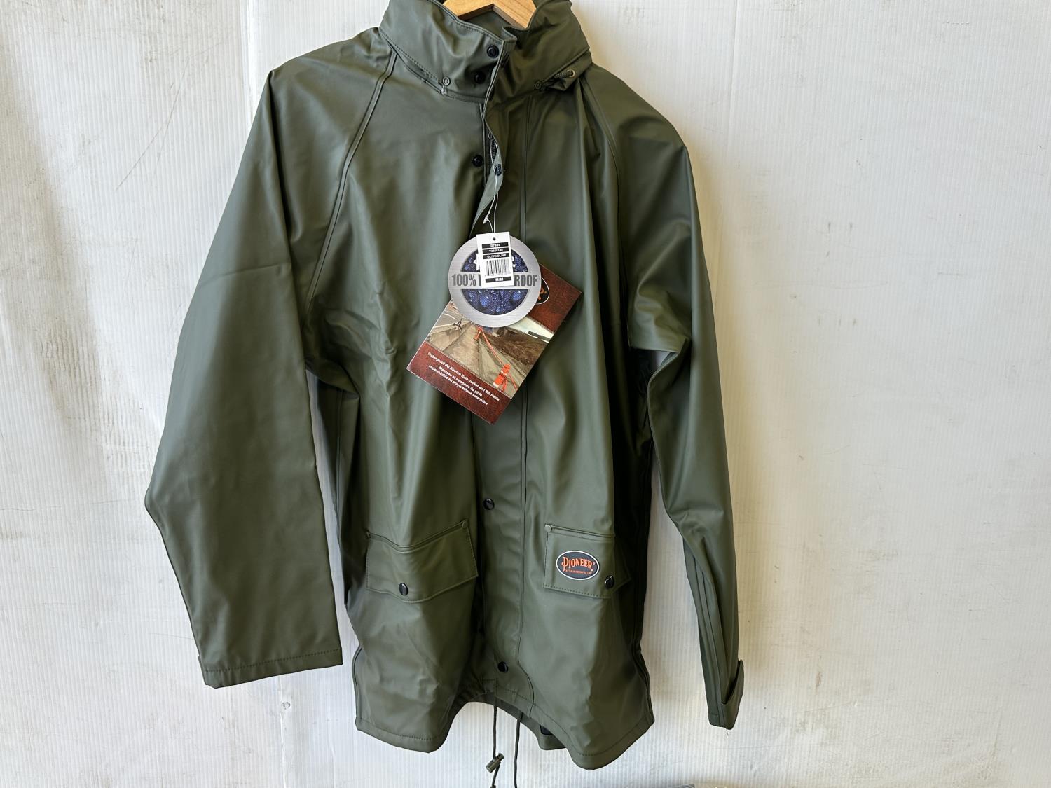5070 (2) Pioneer Size M PU Stretch Waterproof Rain Jackets and Hi-Vis Shirt (Unused)