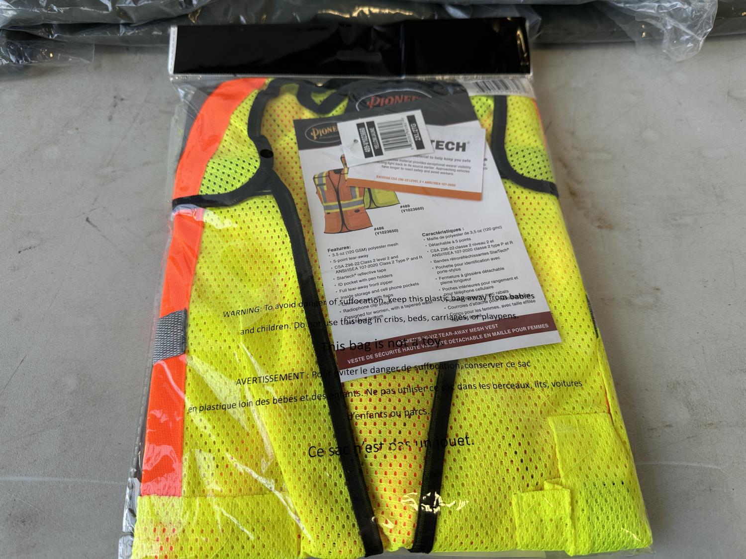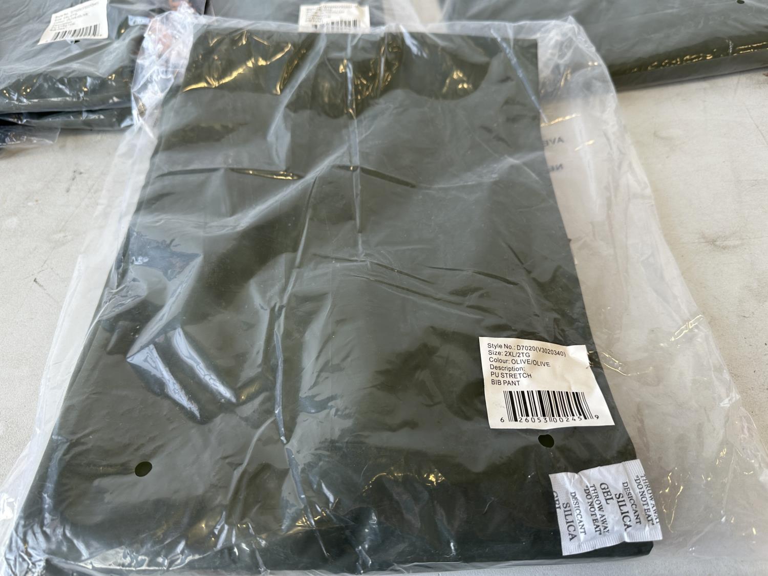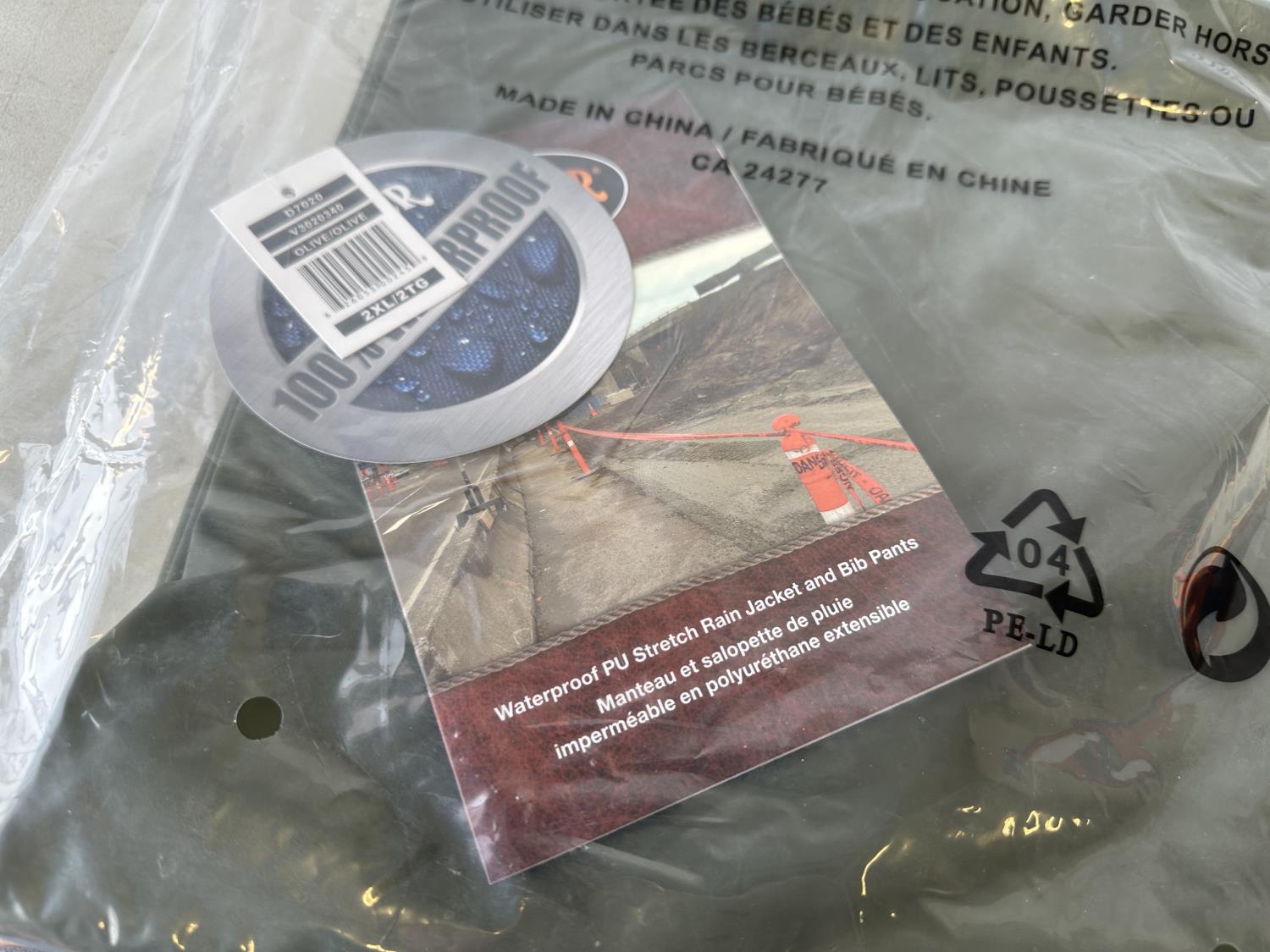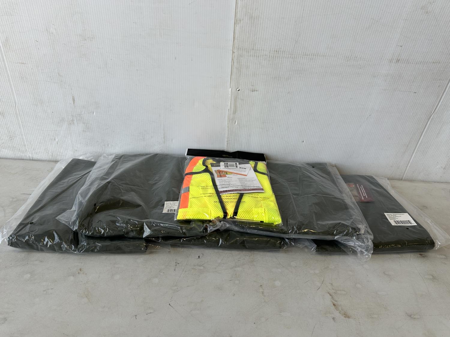 5086 (5) Size 2XL Pioneer PU Stretch Waterproof Rain Bibs and Safety Vest (Unused)