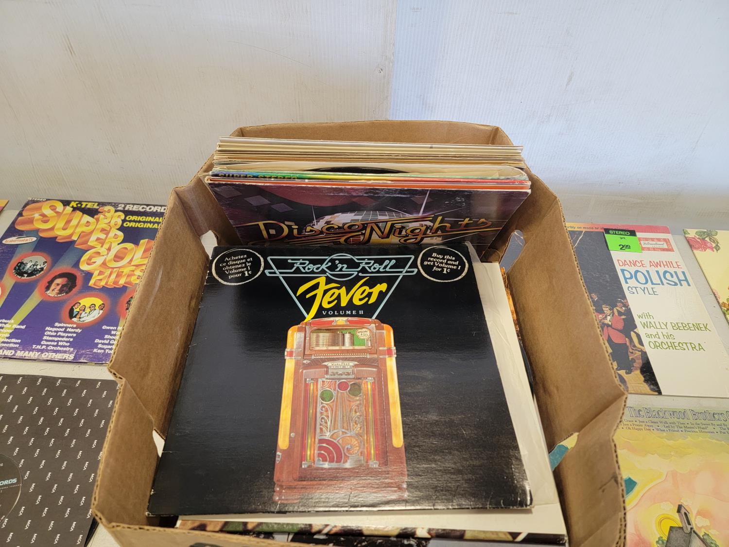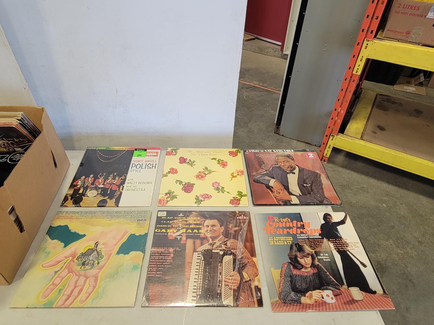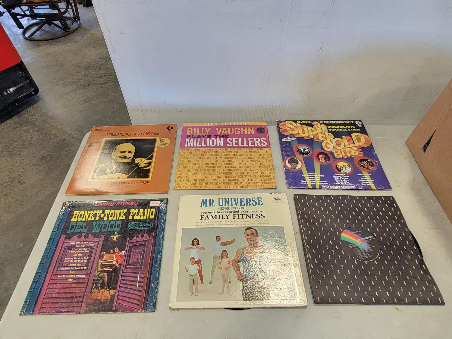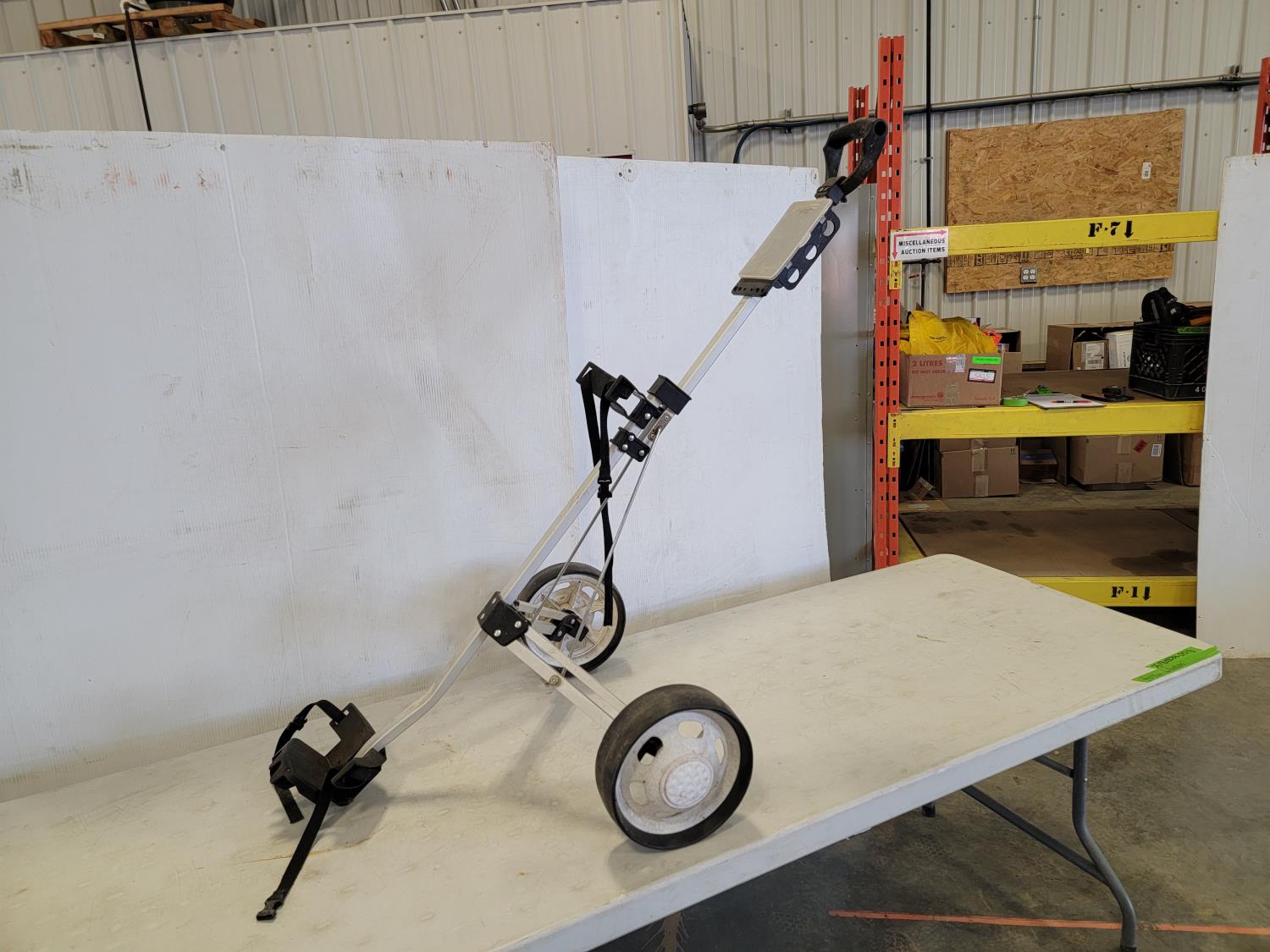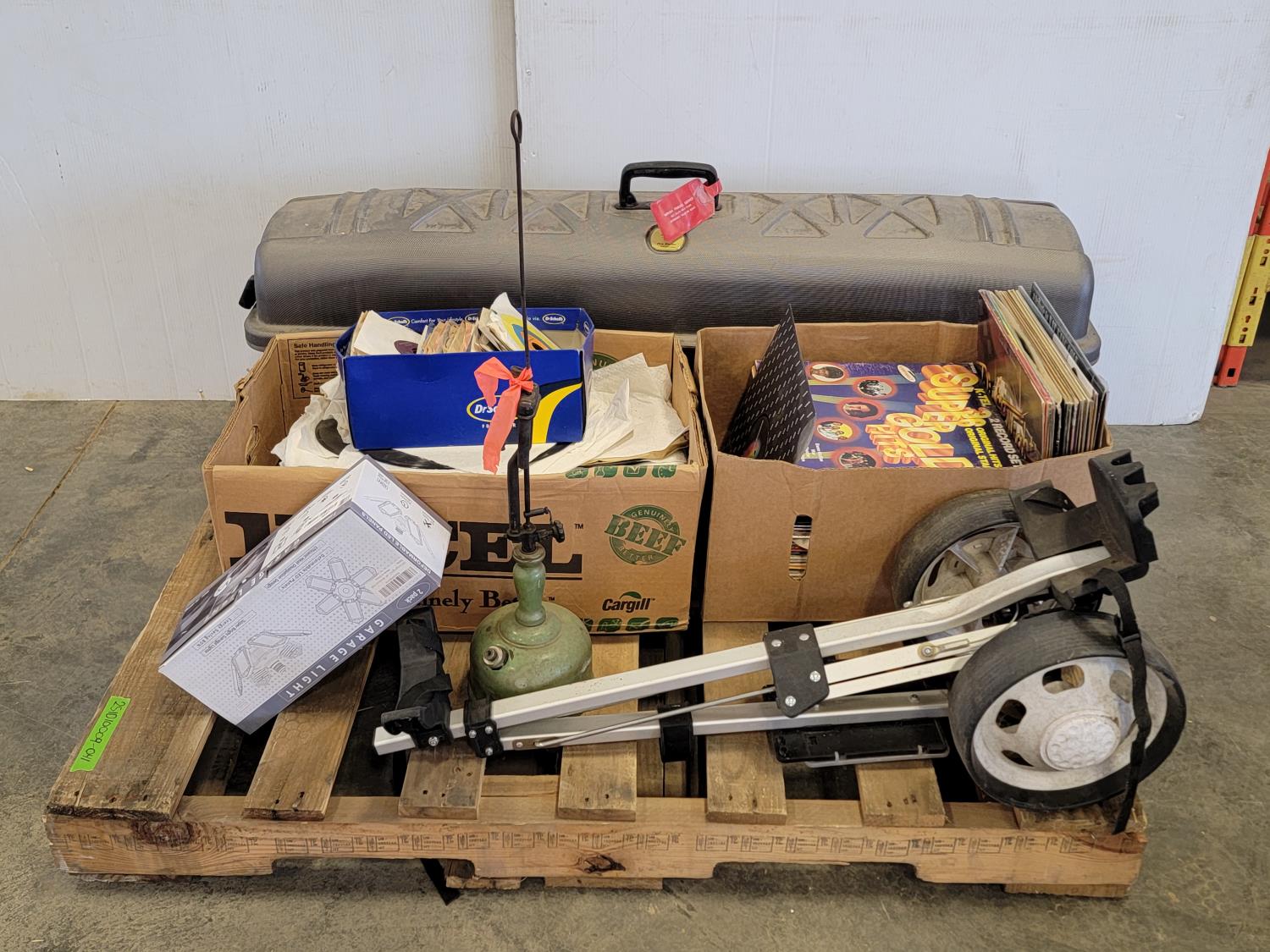 Golf club cart, golf club hard case, records, garage light