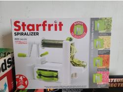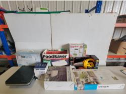 Starfrit spiralizer, Blag Flag bug fogger, Moen kitchen faucet, Foodsaver vacuum sealer, Black & Decker single cup coffee maker, RV propane tank cover, foot spa, Coleman propane camp stove