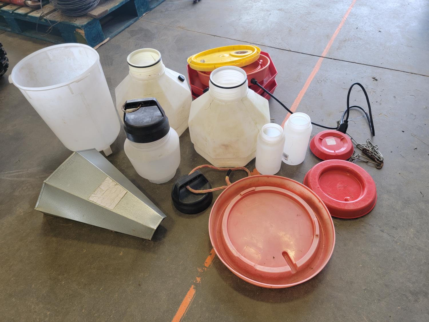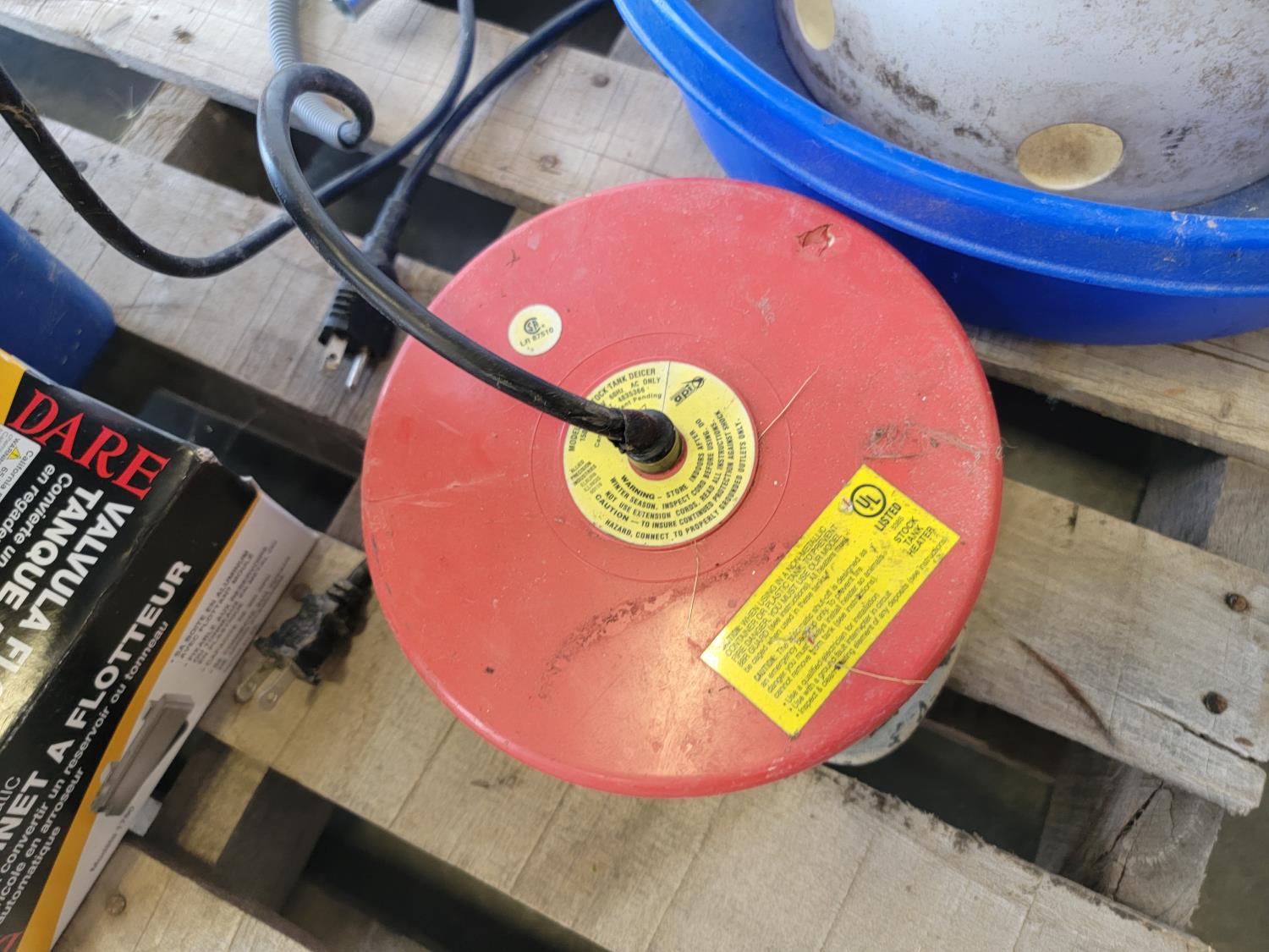 Farm tank float valve, chicken feeders, heat lamps, stock tank heater