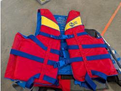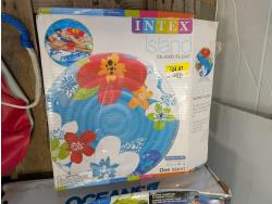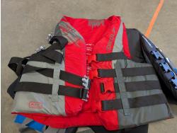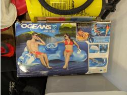12V Mobicool cooler, pool lounge, inflatable island float, (2) Sea Doo pool floats, (4) life jackets