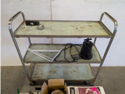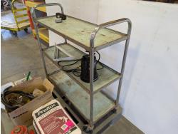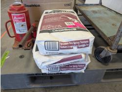 Rolling cart 37 inch w x 14 inch d x 35 inch h, Mastercraft 1/3 HP submersible pump, (3) 22 lb bags of Proroc spanish-tex spray texture, 20 ton hydraulic bottle jack