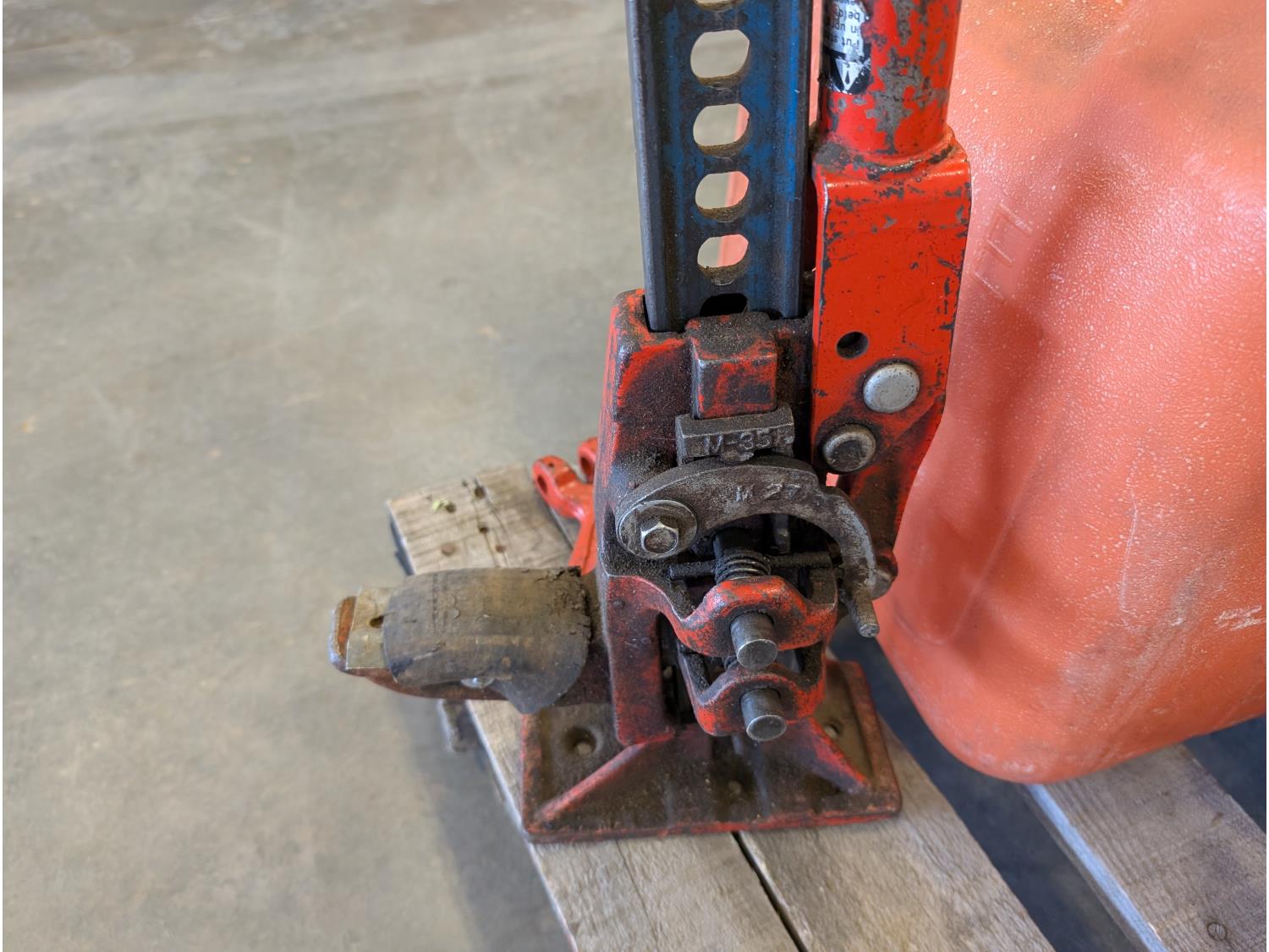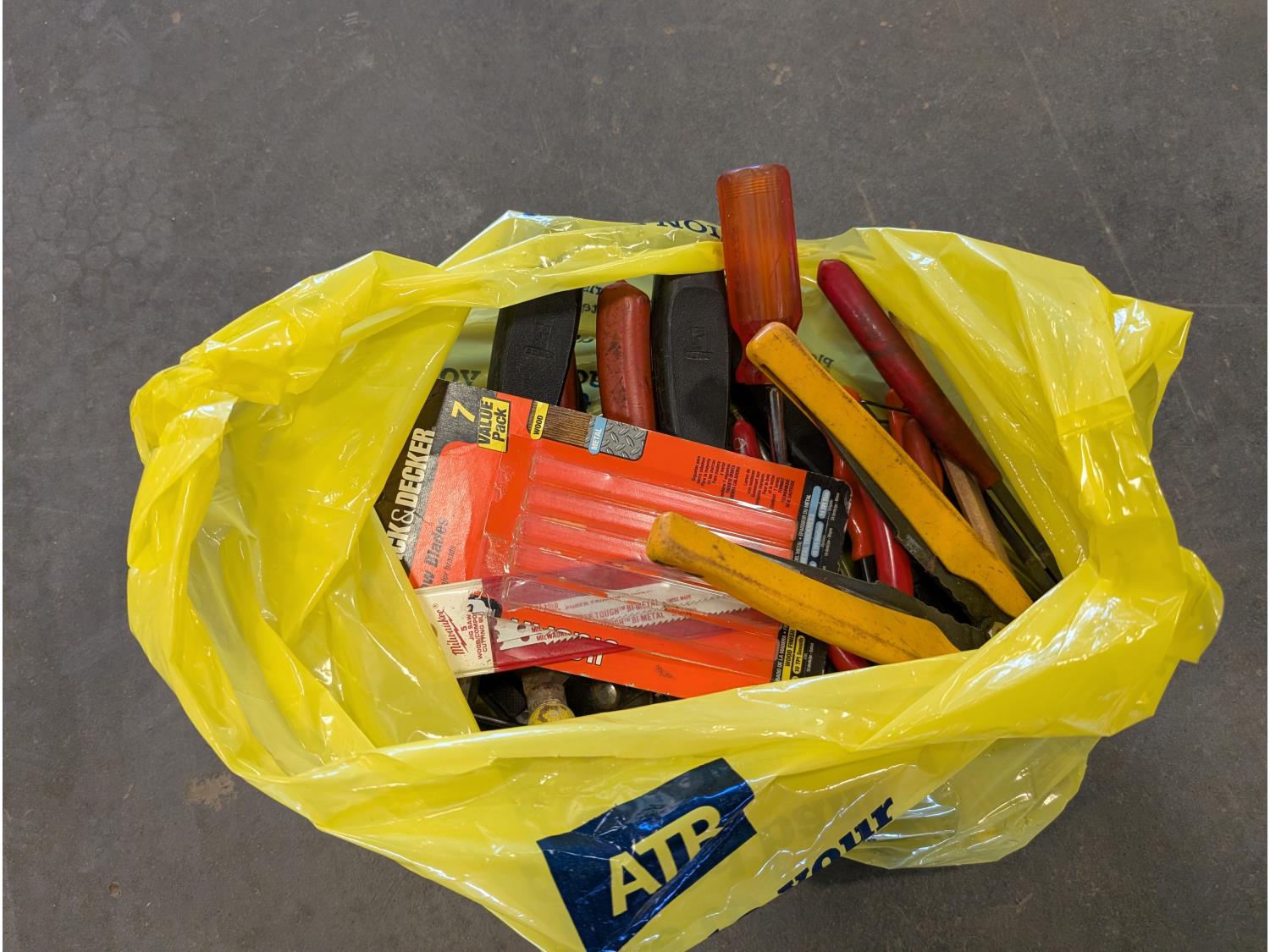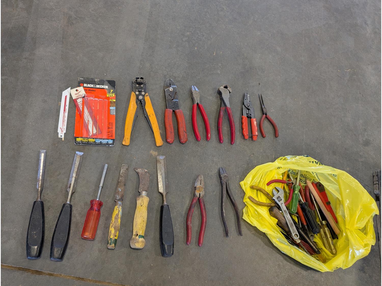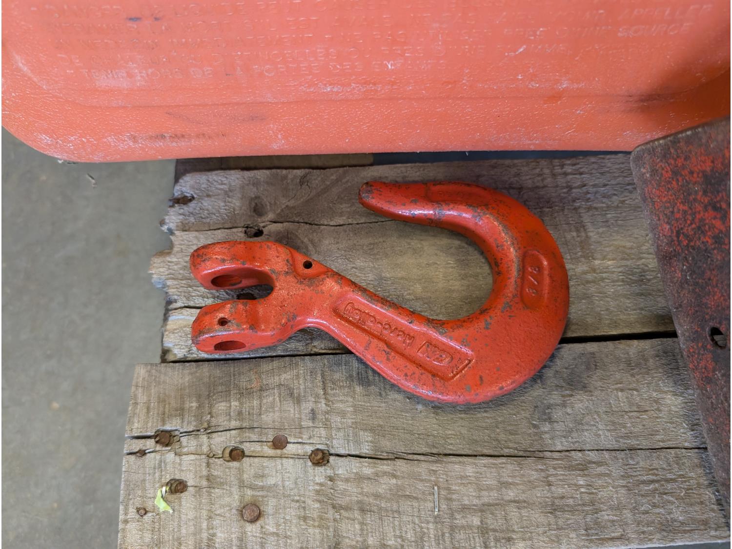 Jack-all, (2) jerry cans, qty of ground anchors, nails, cordless drill, (2) hammers, grease gun, hand tools