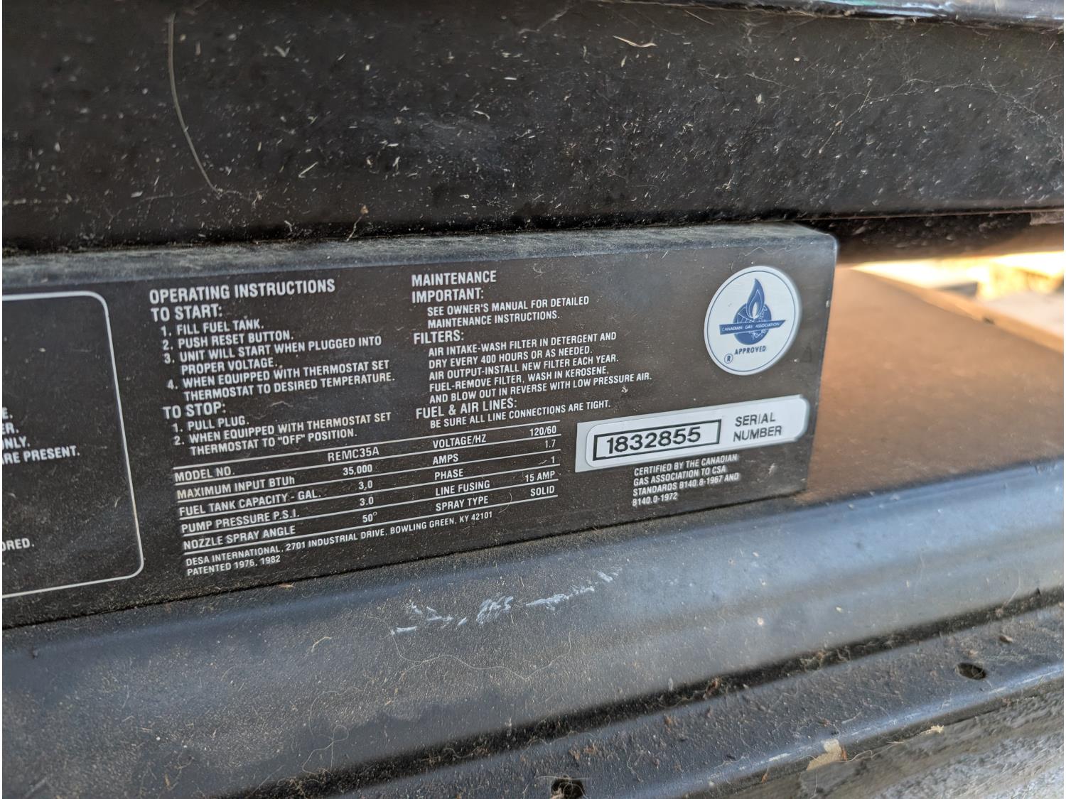 5347 Remington 35 Portable Forced Air Heater
