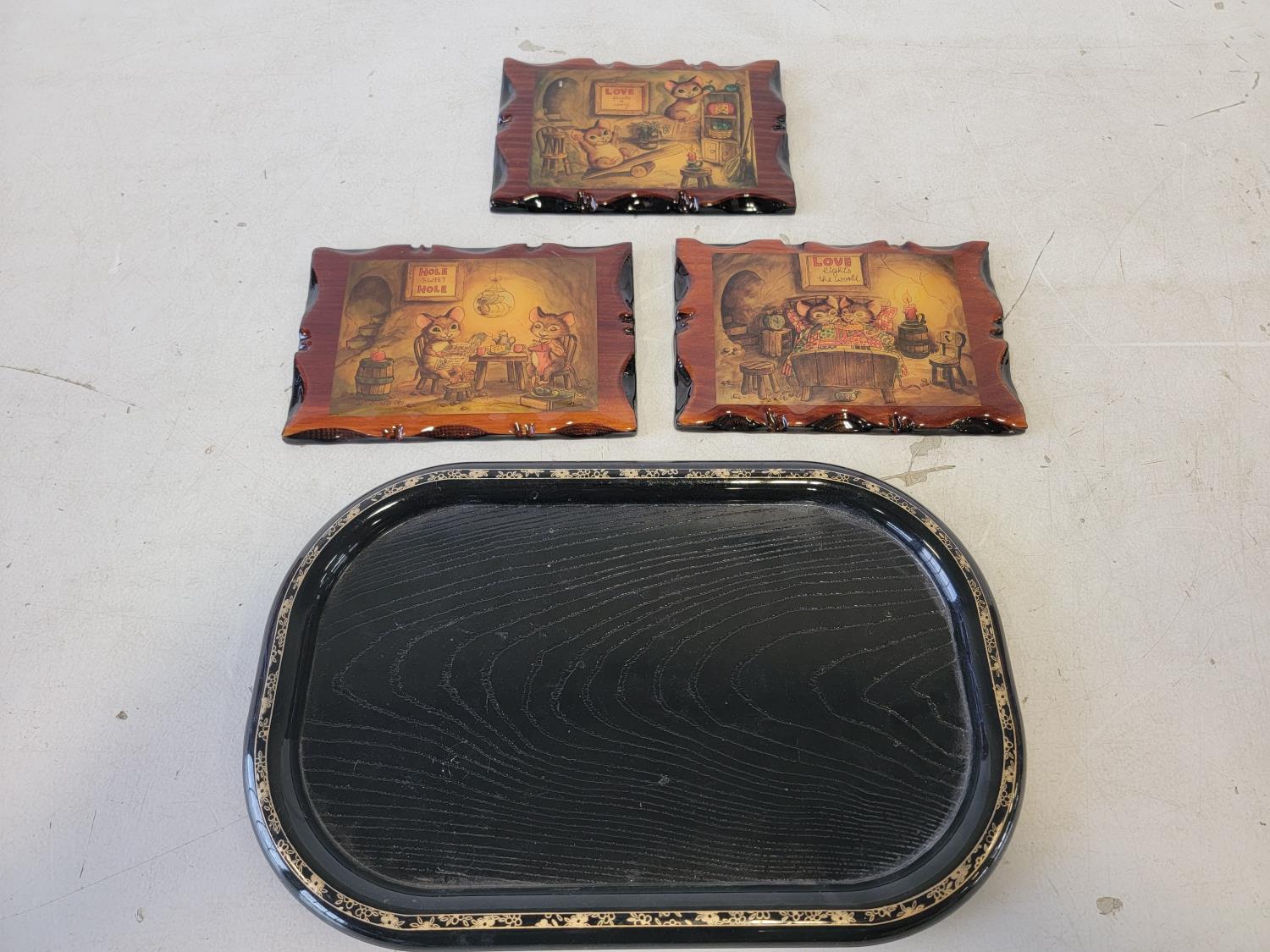 5138 Serving Platter and 3 Piece Wooden Wall Hangings