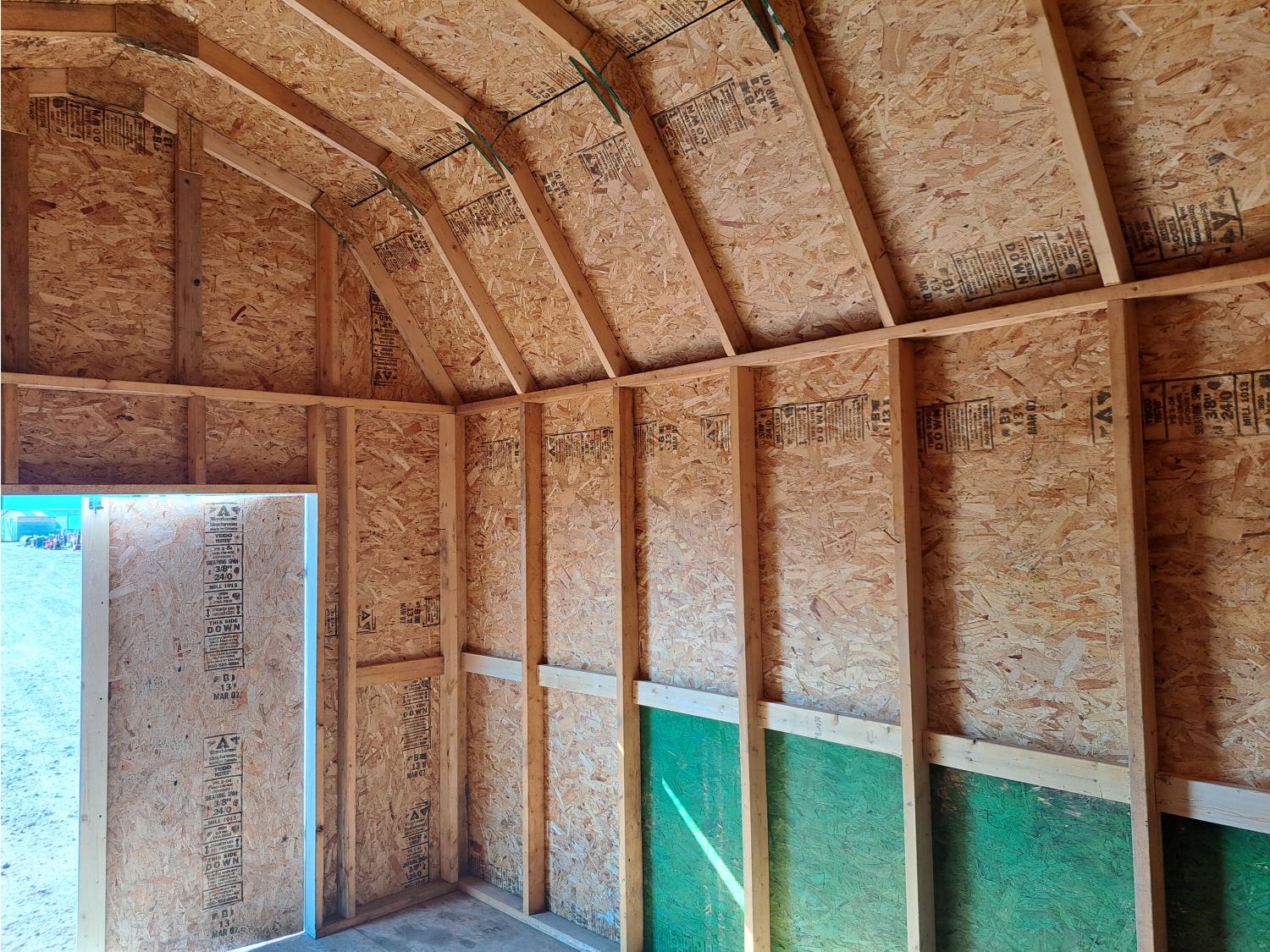 Barn style doors, shingled roof, 2 x 6 floor joist