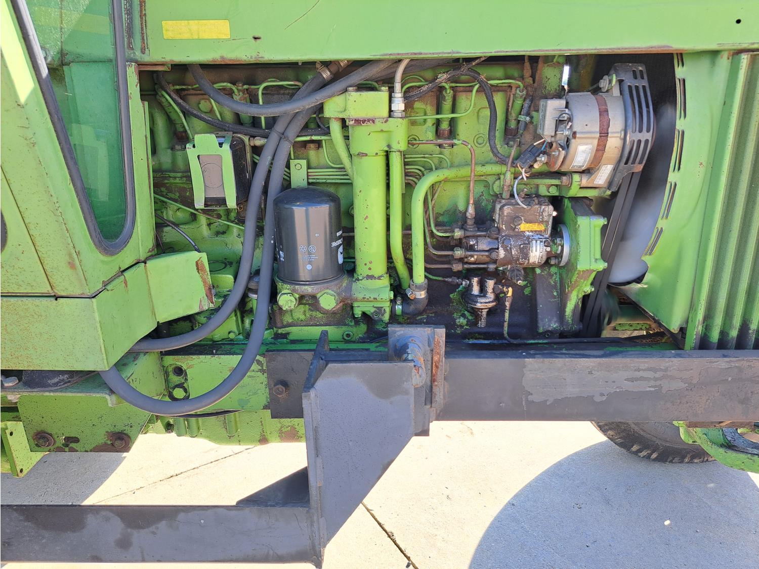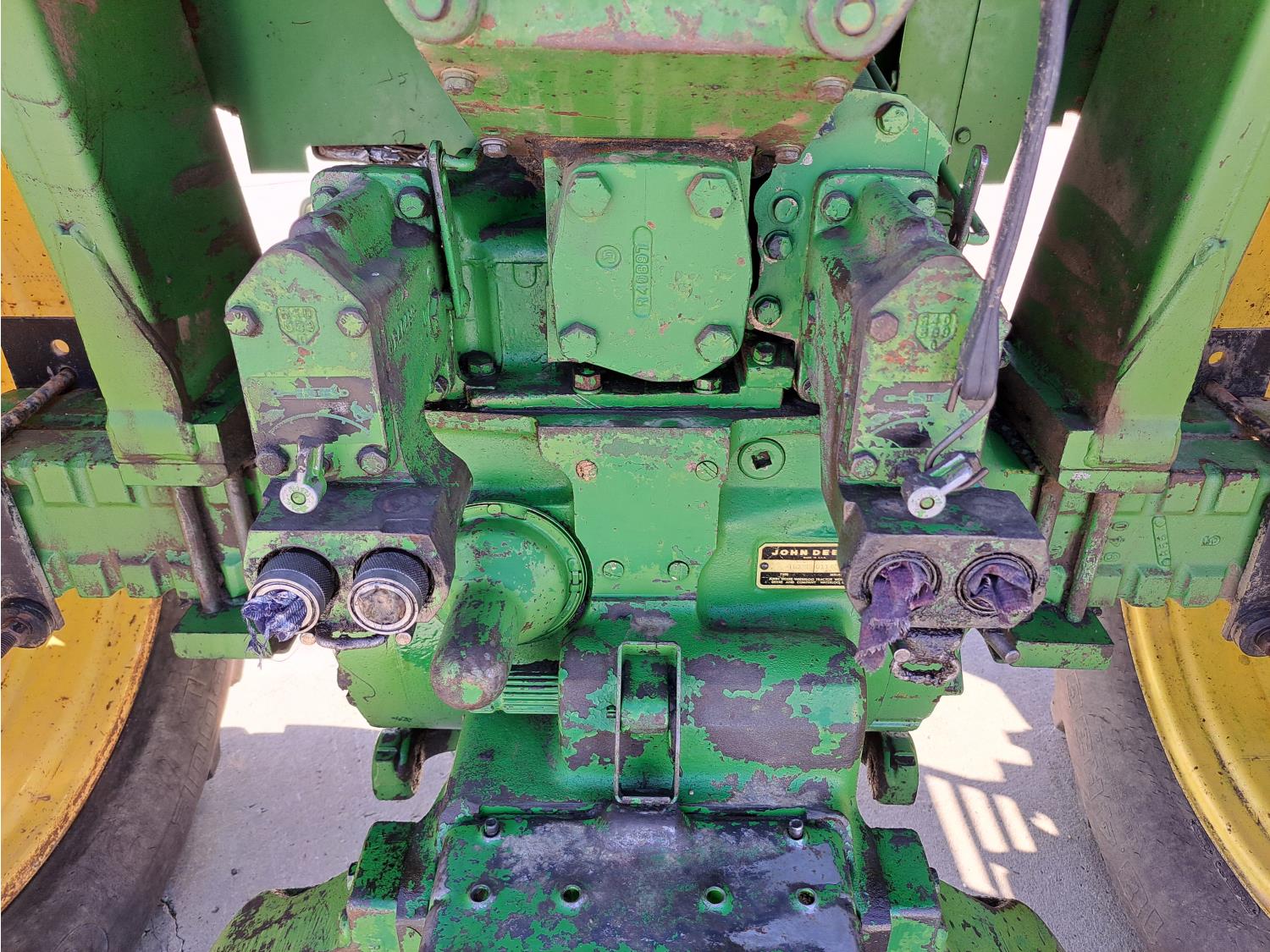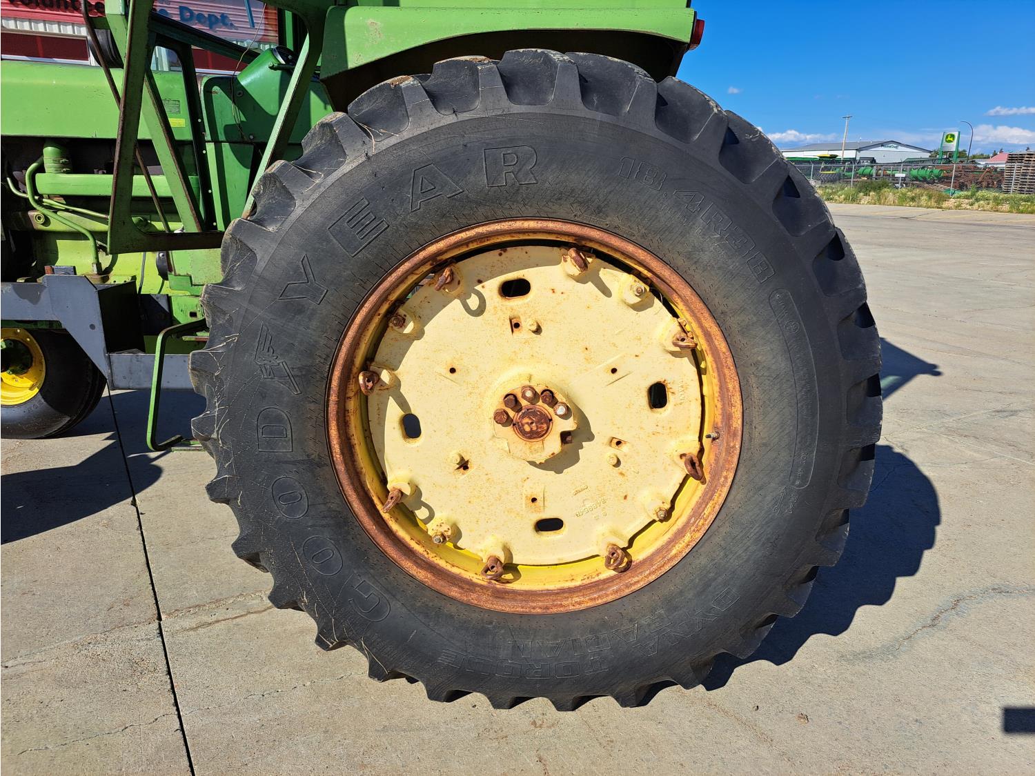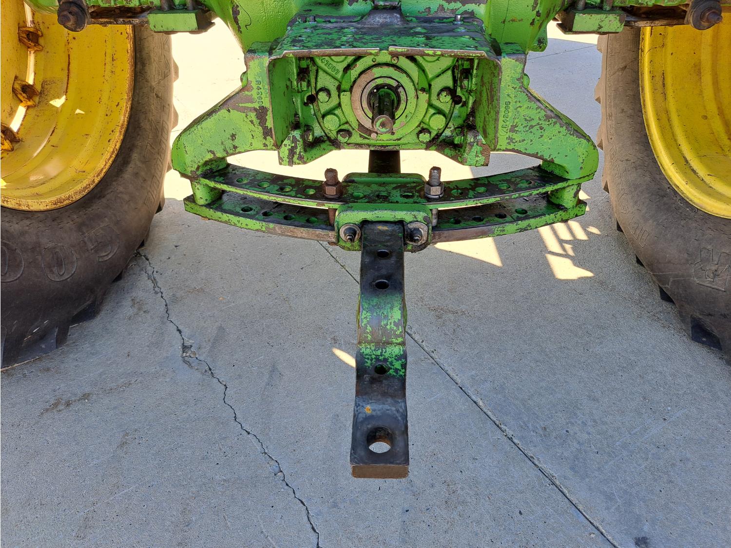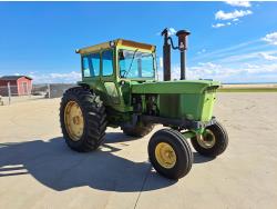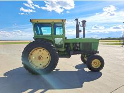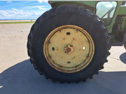 john deere 6.6 L 6 cylinder 127 HP, diesel engine, 115 PTO HP, 8 speed partial synchro transmission, cab, 540/1000 PTO, 2 rear hydraulic outlets, 10.00-16 front tires, 18.4R38 rear tires