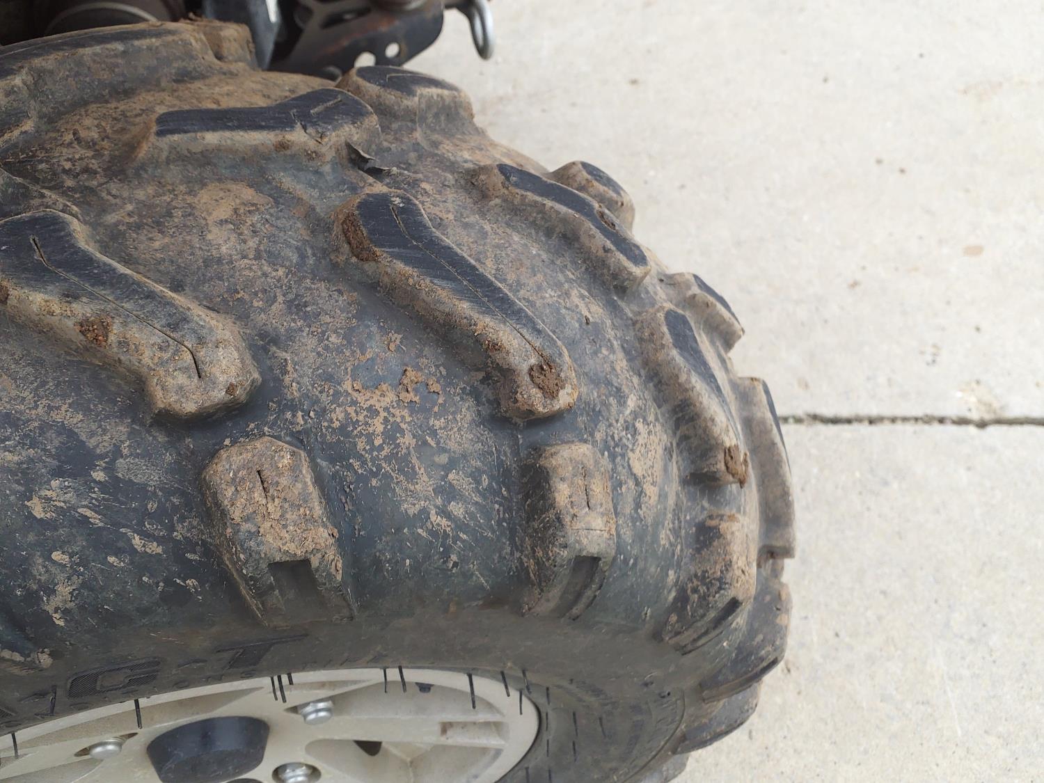 799 cc water cooled engine, automatic transmission, Hi/Lo range, reverse, hitch, front and rear racks, front winch, independent suspension, 26X8-12 front tires, 26X10-12 rear tires
