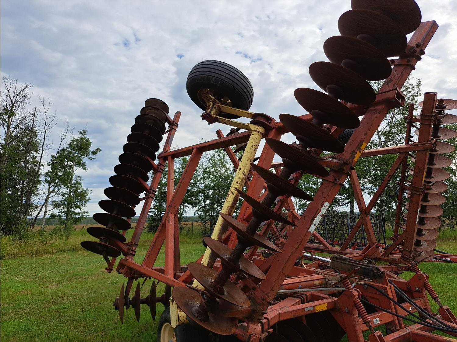 front: 8 inch spacing smooth 20 inch discs, rear: 8 inch spacing smooth 21 inch discs, 11L-15 tires
