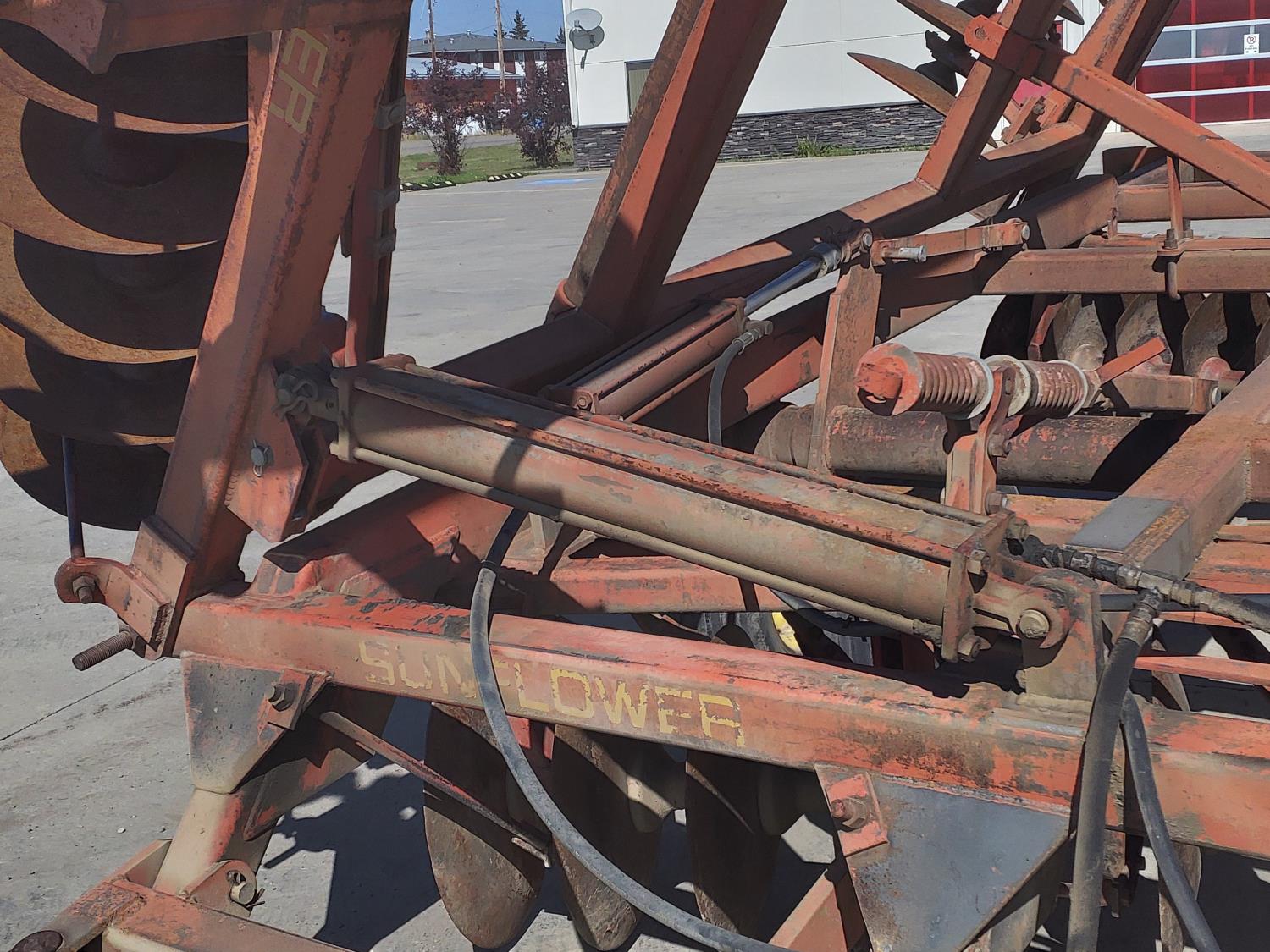 front: 21 inch spacing smooth 8.5 inch discs, rear: 22 inch spacing smooth 9 inch discs, scrapers, duals main frame, 9.5L-15 tires