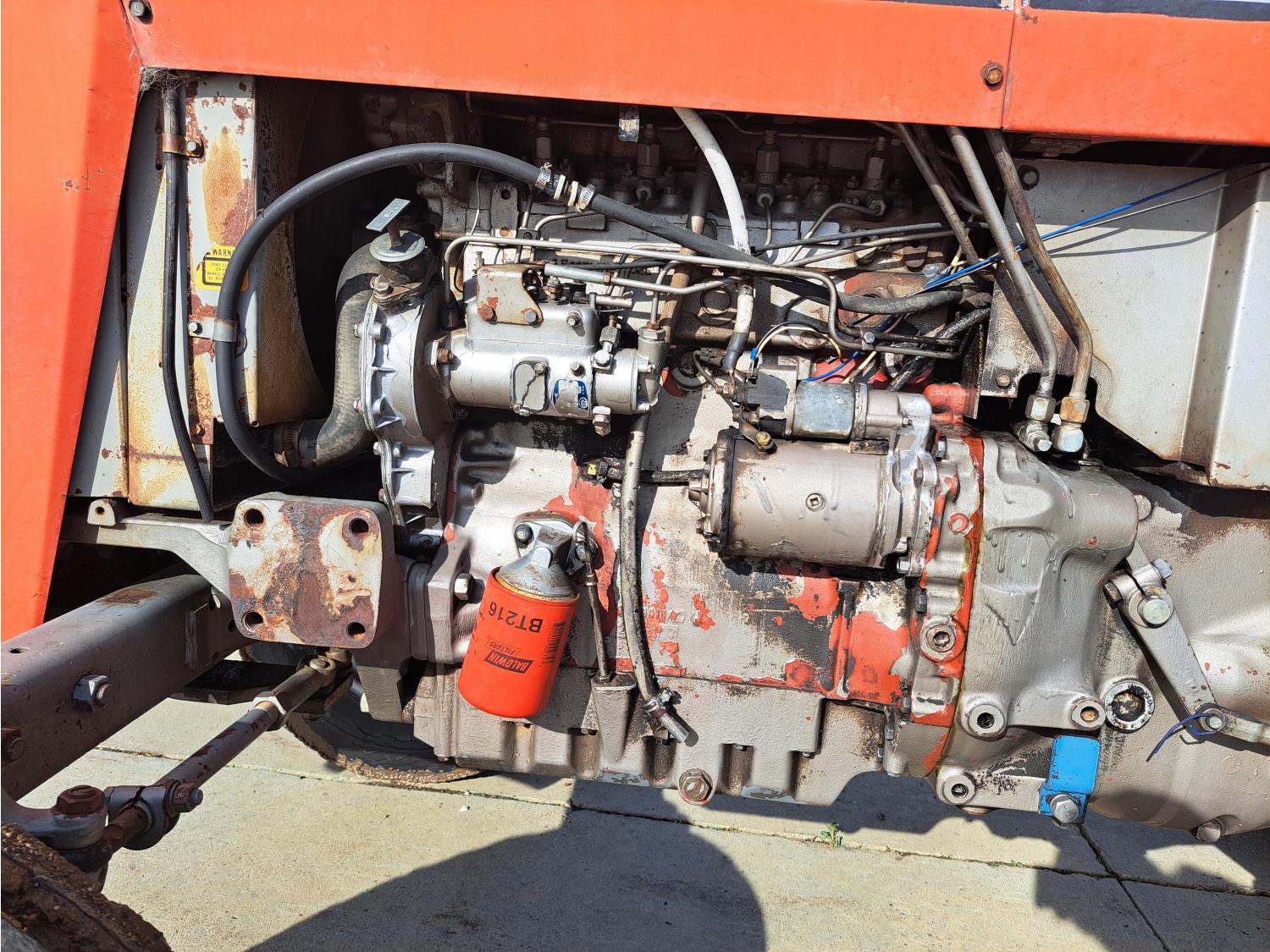 Perkins 4.1 L 4 cylinder 74 HP, diesel engine, 67 PTO HP, 8 speed manual transmission, open station platform, 540 PTO, 3 point hitch, 2 rear hydraulic outlets, 6.50-16 front tires, 16.9-30 rear tires