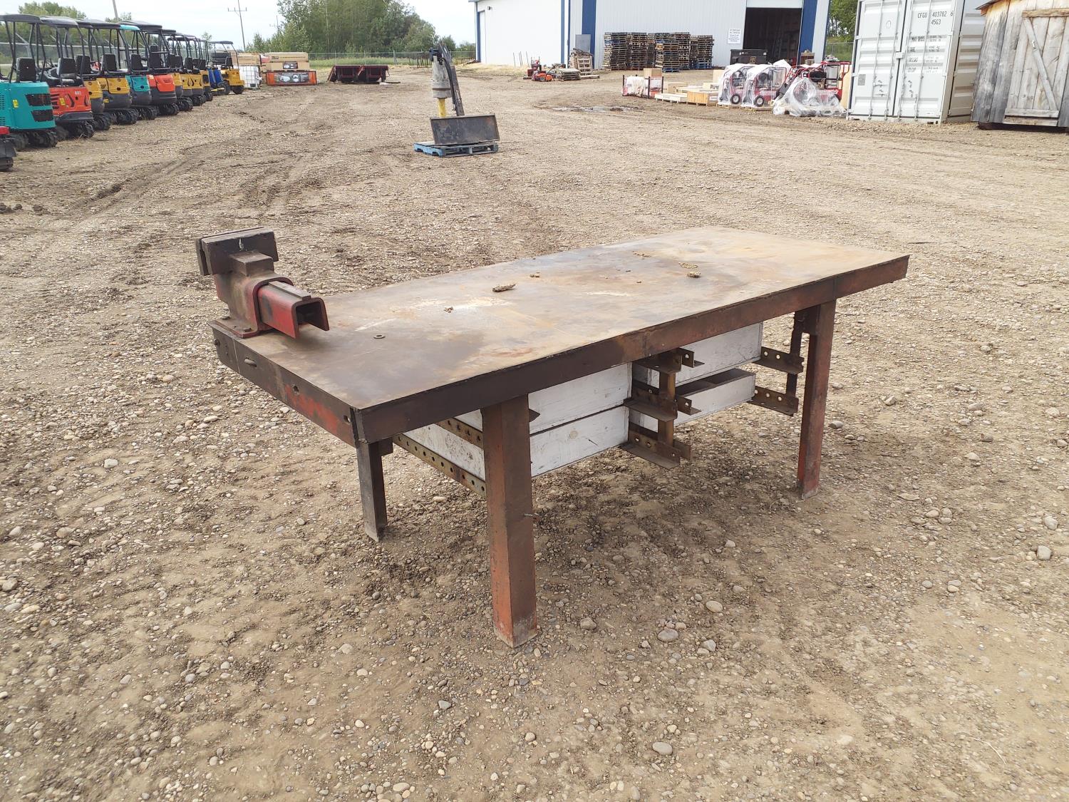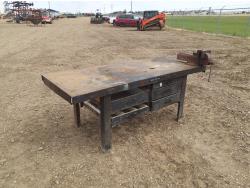 92 3 X 8 Ft Steel Work Table with Shop Vice