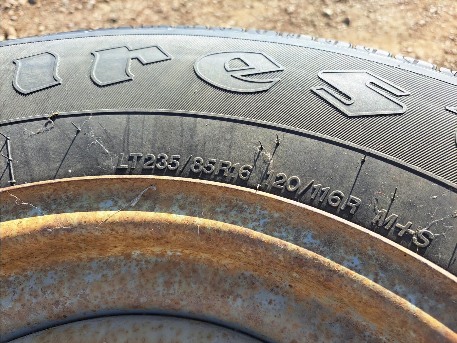 684 (4) Firestone 235/85R16 Tires with 8 Bolt Rims