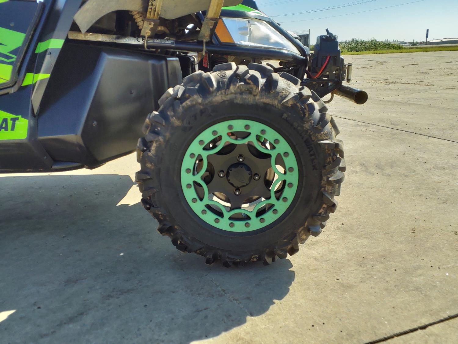 951 cc fuel injected water cooled engine, CVT transmission, Hi/Lo range, reverse, 2 passengers, windshield, front winch, front locking differential, 27X9.00R14 front tires, 27X11.00R14 rear tires