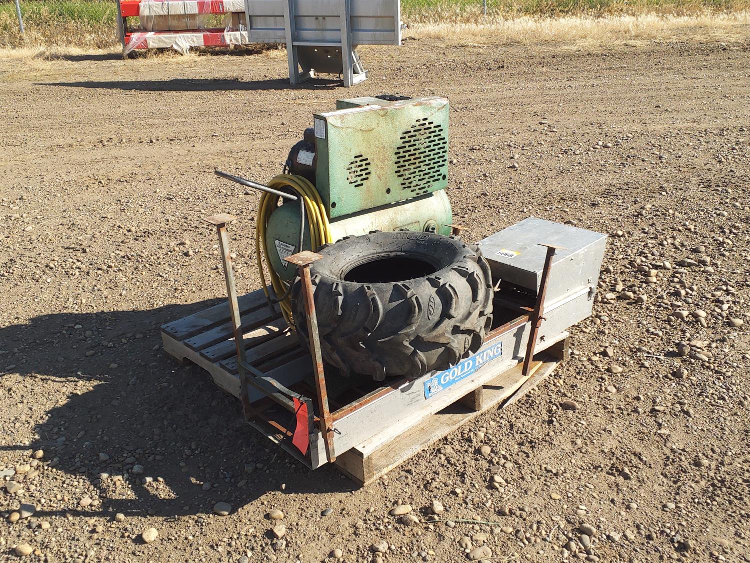 61 Air Compressor, Gold Panning Bar & ATV Tire