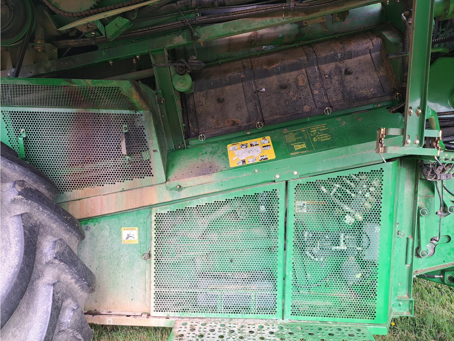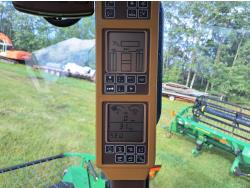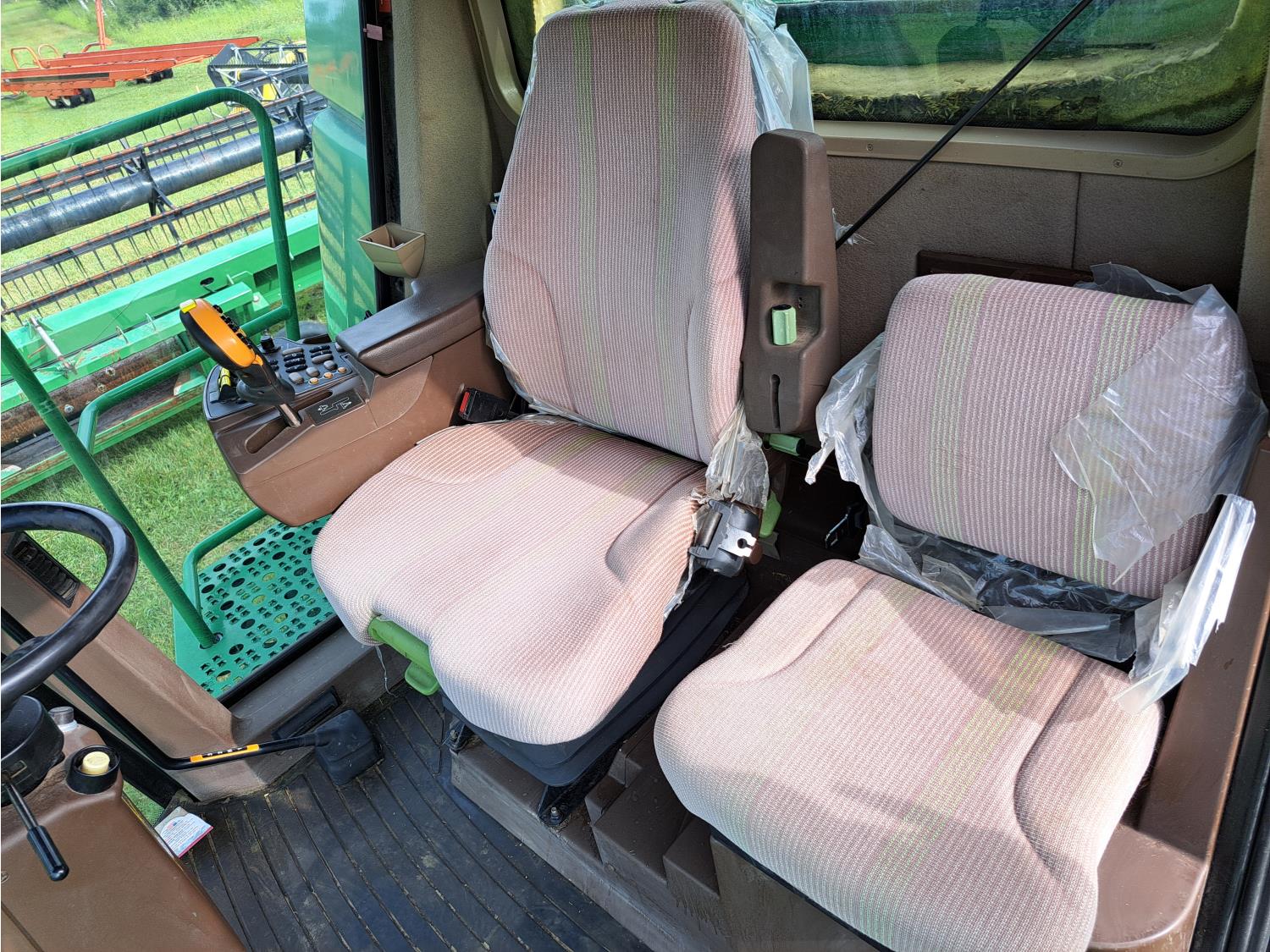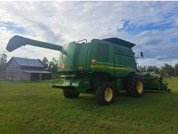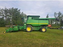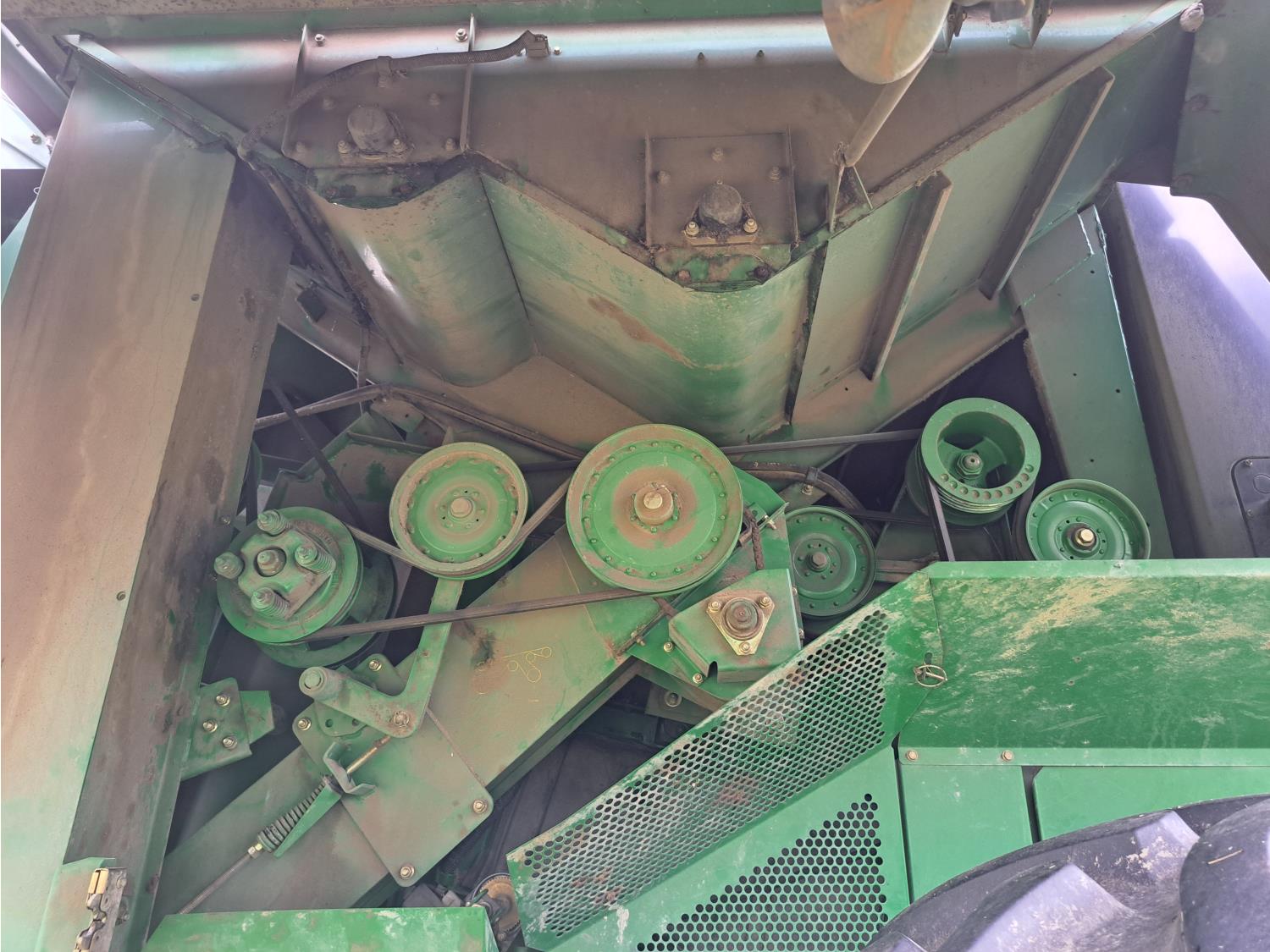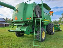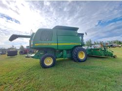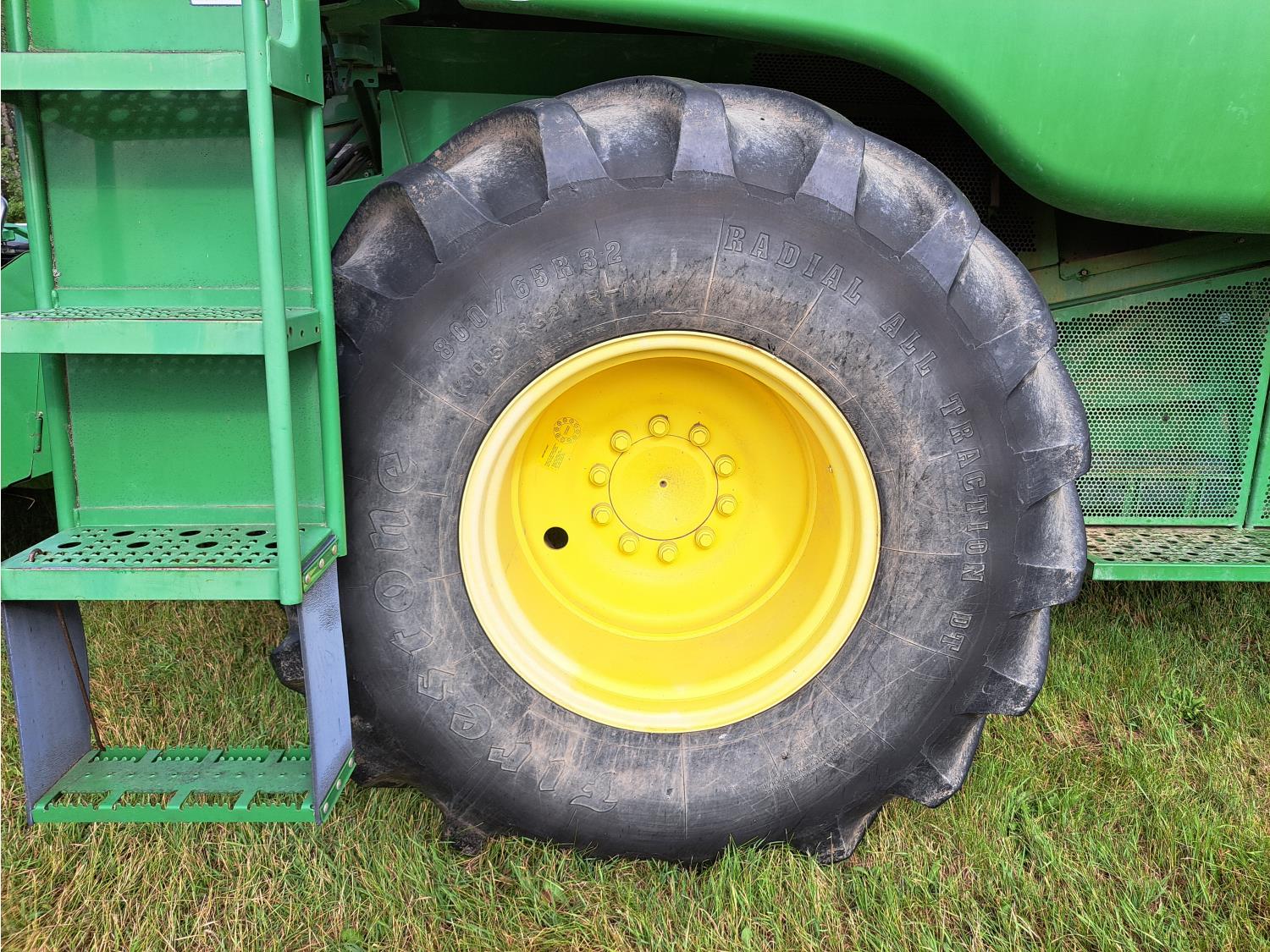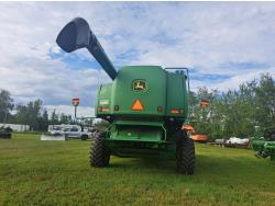 John Deere 615 15 ft pick-up header, variable speed reel, fore & aft, reverser, rock trap, yield & moisture, chaff spreader, 21 ft auger, A/C, radio, air ride seat, buddy seat, 800/65R32 front tires, 18.4-26 rear tires