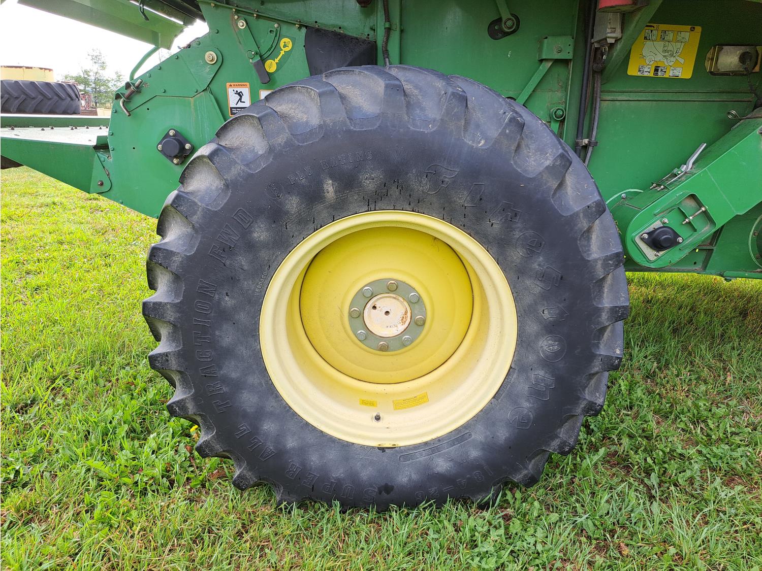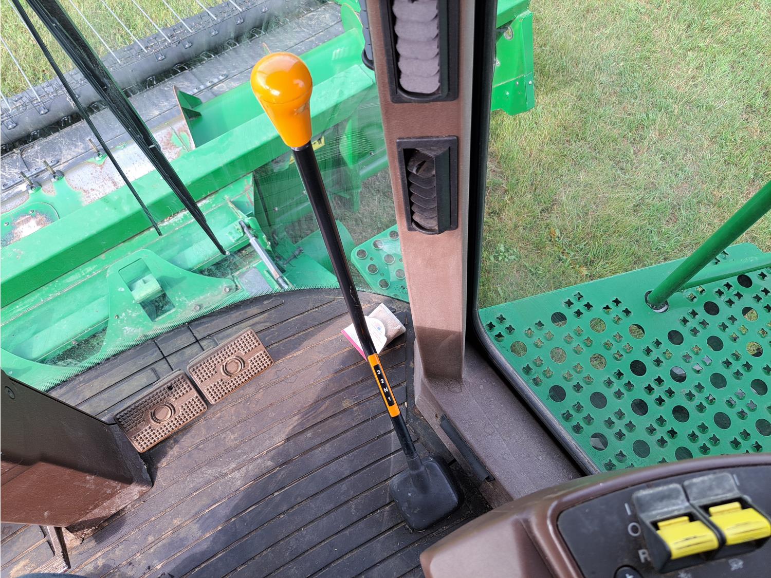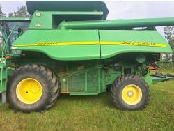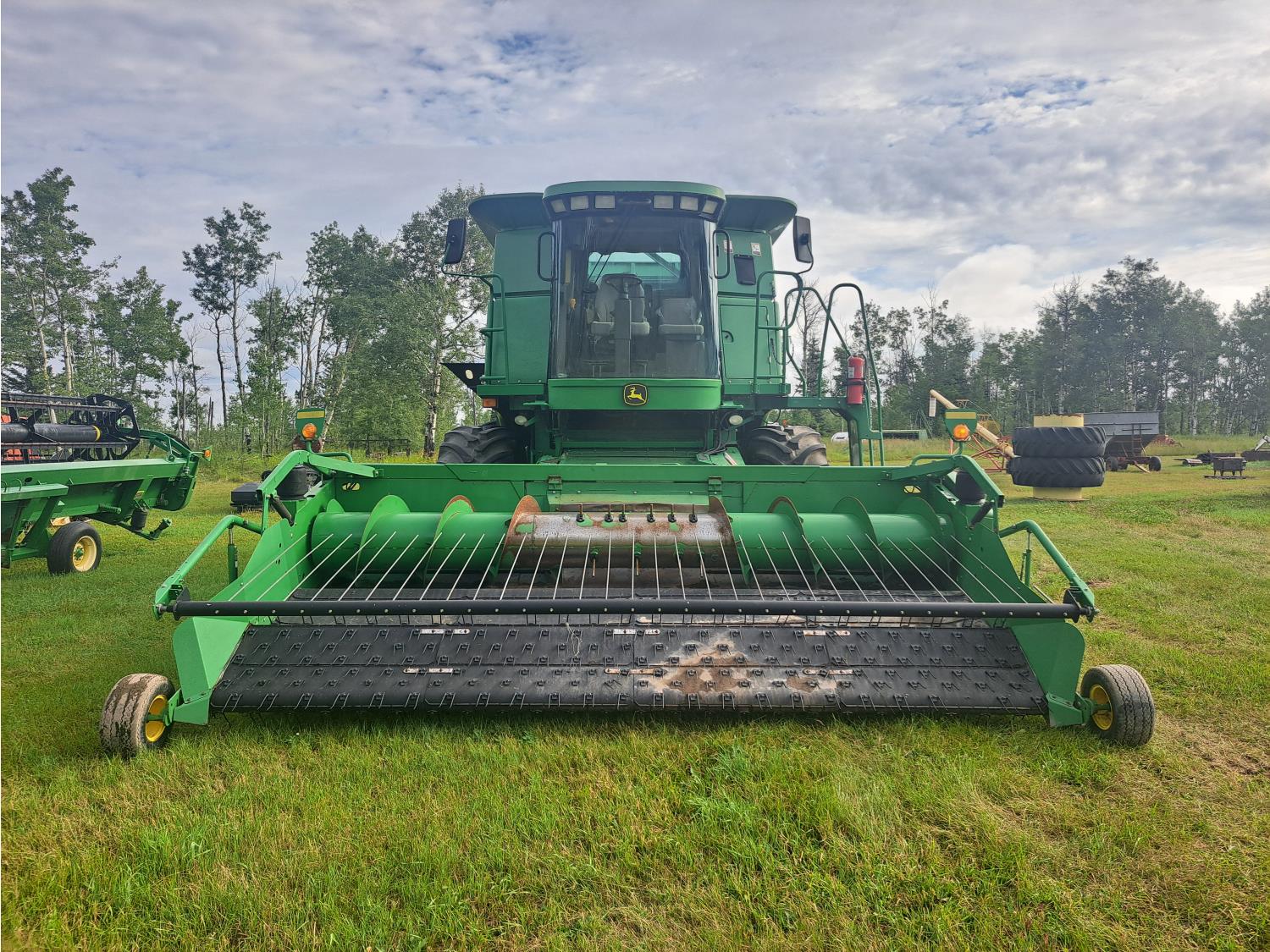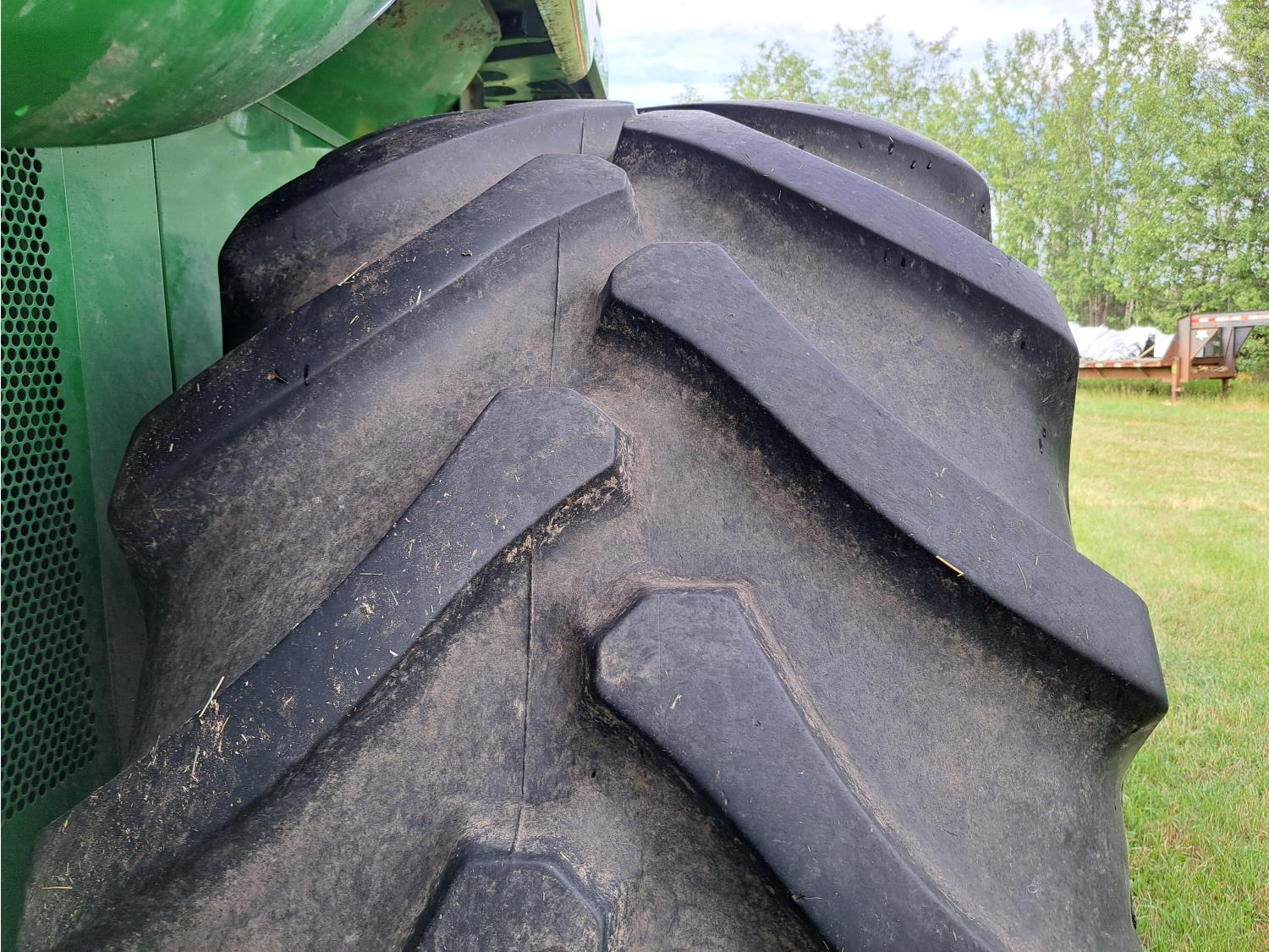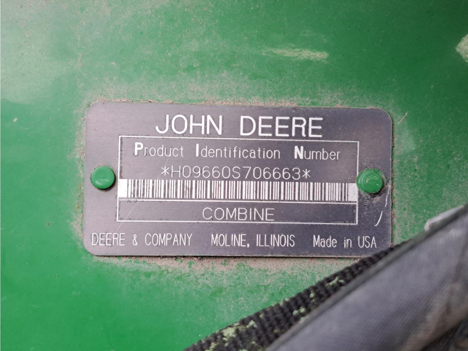 John Deere 615 15 ft pick-up header, variable speed reel, fore & aft, reverser, rock trap, yield & moisture, chaff spreader, 21 ft auger, A/C, radio, air ride seat, buddy seat, 800/65R32 front tires, 18.4-26 rear tires
