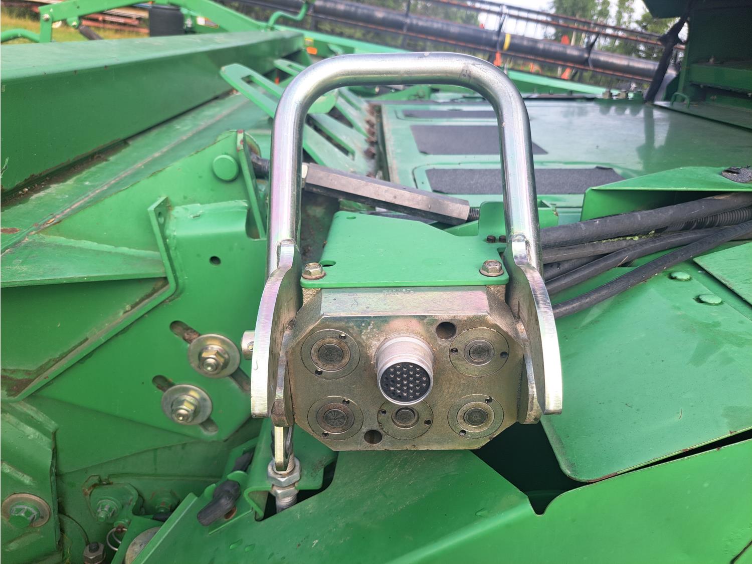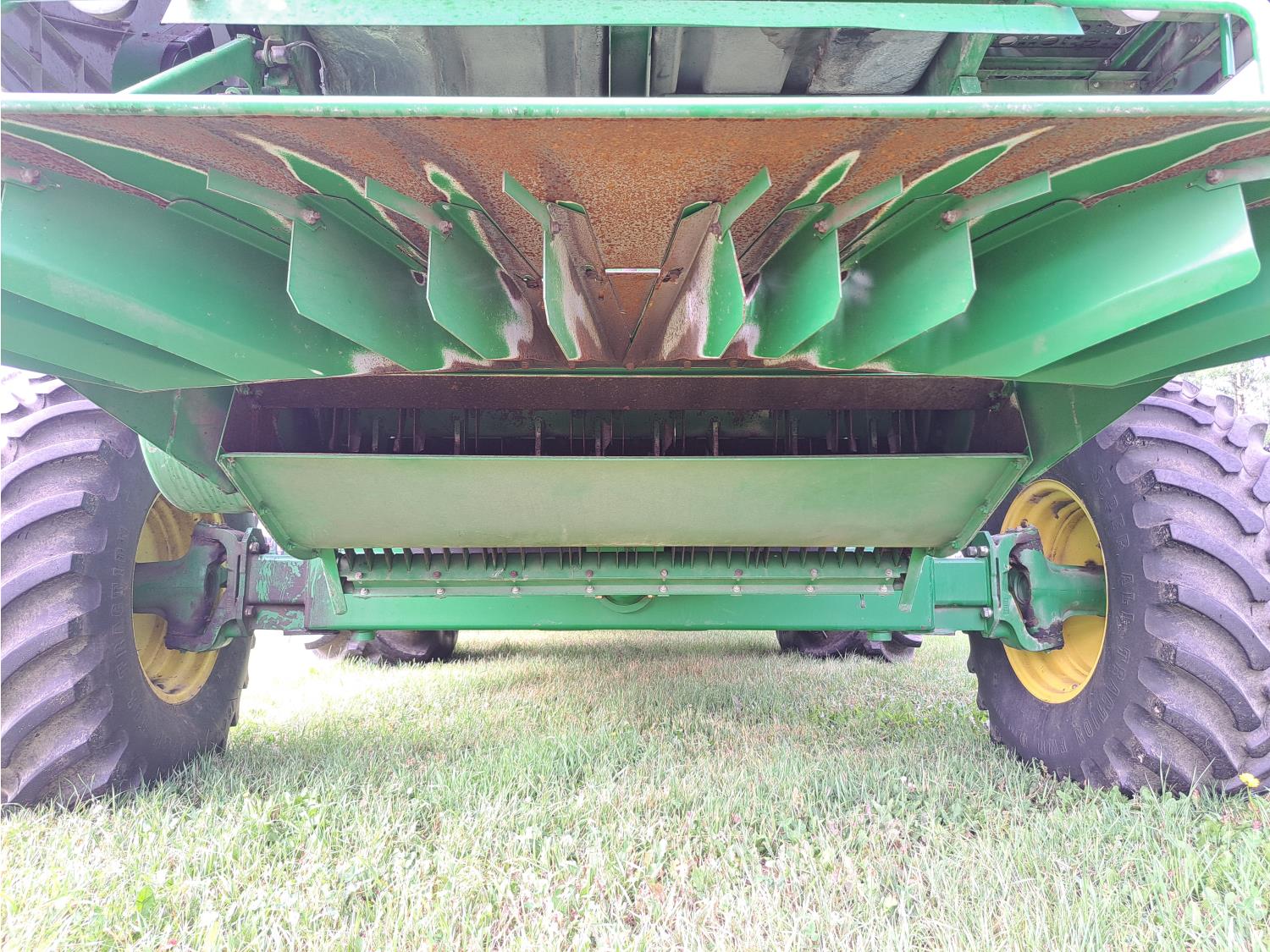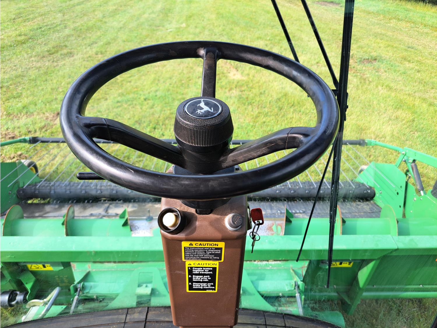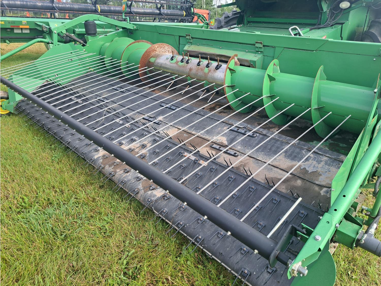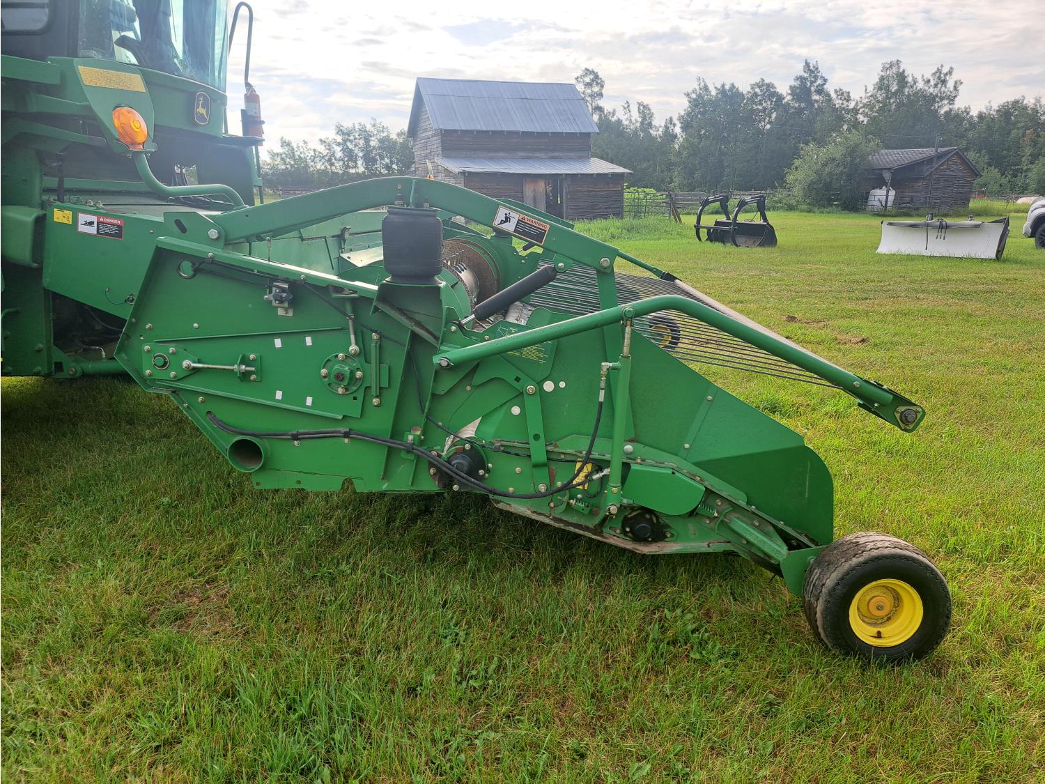 John Deere 615 15 ft pick-up header, variable speed reel, fore & aft, reverser, rock trap, yield & moisture, chaff spreader, 21 ft auger, A/C, radio, air ride seat, buddy seat, 800/65R32 front tires, 18.4-26 rear tires