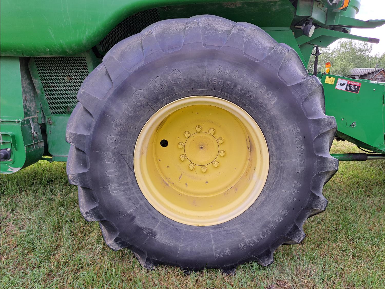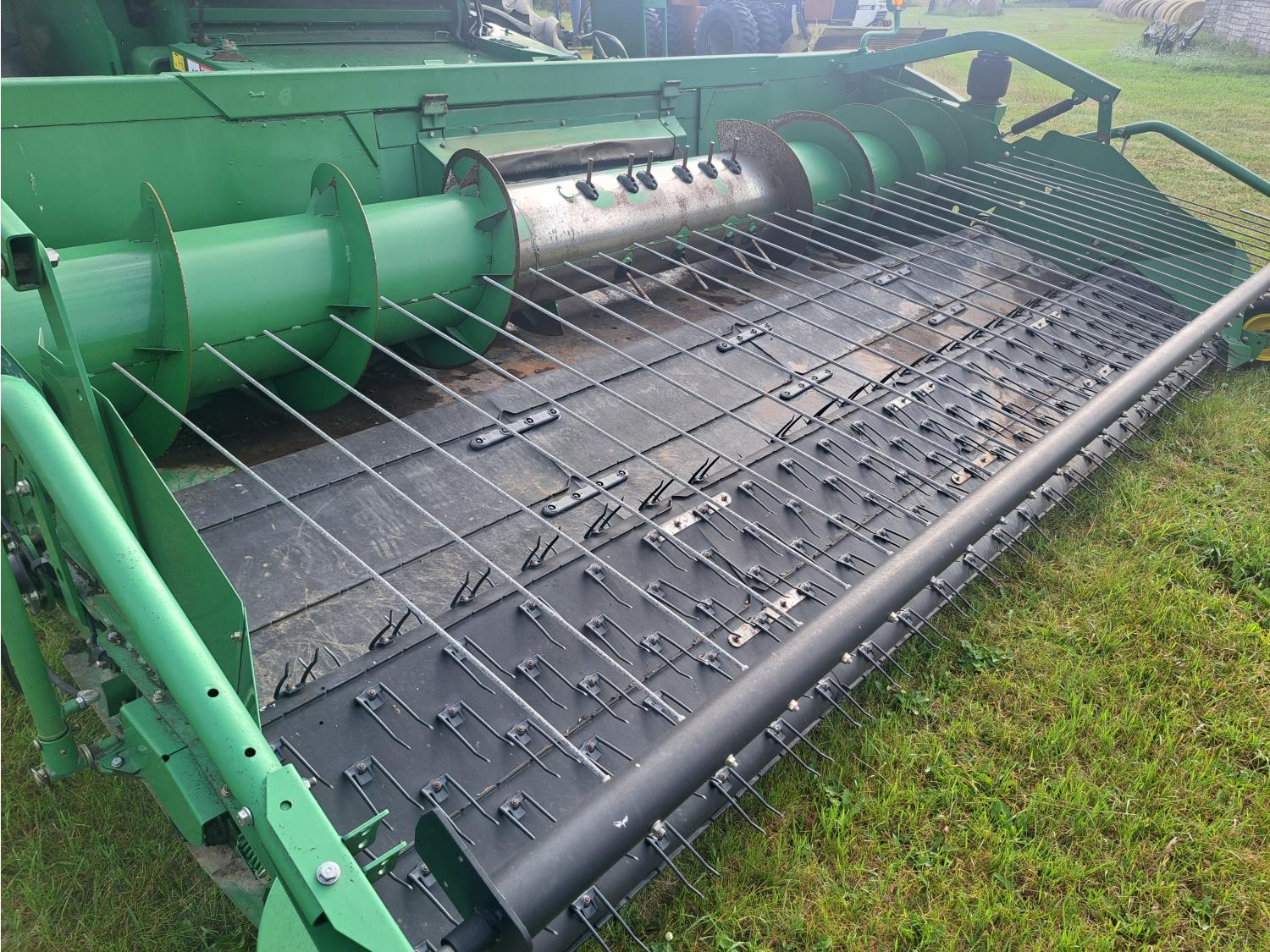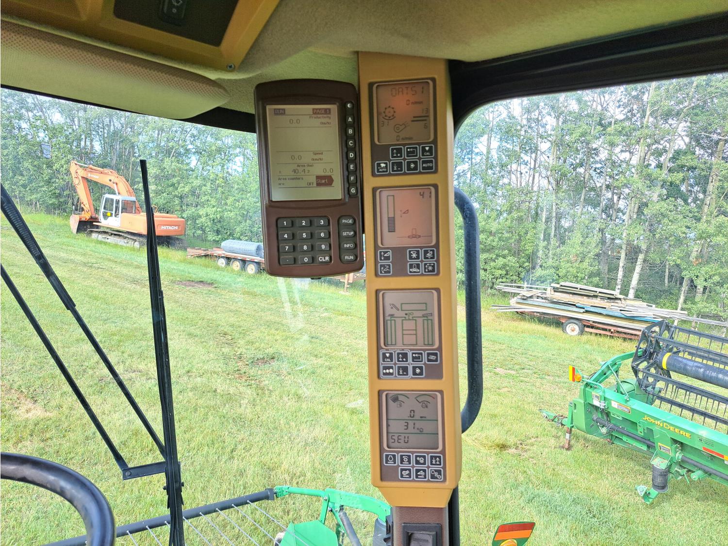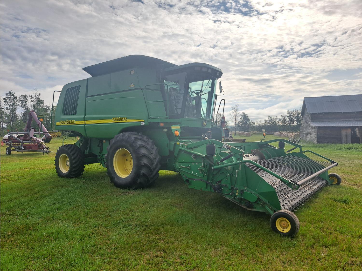 John Deere 615 15 ft pick-up header, variable speed reel, fore & aft, reverser, rock trap, yield & moisture, chaff spreader, 21 ft auger, A/C, radio, air ride seat, buddy seat, 800/65R32 front tires, 18.4-26 rear tires