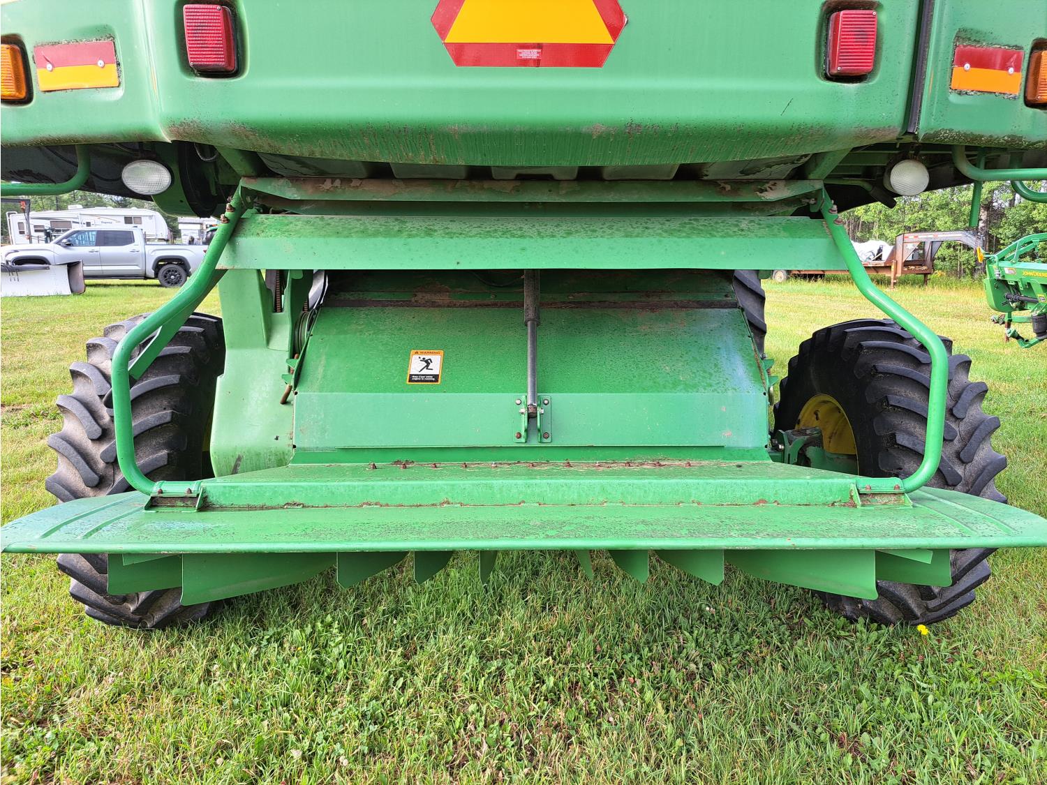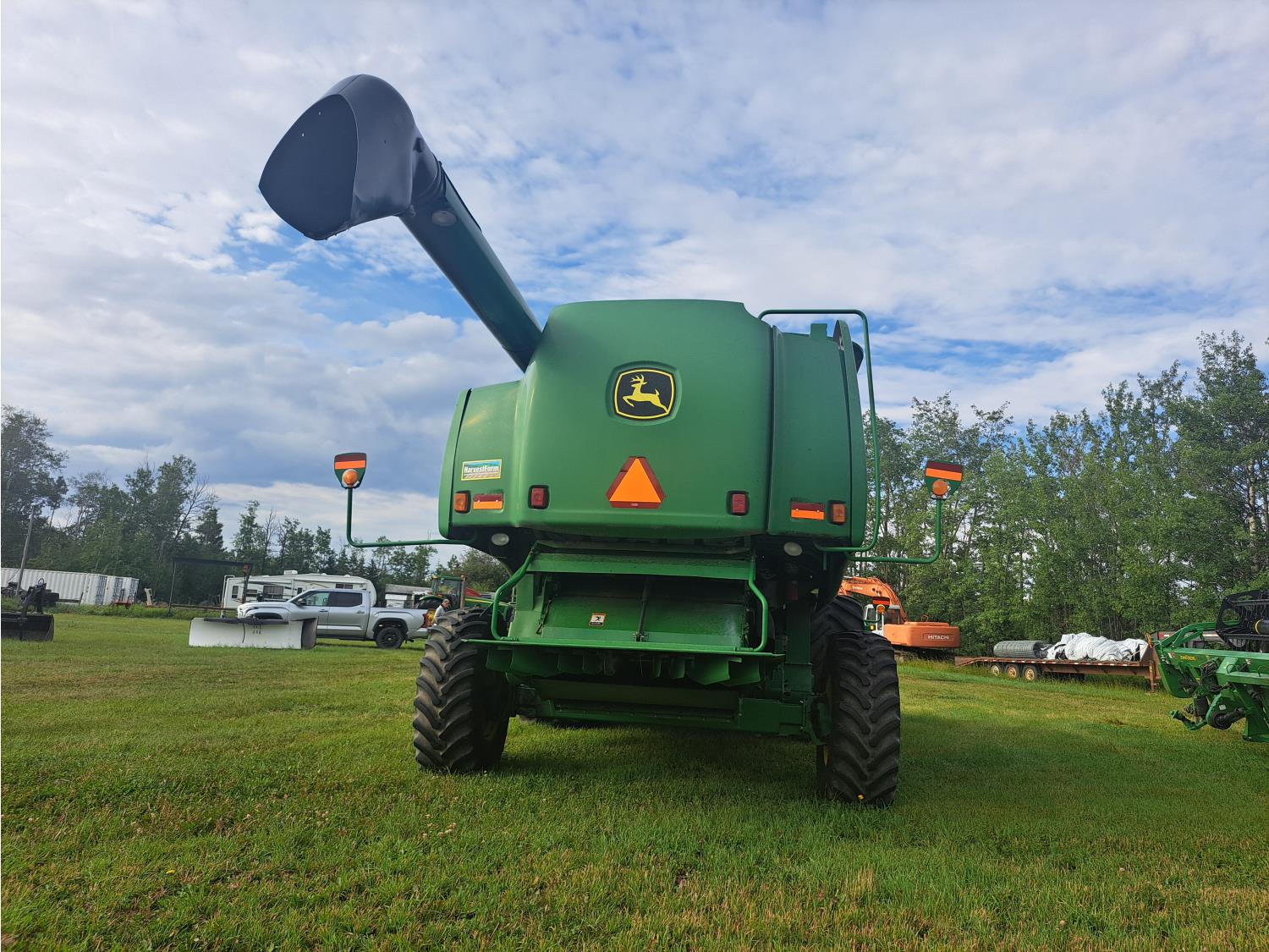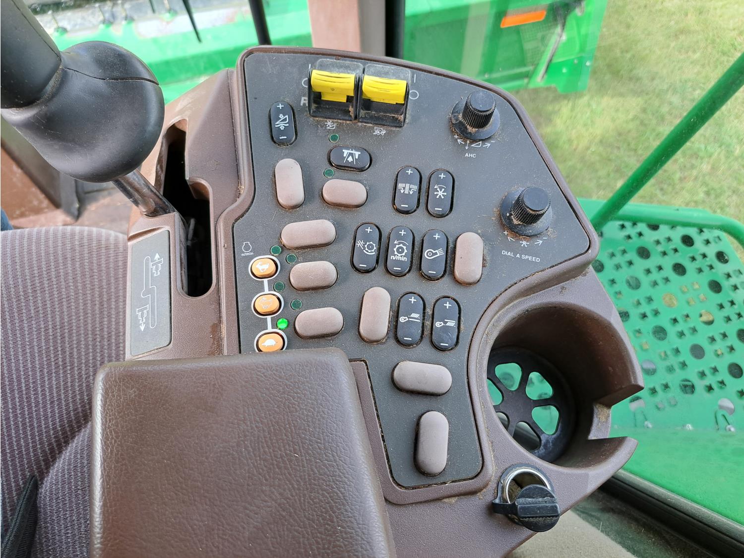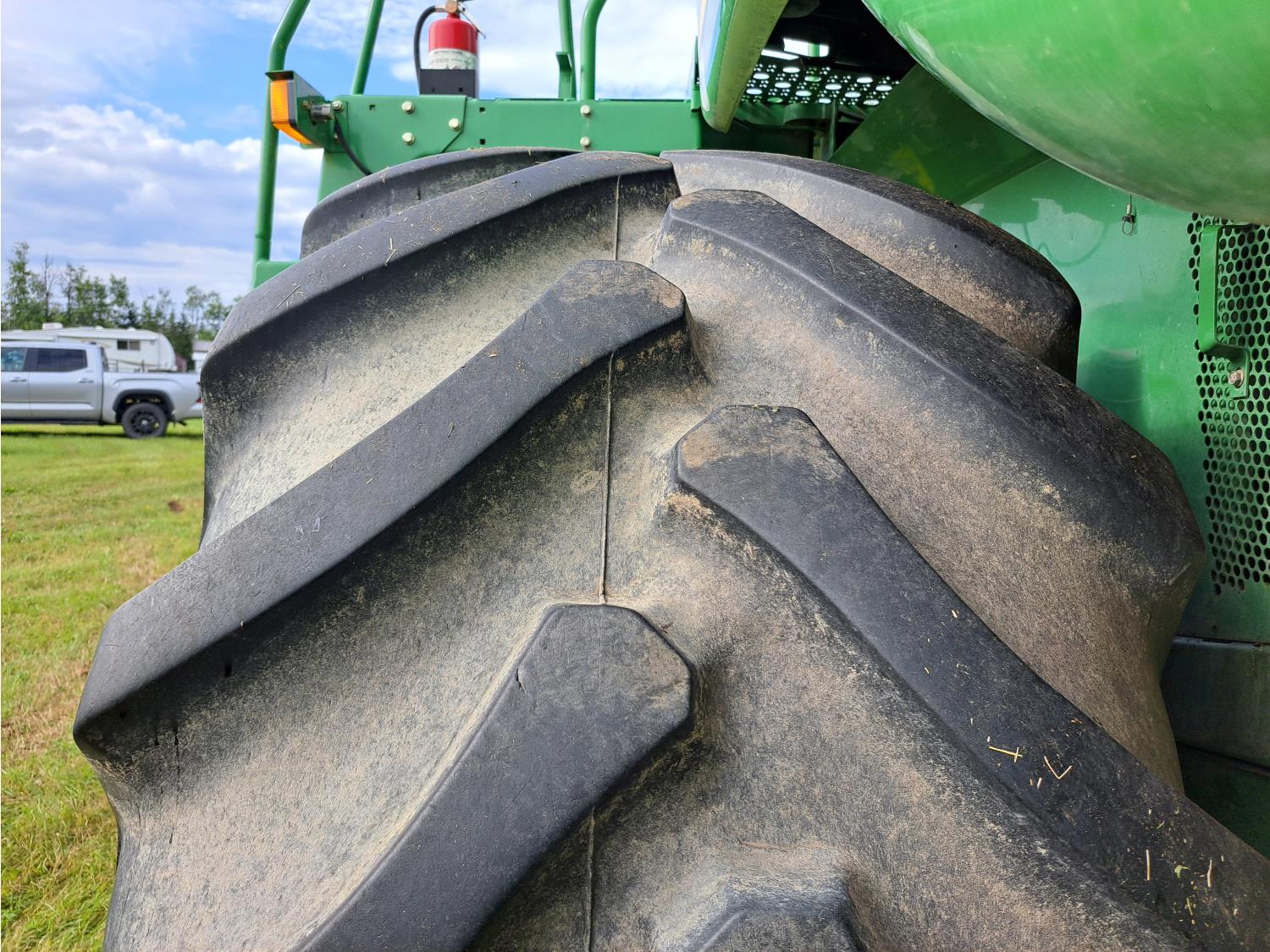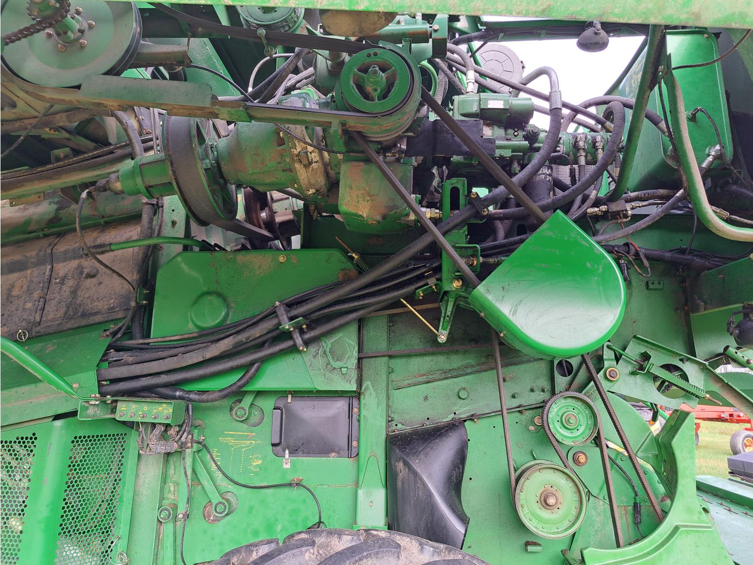 John Deere 615 15 ft pick-up header, variable speed reel, fore & aft, reverser, rock trap, yield & moisture, chaff spreader, 21 ft auger, A/C, radio, air ride seat, buddy seat, 800/65R32 front tires, 18.4-26 rear tires