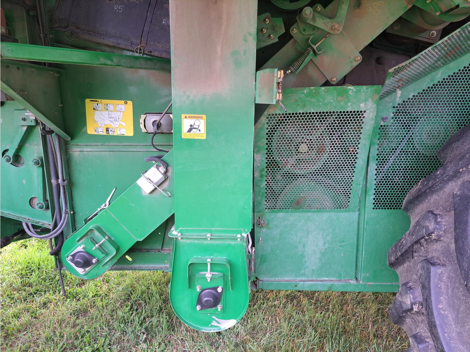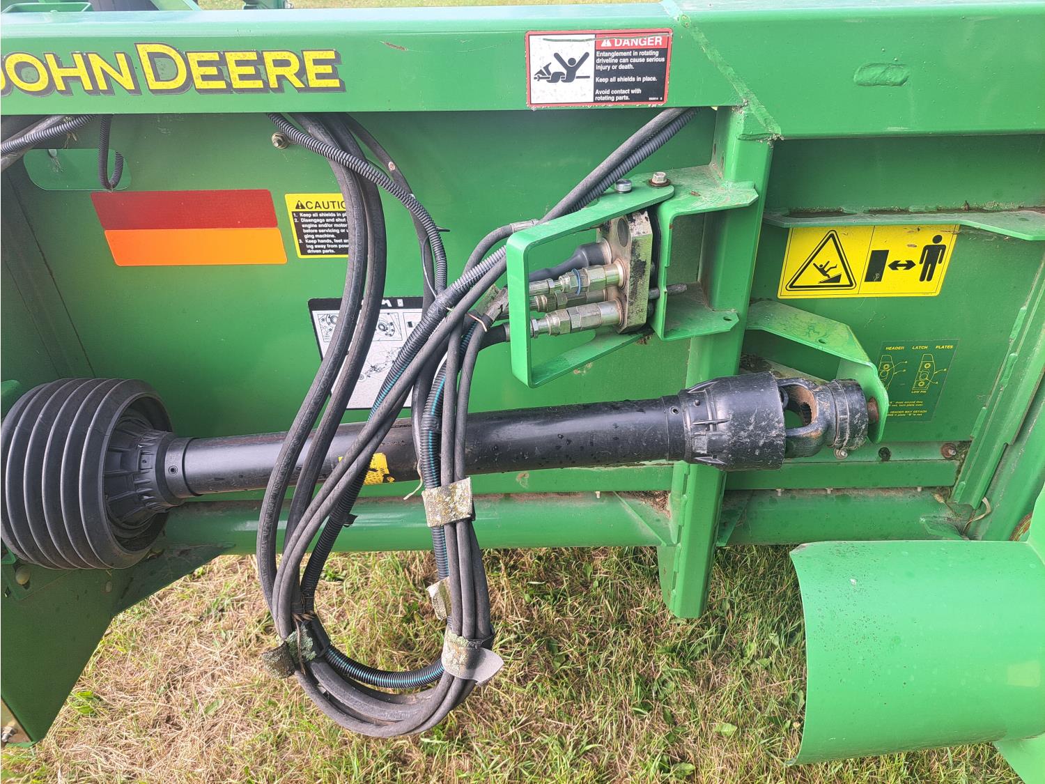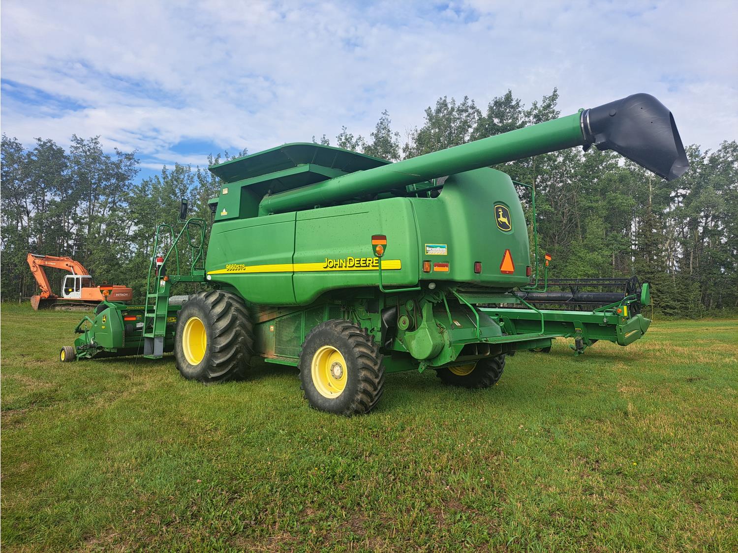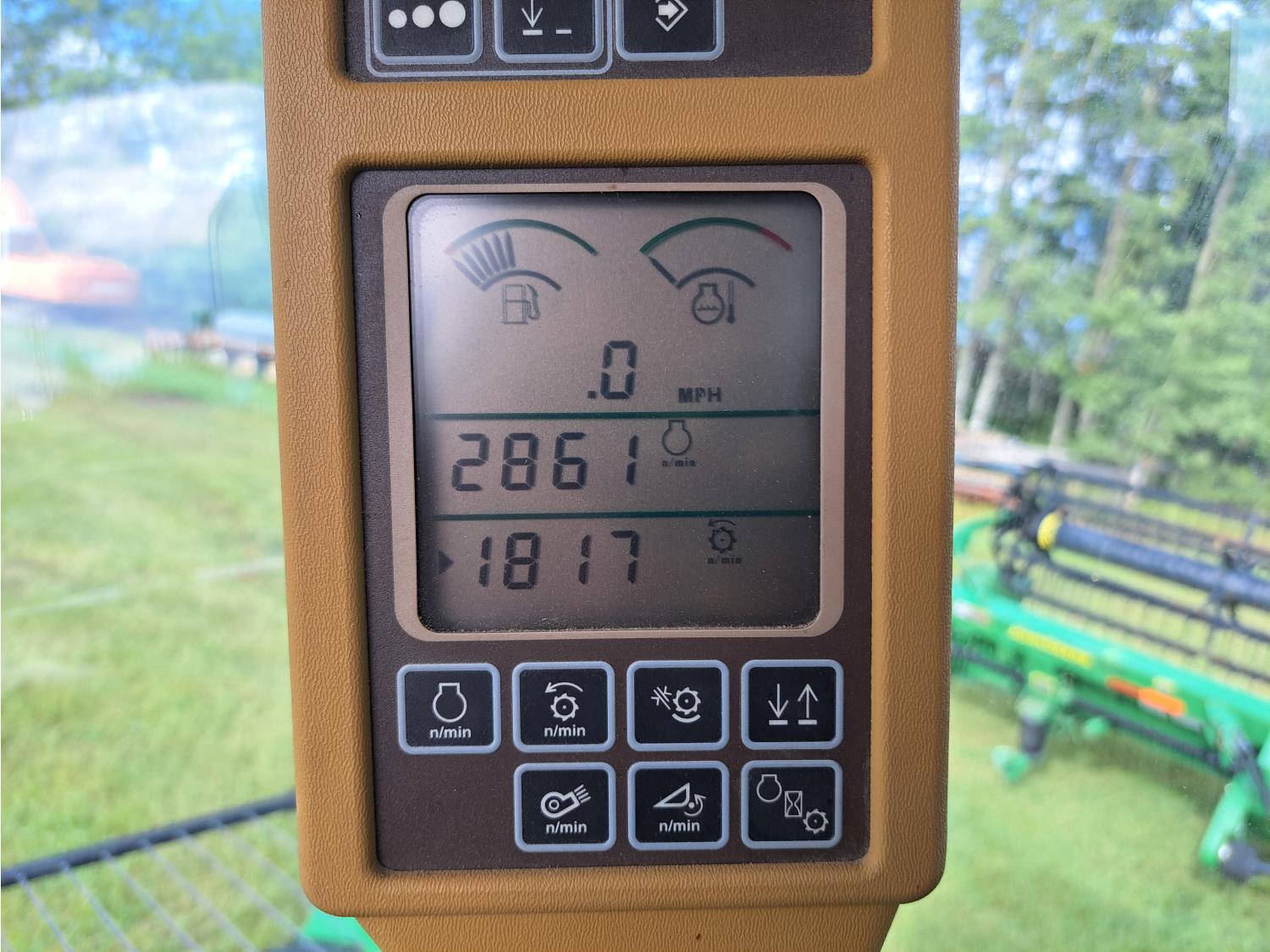 John Deere 615 15 ft pick-up header, variable speed reel, fore & aft, reverser, rock trap, yield & moisture, chaff spreader, 21 ft auger, A/C, radio, air ride seat, buddy seat, 800/65R32 front tires, 18.4-26 rear tires