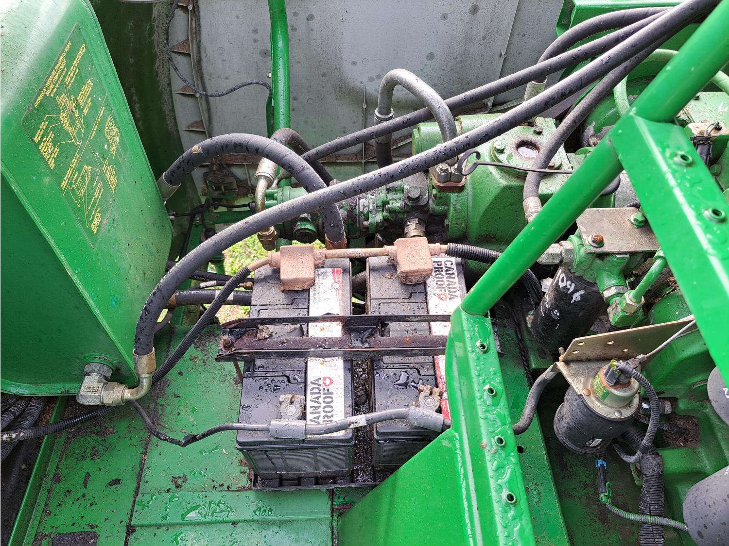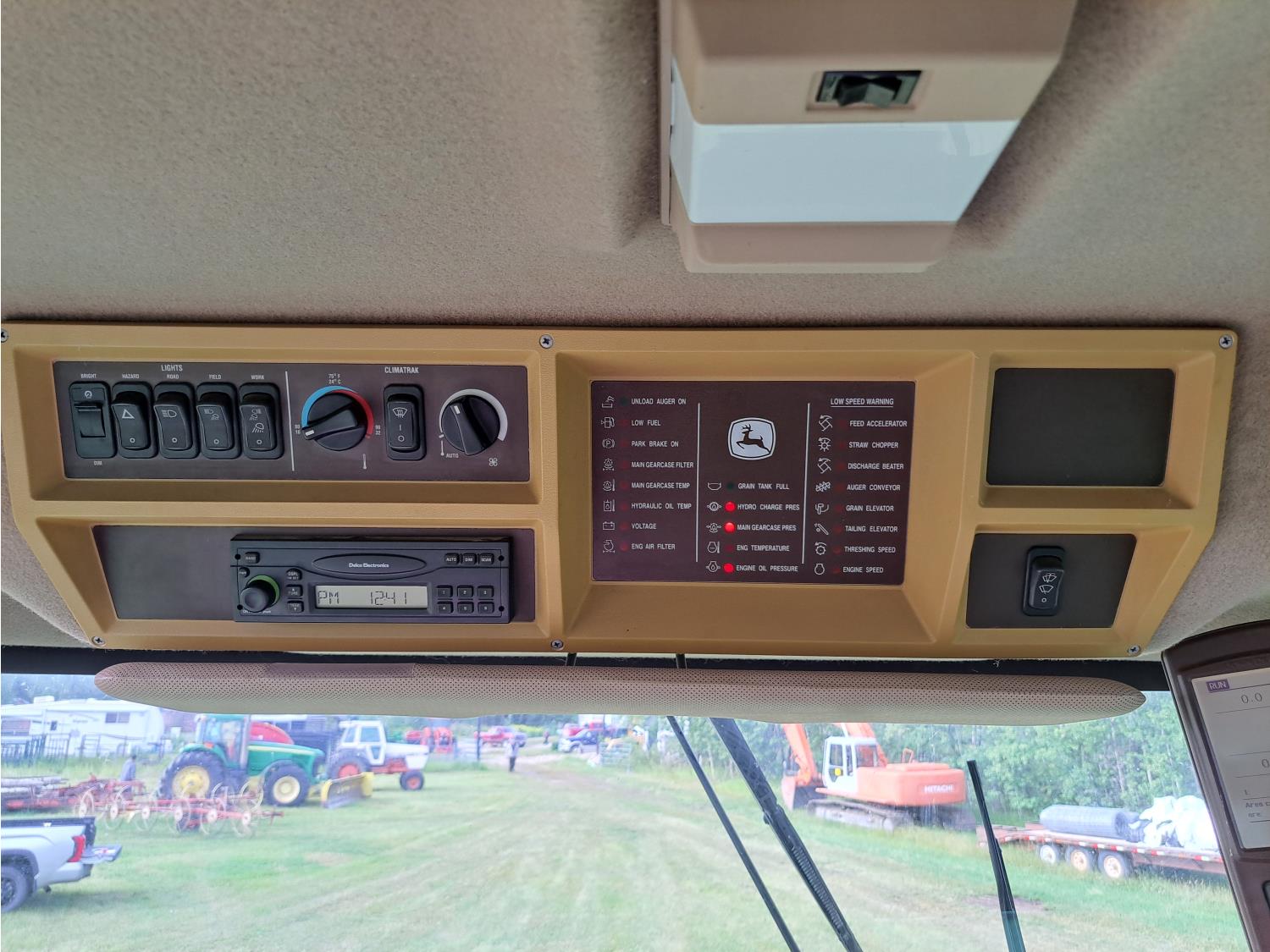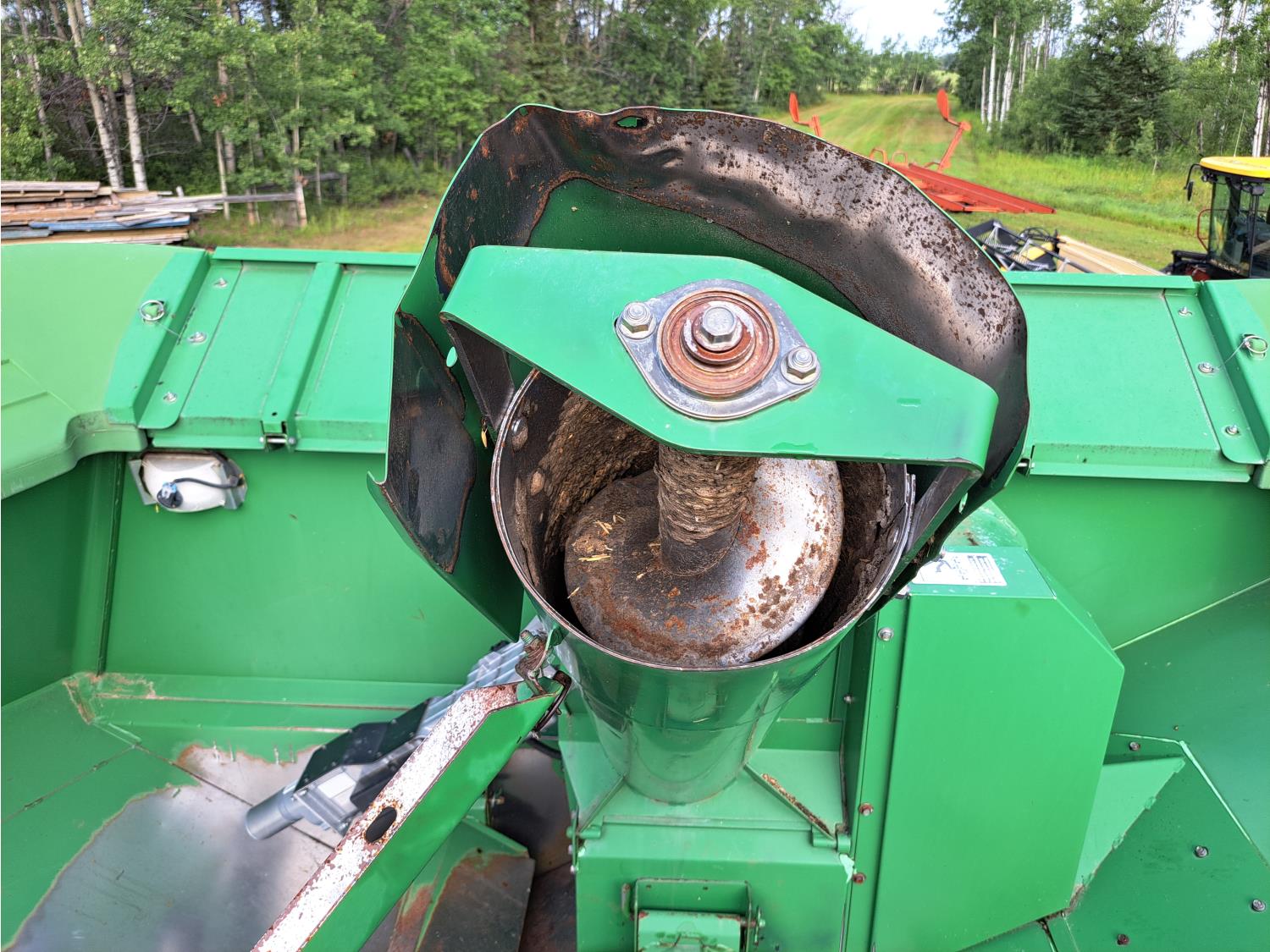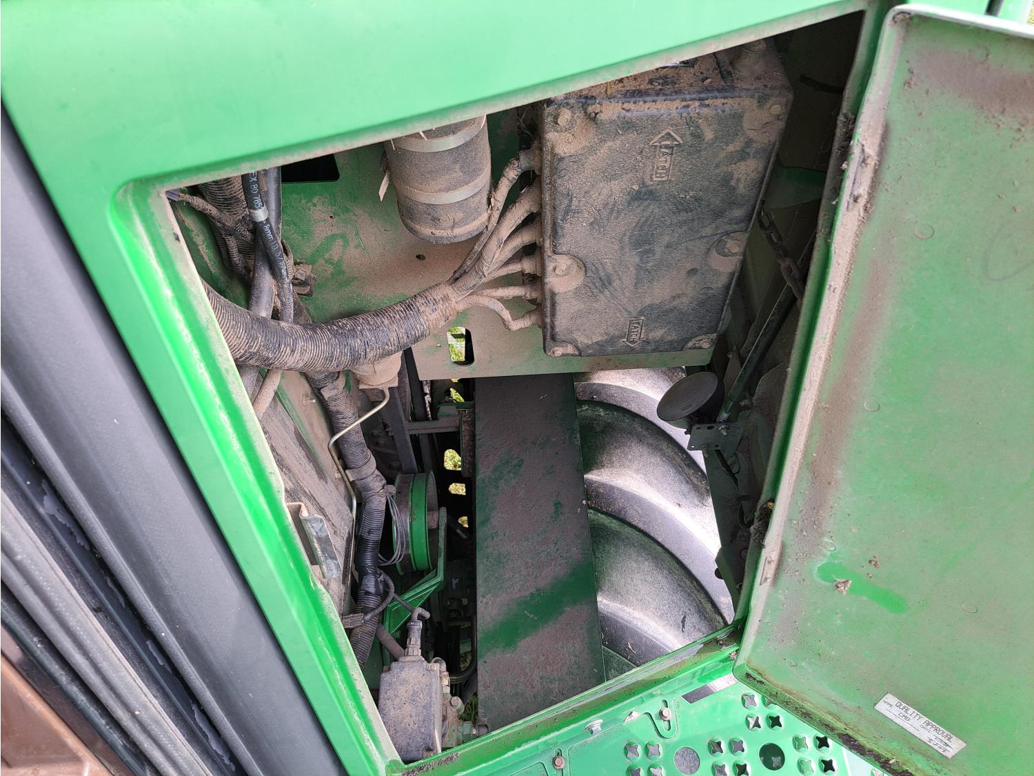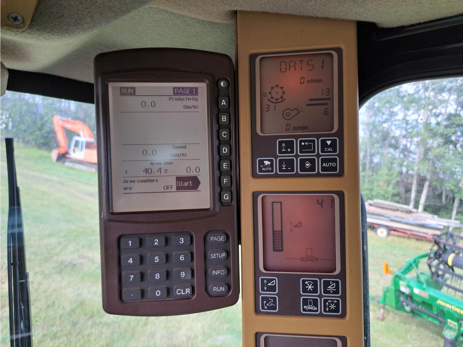 John Deere 615 15 ft pick-up header, variable speed reel, fore & aft, reverser, rock trap, yield & moisture, chaff spreader, 21 ft auger, A/C, radio, air ride seat, buddy seat, 800/65R32 front tires, 18.4-26 rear tires
