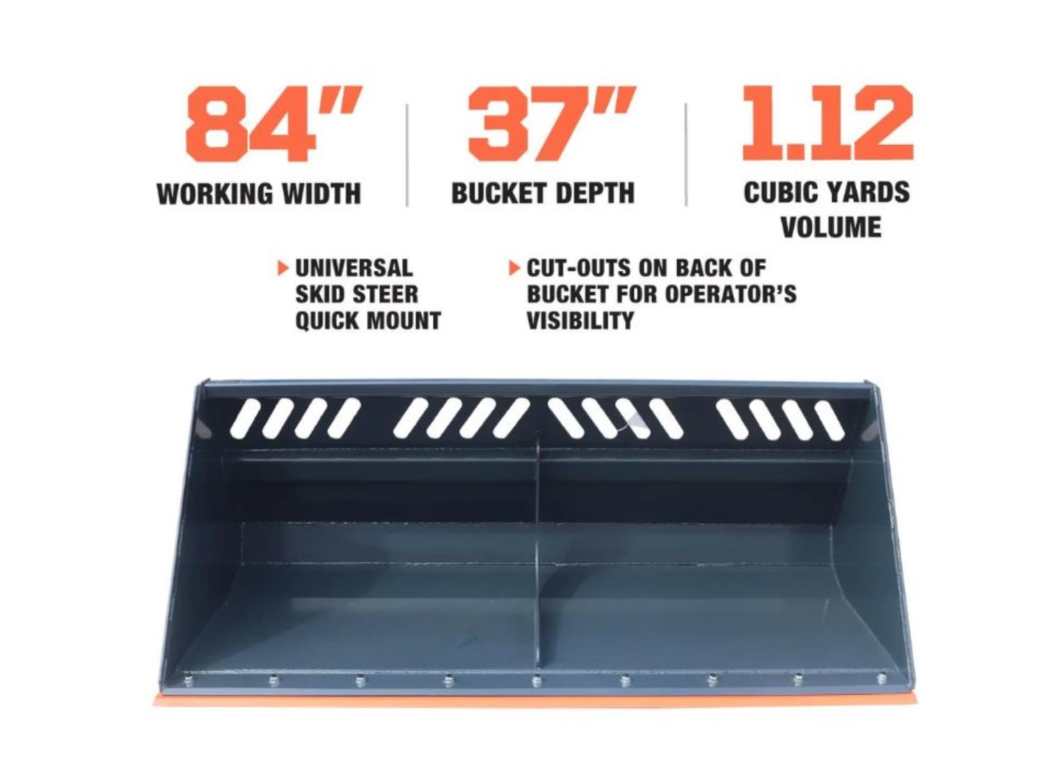 444 TMG Industrial TMG-SN84 Heavy-Duty 84 Inch Skid Steer Snow/Mulch Bucket (Unused)