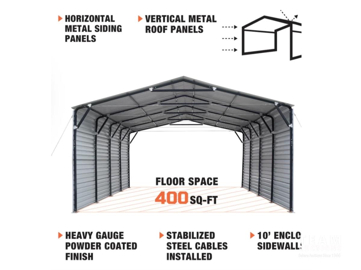 56 TMG Industrial MSC2020F 20 Ft X 20 Ft Metal Carport Shed (Unused)