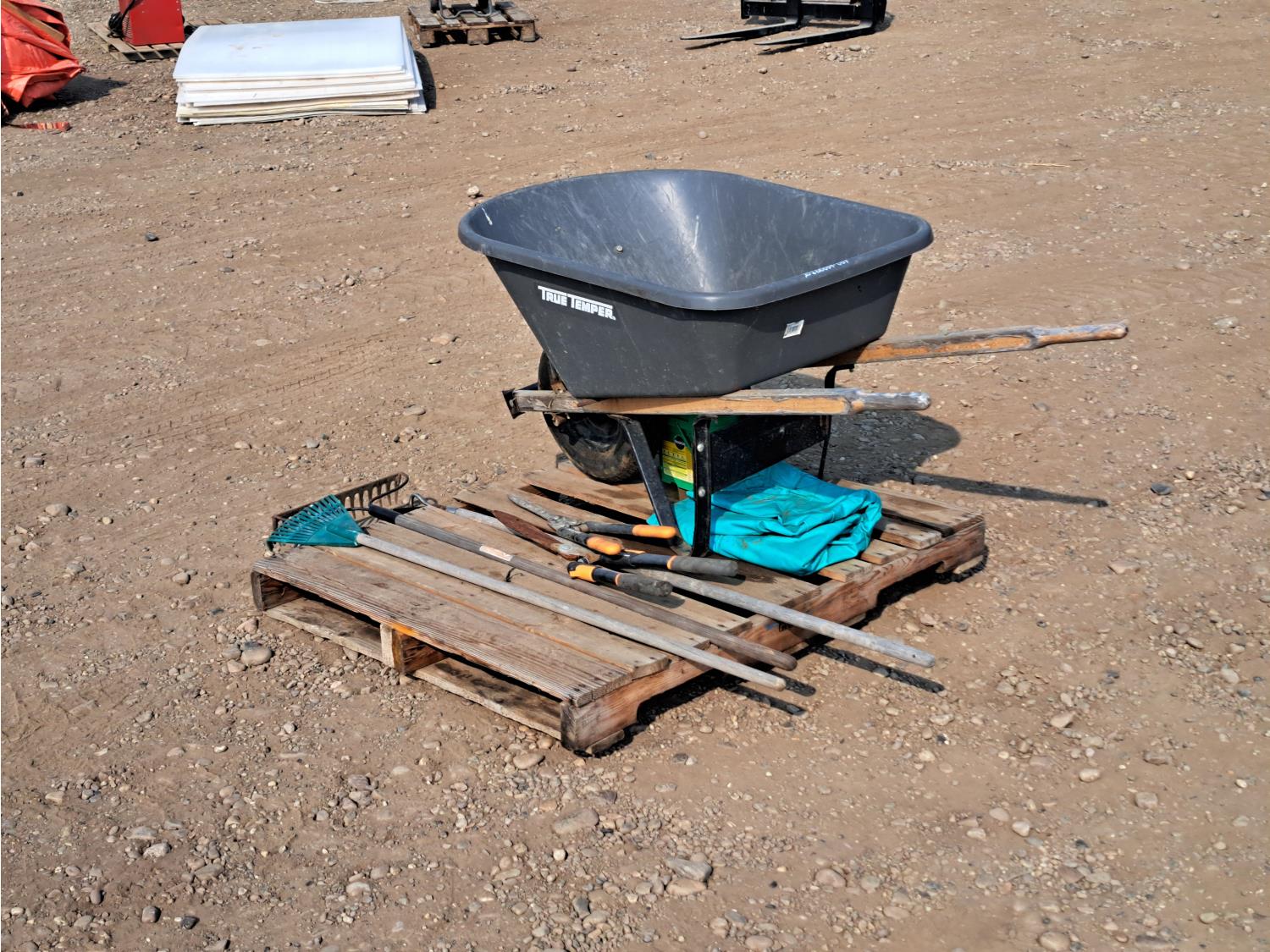 276 Wheel Barrow with Misc Yard Tools