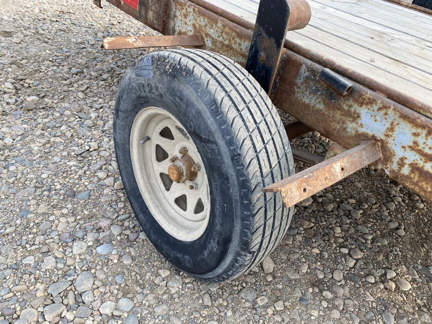 63 inch wide deck, wood deck, spring suspension, pintle hitch, 205/75R14 tires