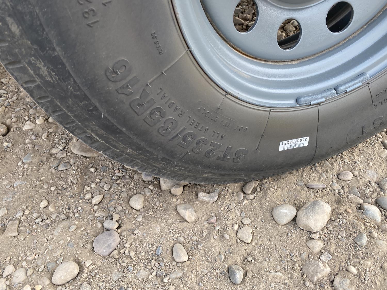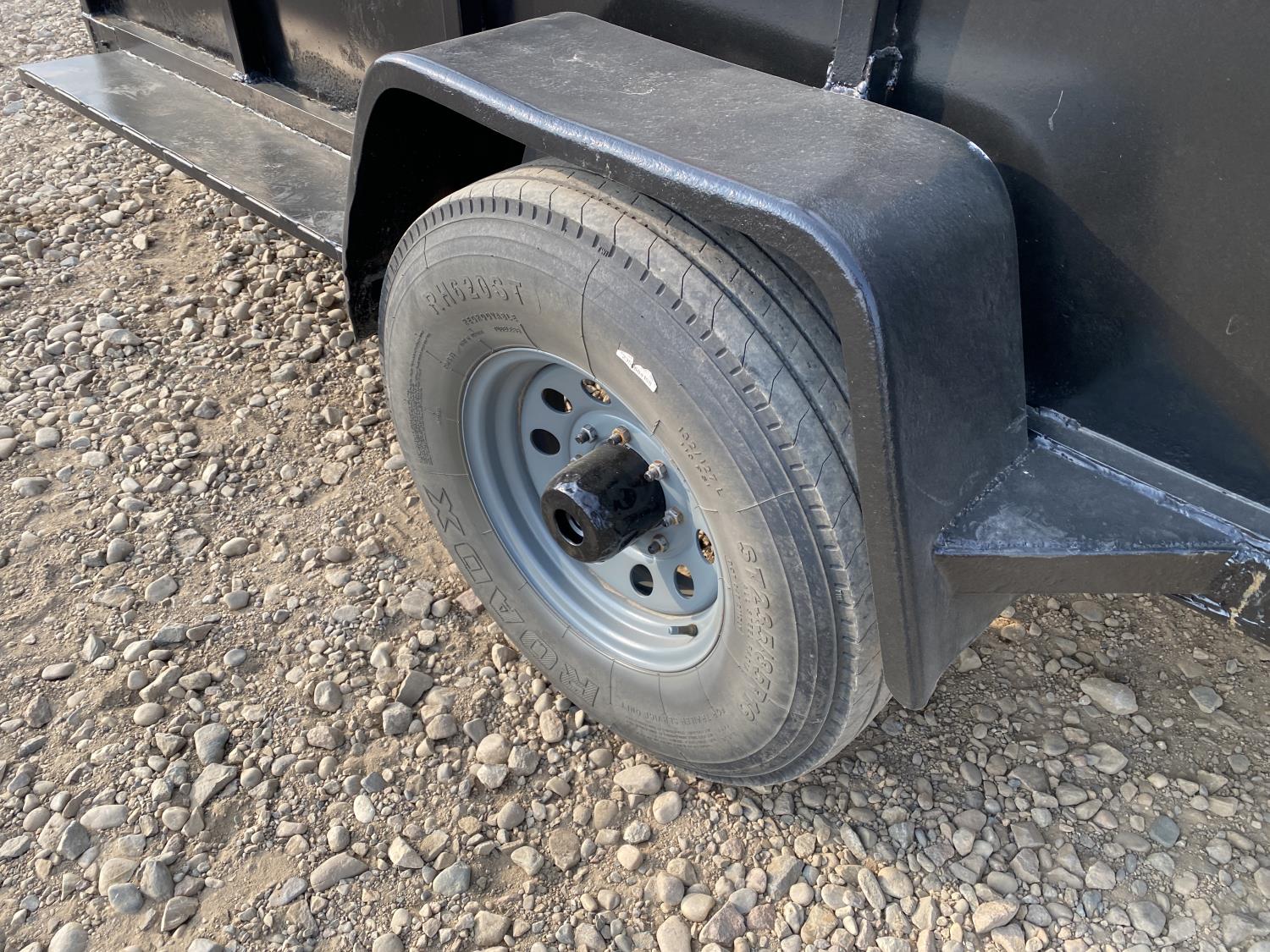 68 inch wide deck, wood deck, flip over ramps, ball hitch, tool / storage box, 235/85R16 tires