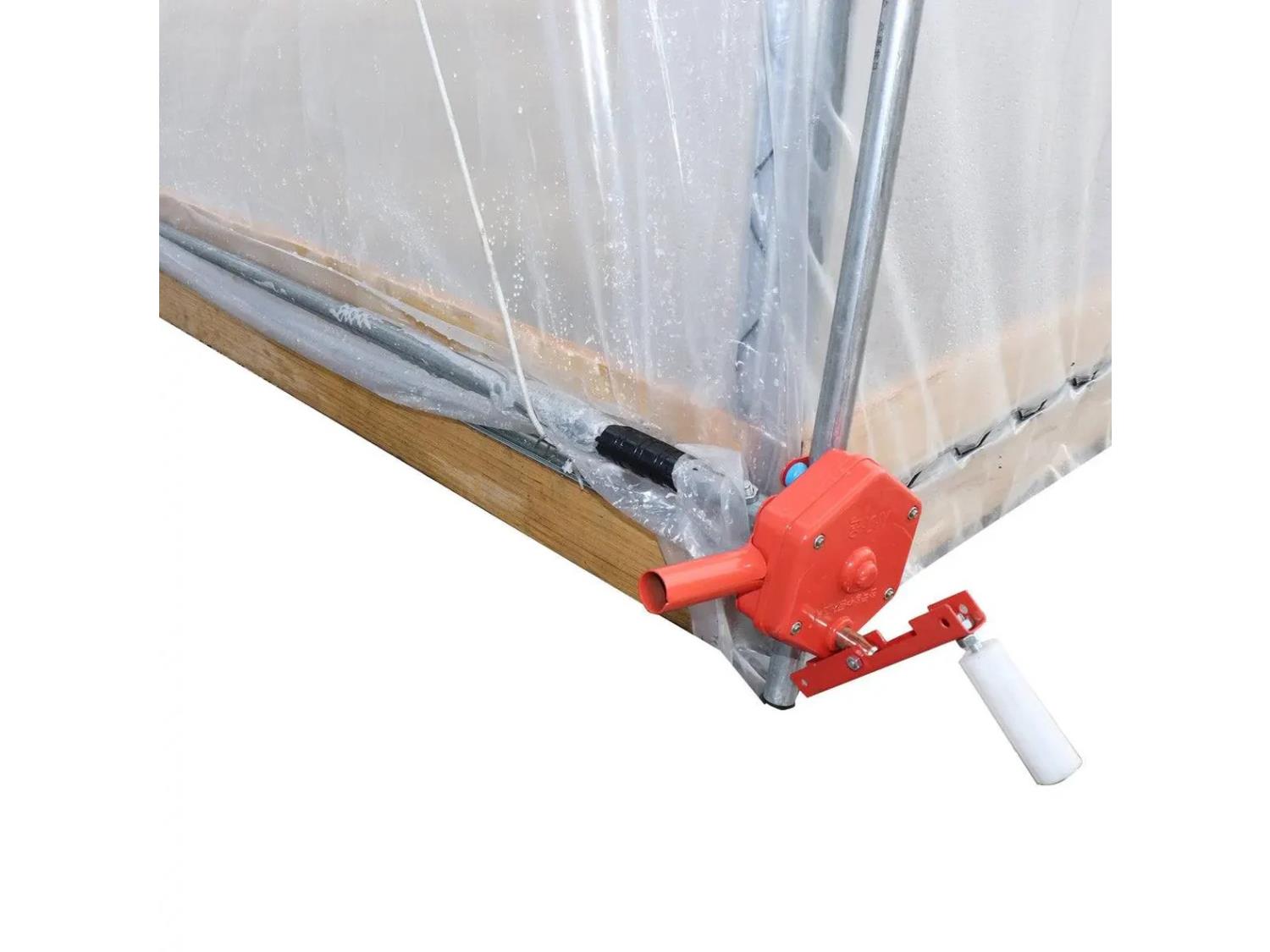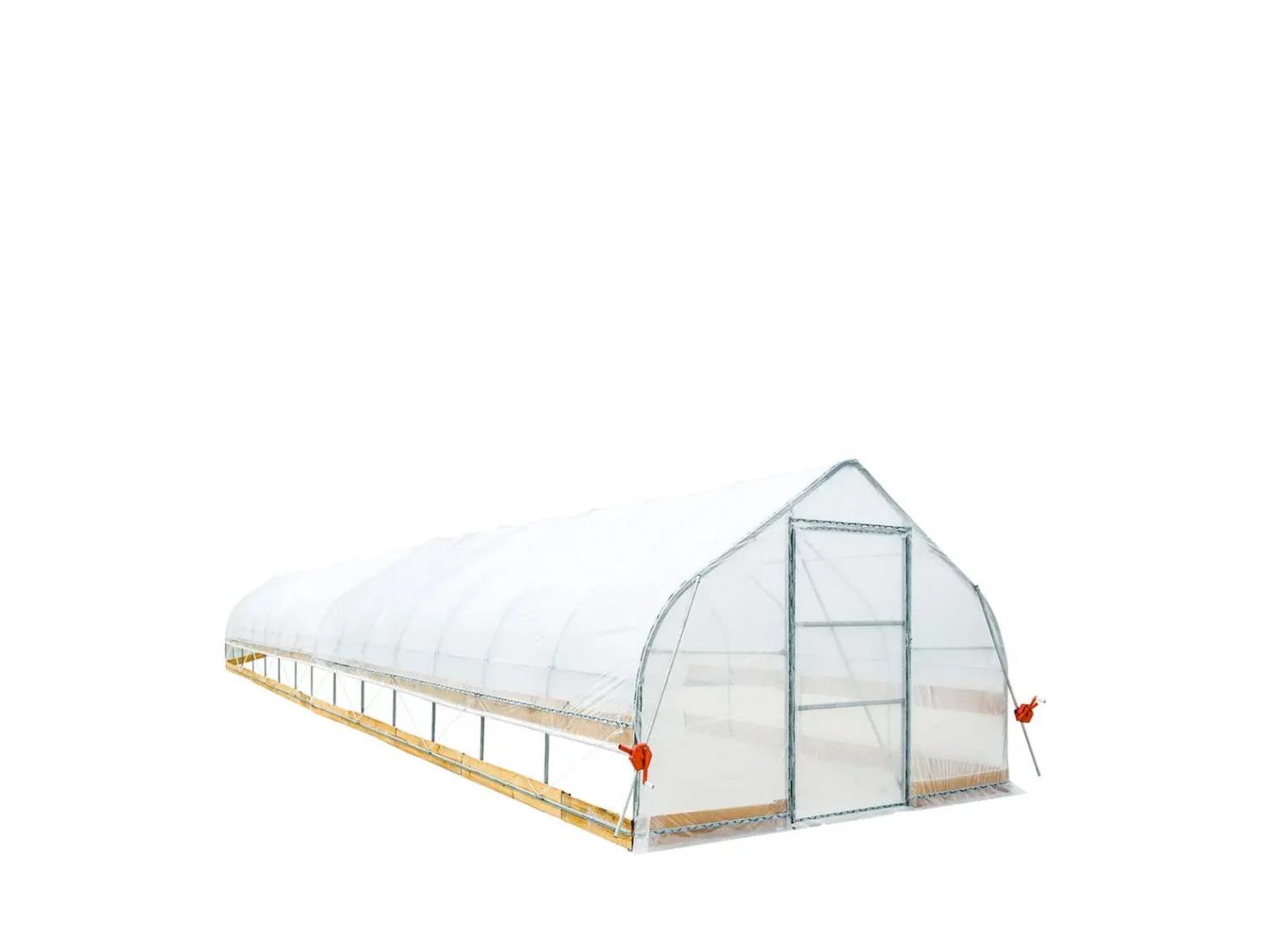 6 mil clear EVA plastic film, cold frame, hand crank roll-up sides, peak ceiling roof