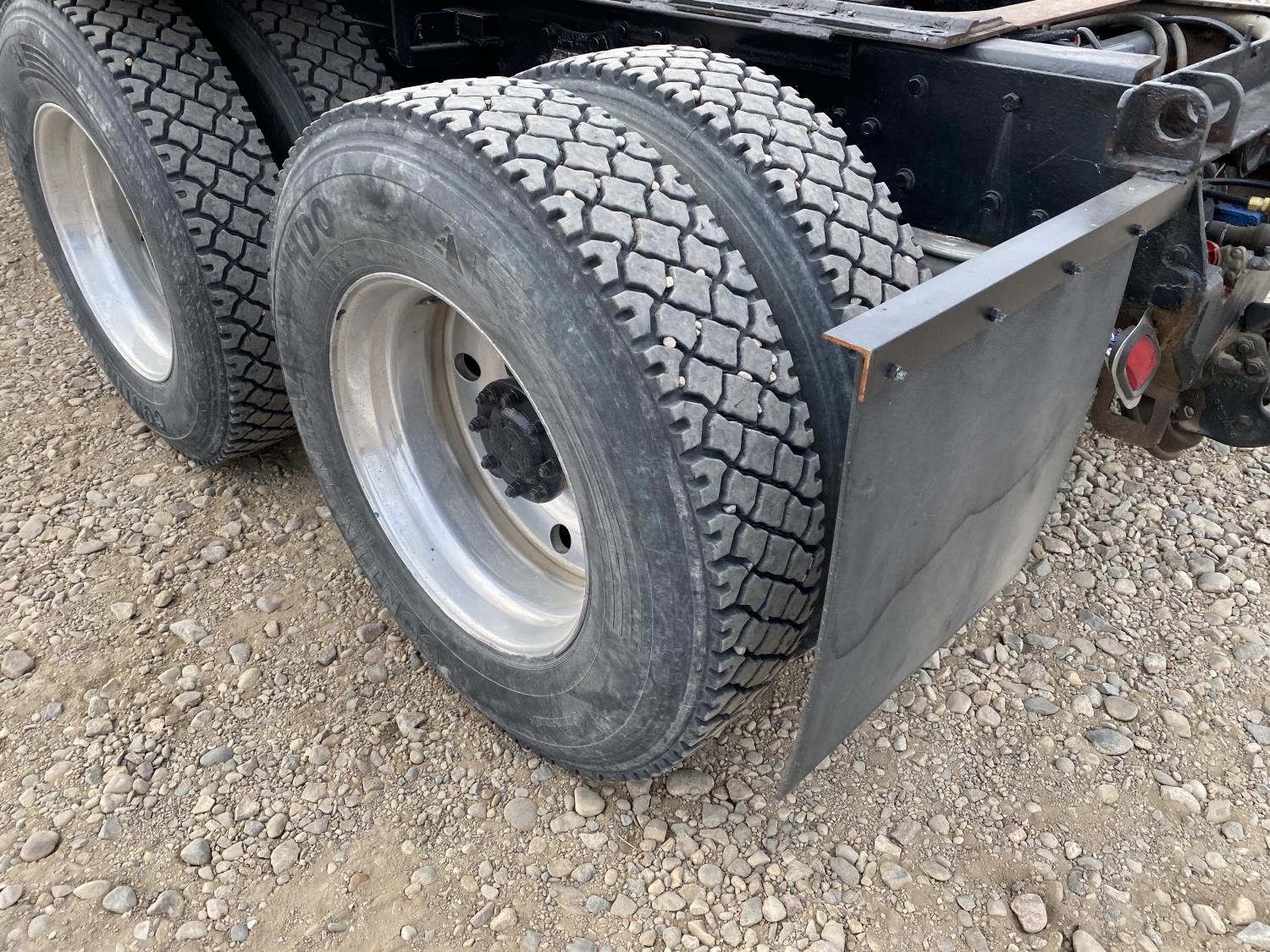 Caterpillar 3406B 14.6 L 6 cylinder 425 HP engine, engine brake, Eaton Fuller 18 speed manual transmission, A/C, cruise control, PTO pump, Peterbilt air ride suspension, 14,600 lb front axle, 46,000 lb rear axles, diff lock, 238 inch WB, all aluminum wheels, 11R24.5 tires