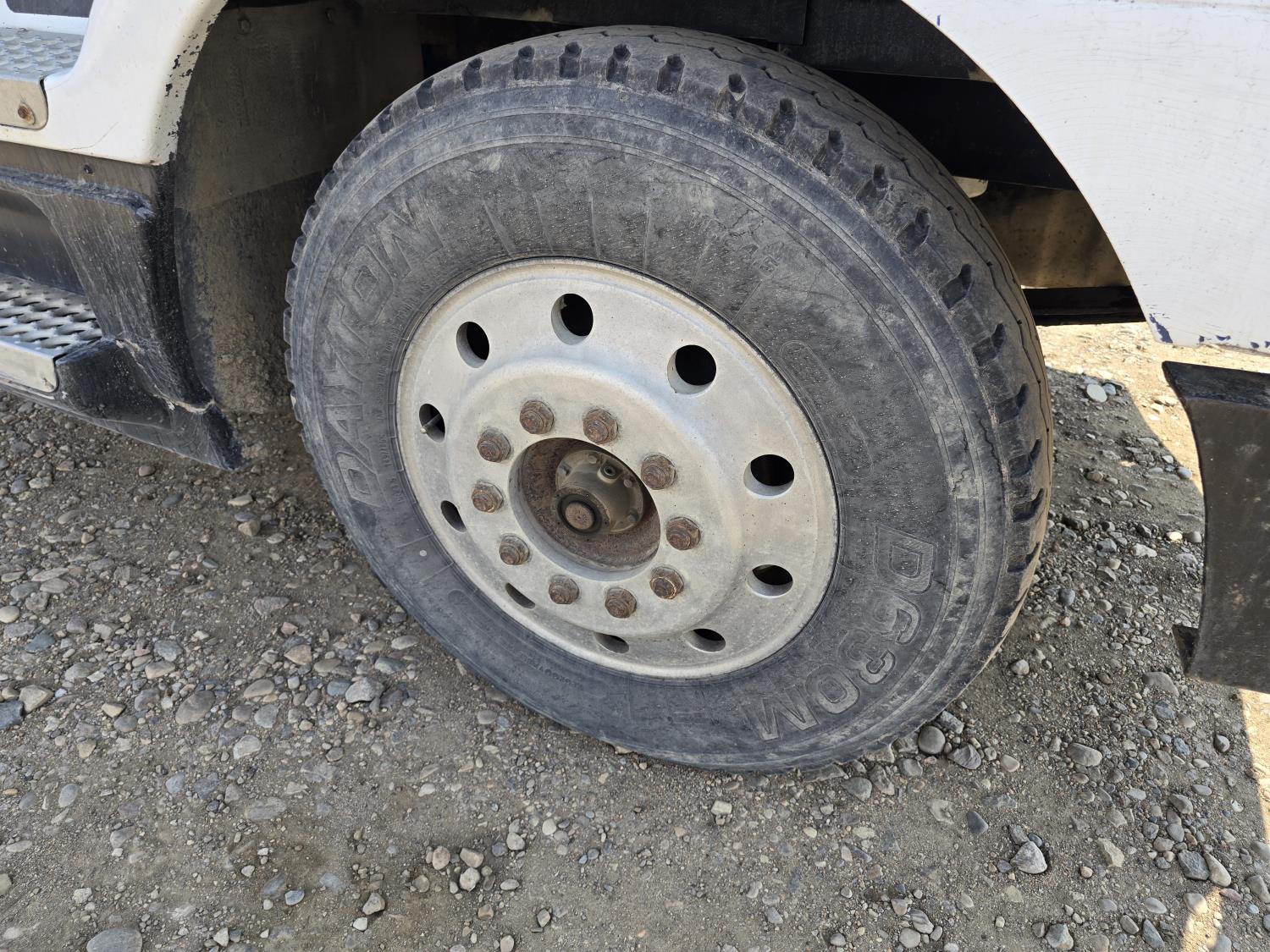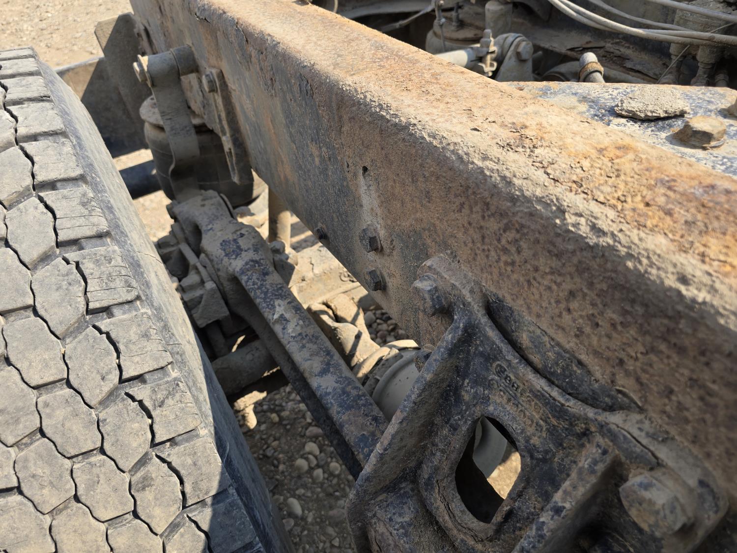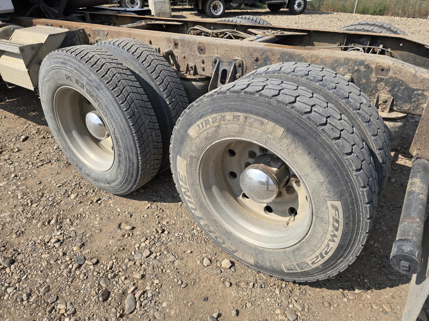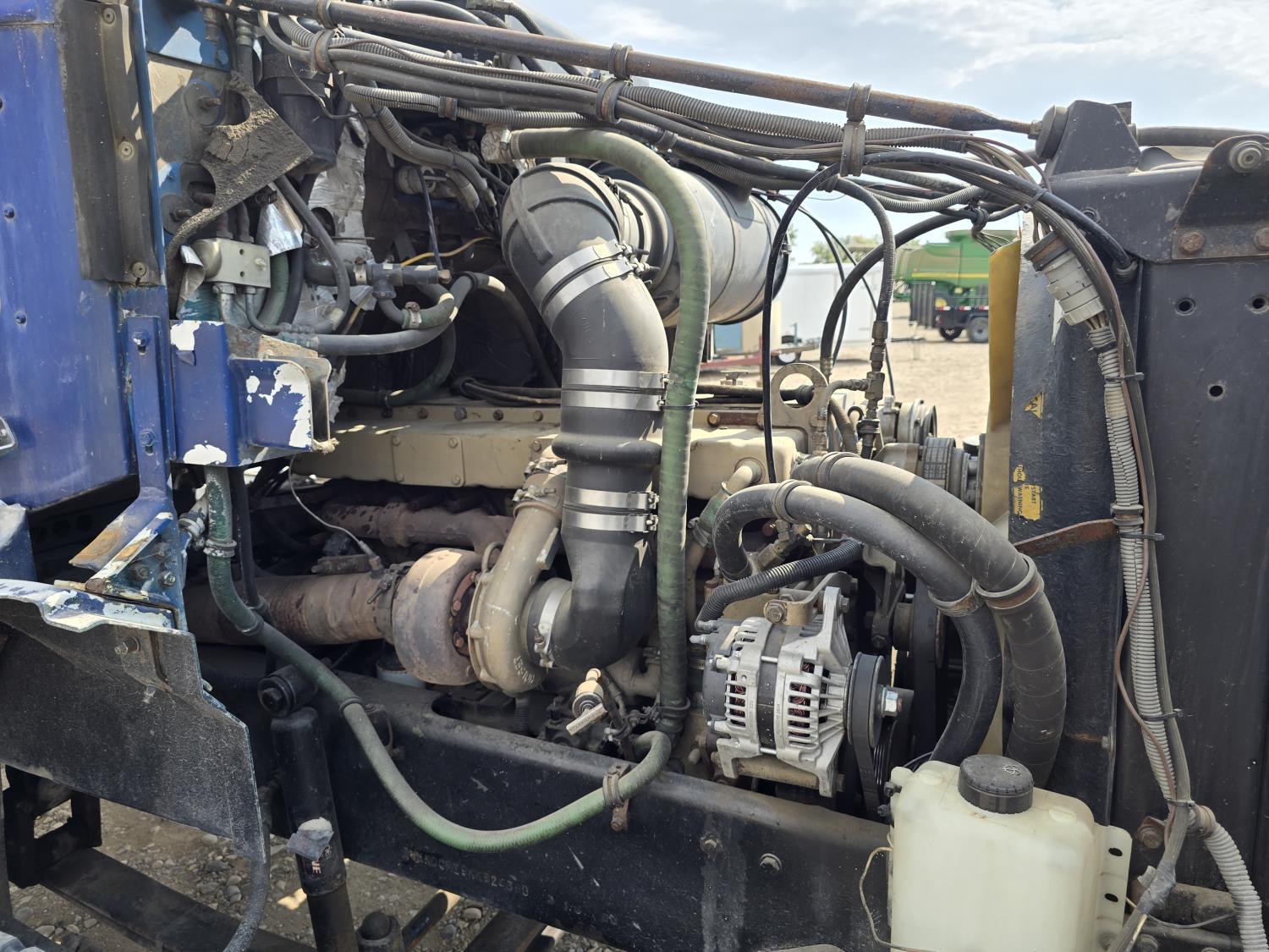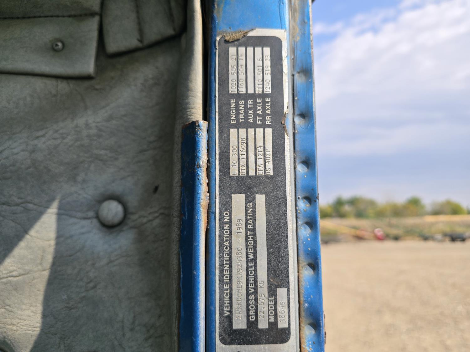 Cummins LTA10 10.0 L 6 cylinder engine, engine block heater, Eaton Fuller RTX 11609B 9 speed manual transmission, A/C, air ride seats, stereo, Neway air ride suspension, 12,000 lb front axle, 38,000 lb rear axles, diff lock, 170 inch WB, all aluminum wheels, 11R24.5 tires
